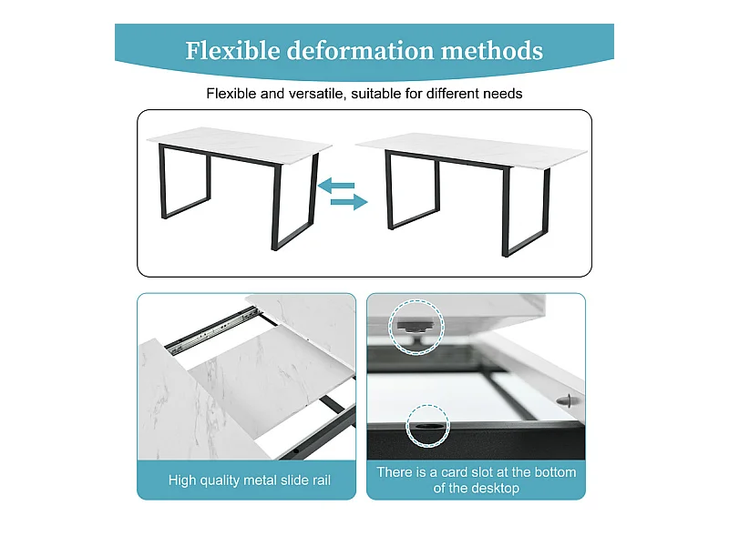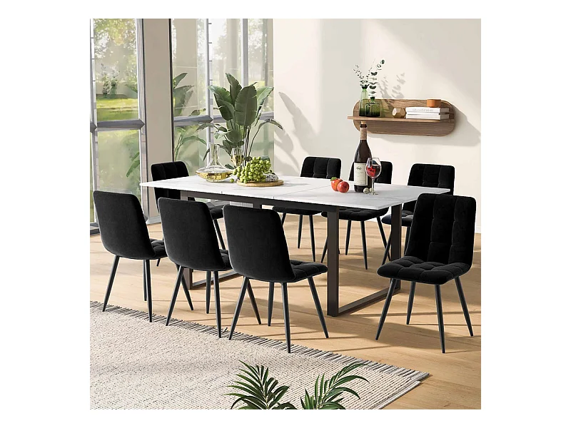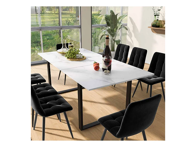 Table à manger extensible + 8 chaises - 4 à 8 personnes - Blanc - 140/180x80x75cm