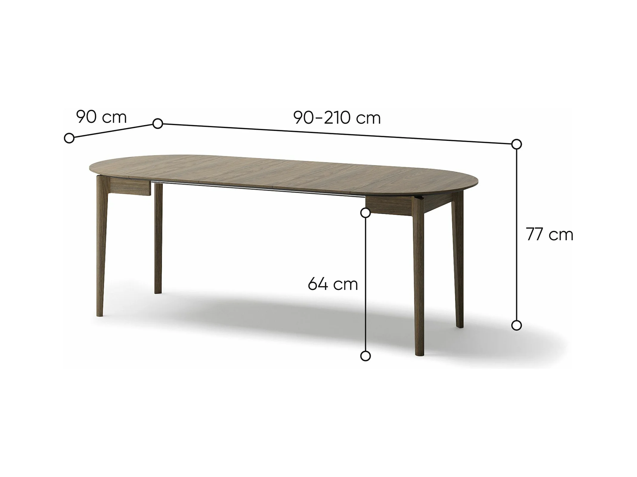 Table à manger extensible – Chêne foncé – 90x210x90 cm – PLOT