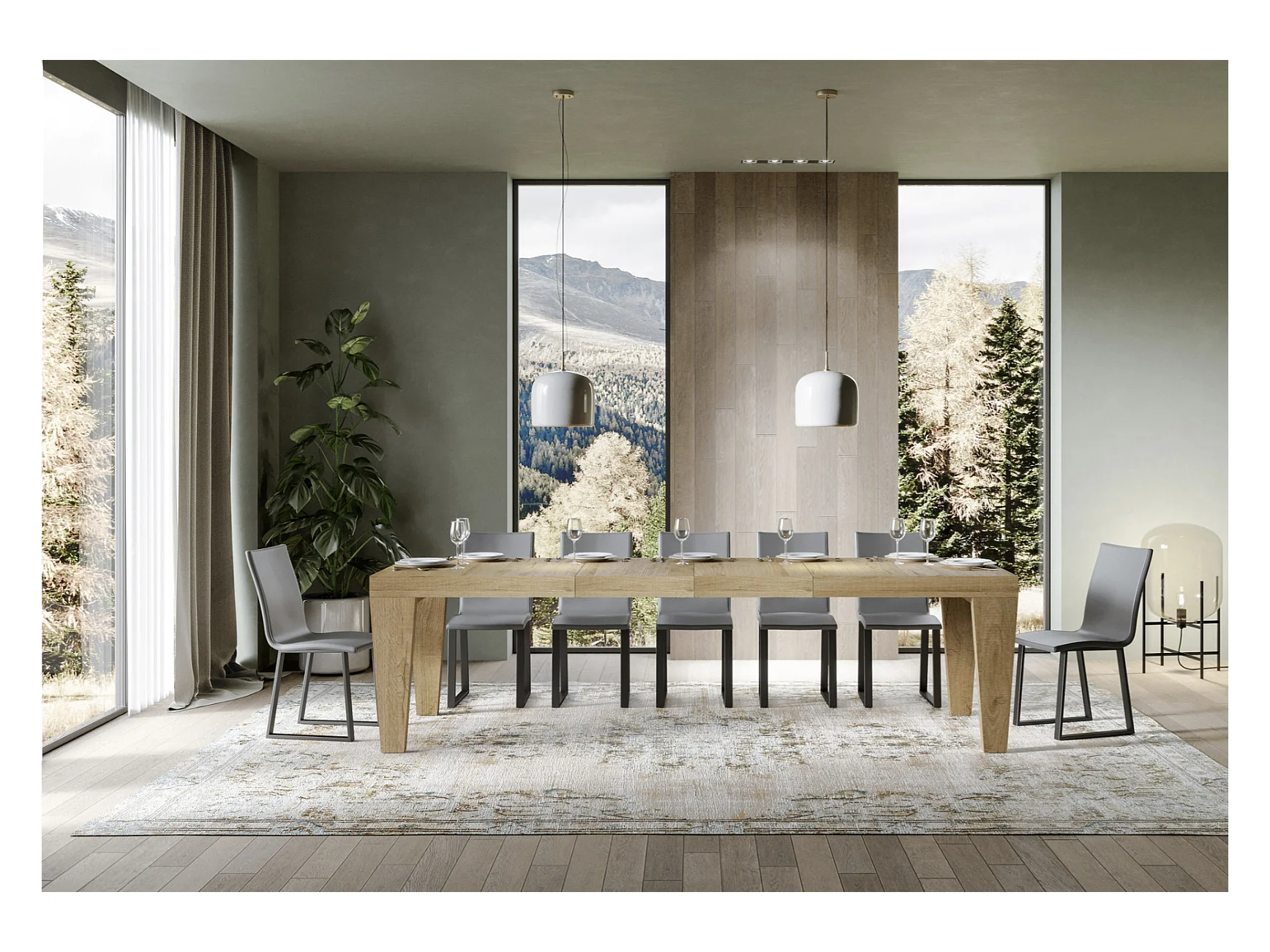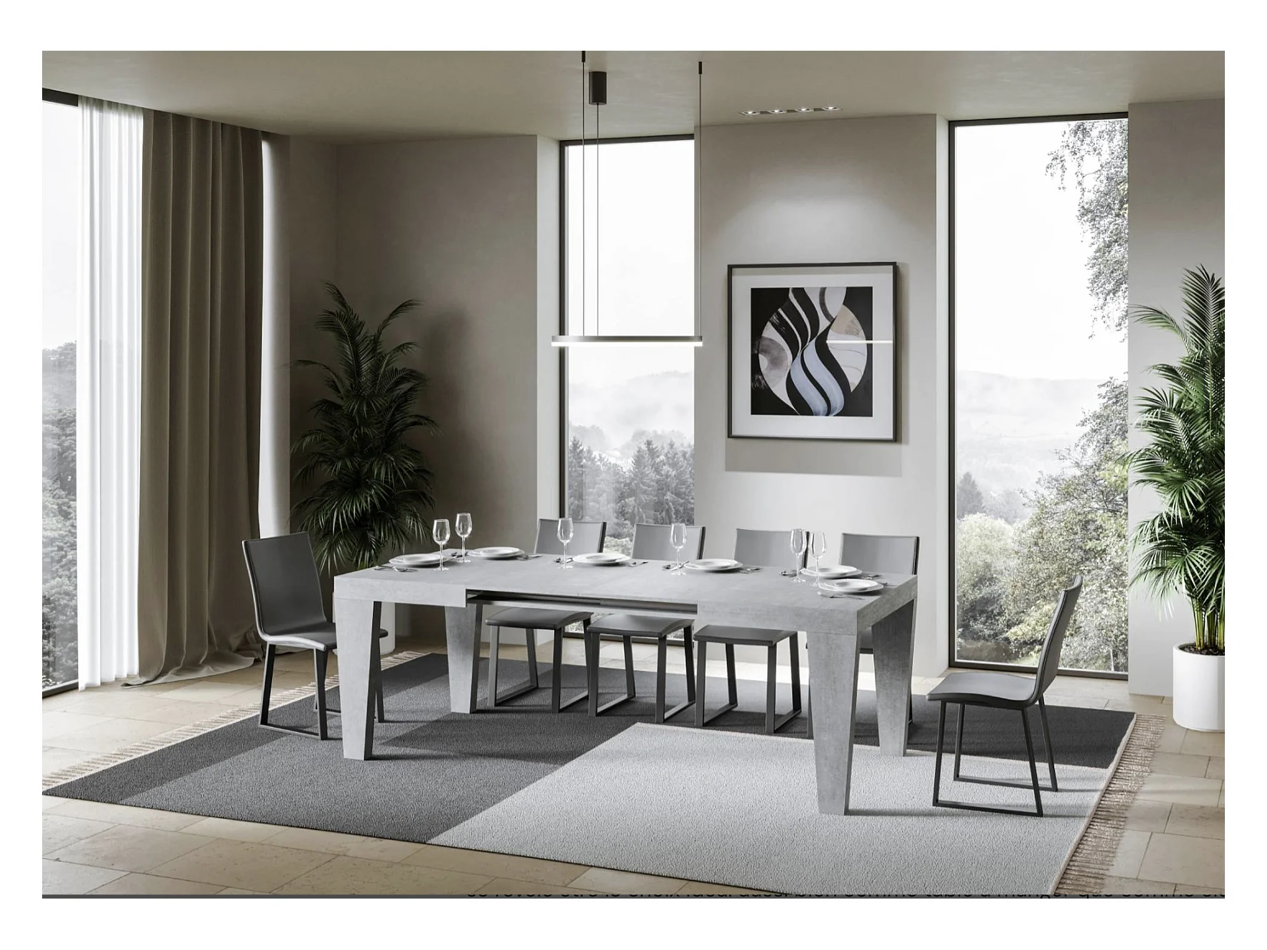 Table à manger extensible bois pieds en V Kristo-Couleur Gris ciment-Sur roulettes-2 rallonges fines-130 à 234cm