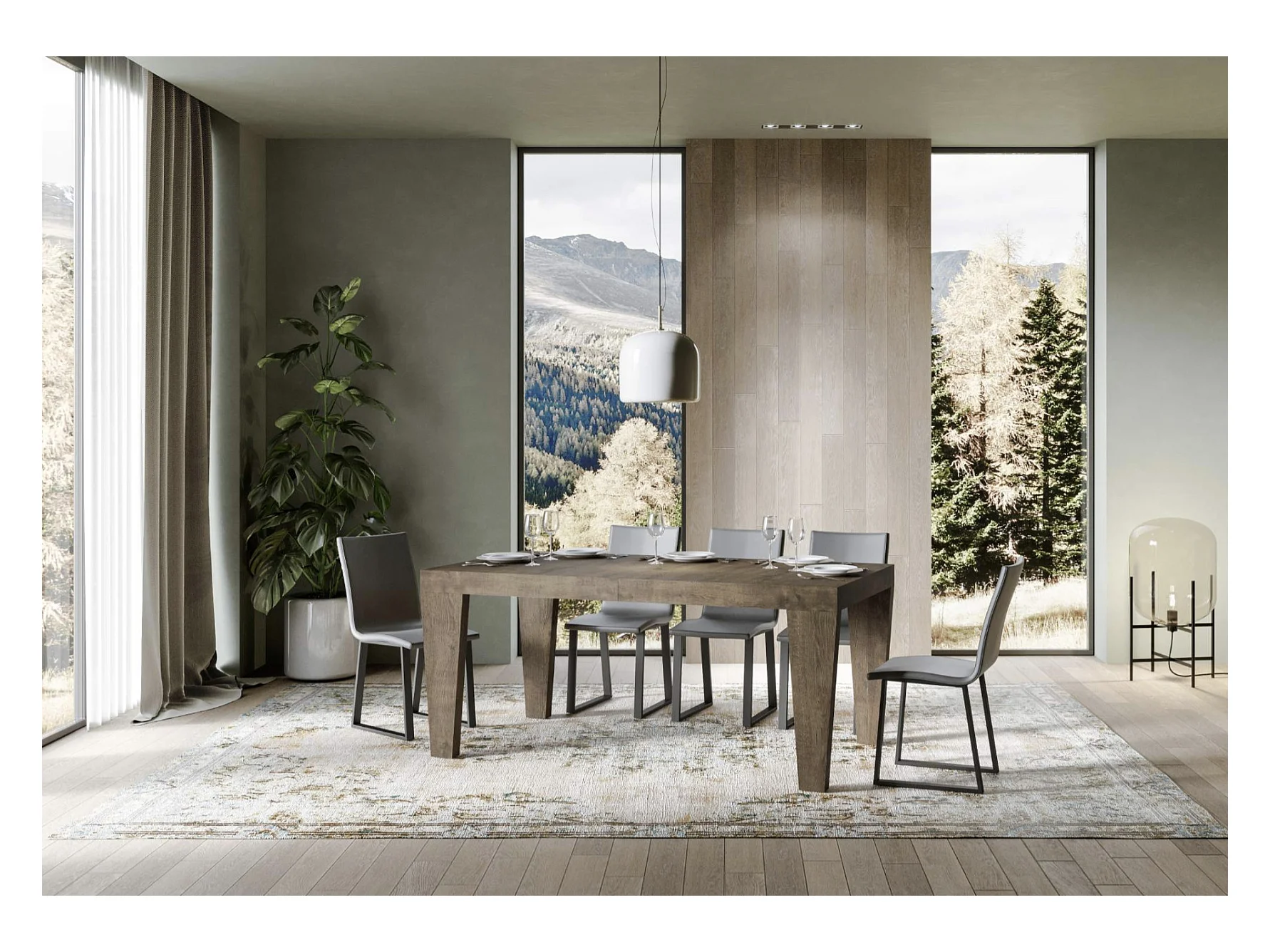 Table à manger extensible bois pieds en V Kristo-Couleur Marron-Sur roulettes-2 rallonges fines-160 à 264cm