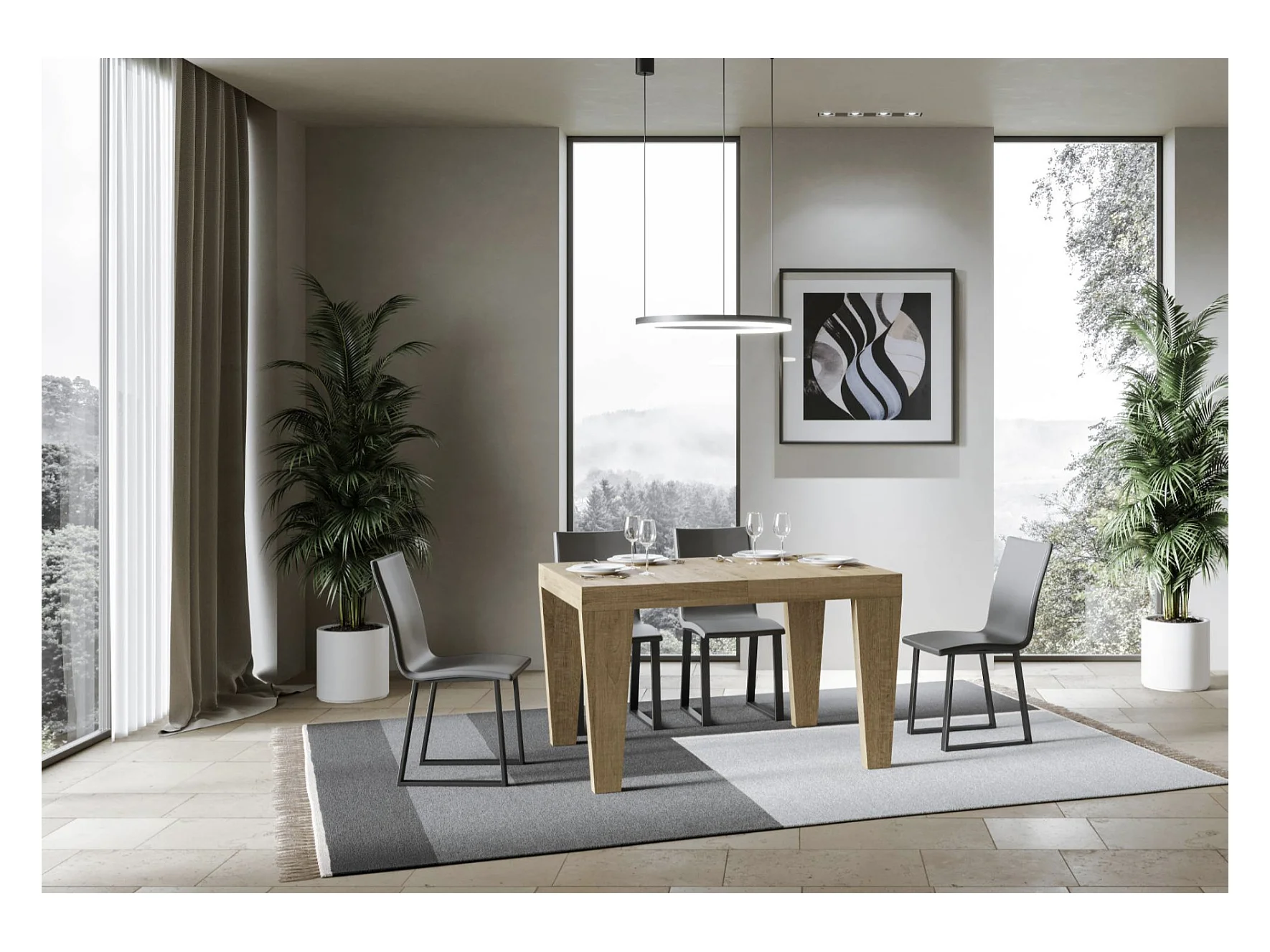 Table à manger extensible bois pieds en V Kristo-Couleur Naturel-Sur roulettes-2 rallonges fines-140 à 244cm