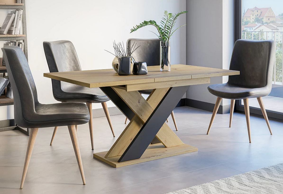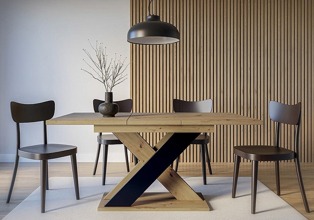 TABLE A MANGER EXTENSIBLE LAOS - BOIS SCIE et NOIR MAT 120 - 160 CM