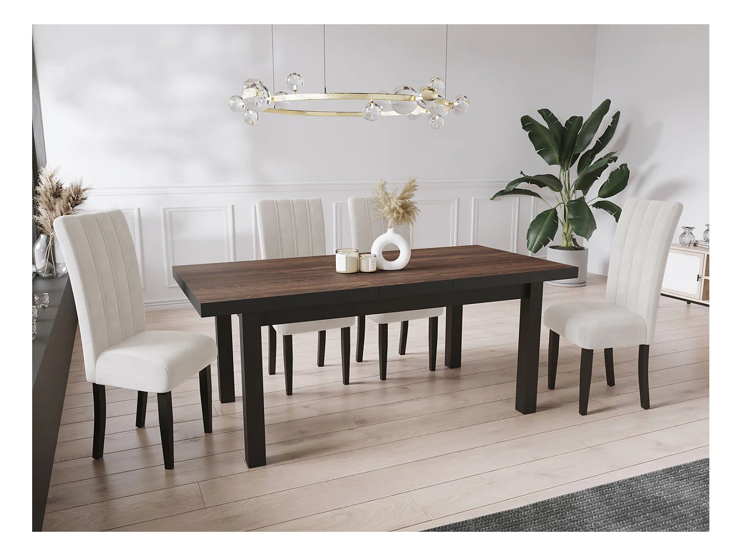 Table à Manger Extensible Rectangulaire Moderne - Gain de Place - Pieds en Bois Noir - Fabriqué en UE - 200 x 100 cm - Arvadonna Chestnut