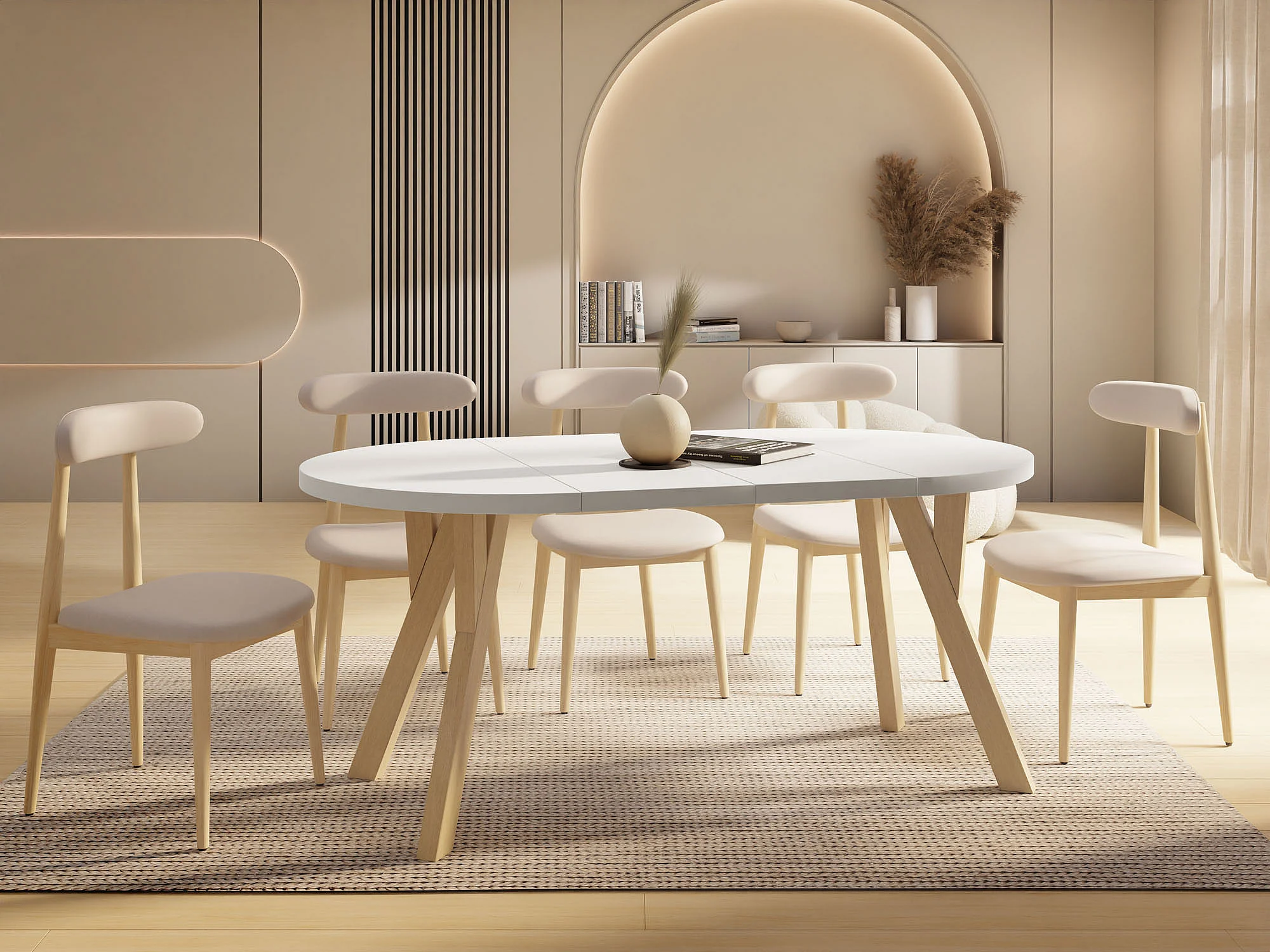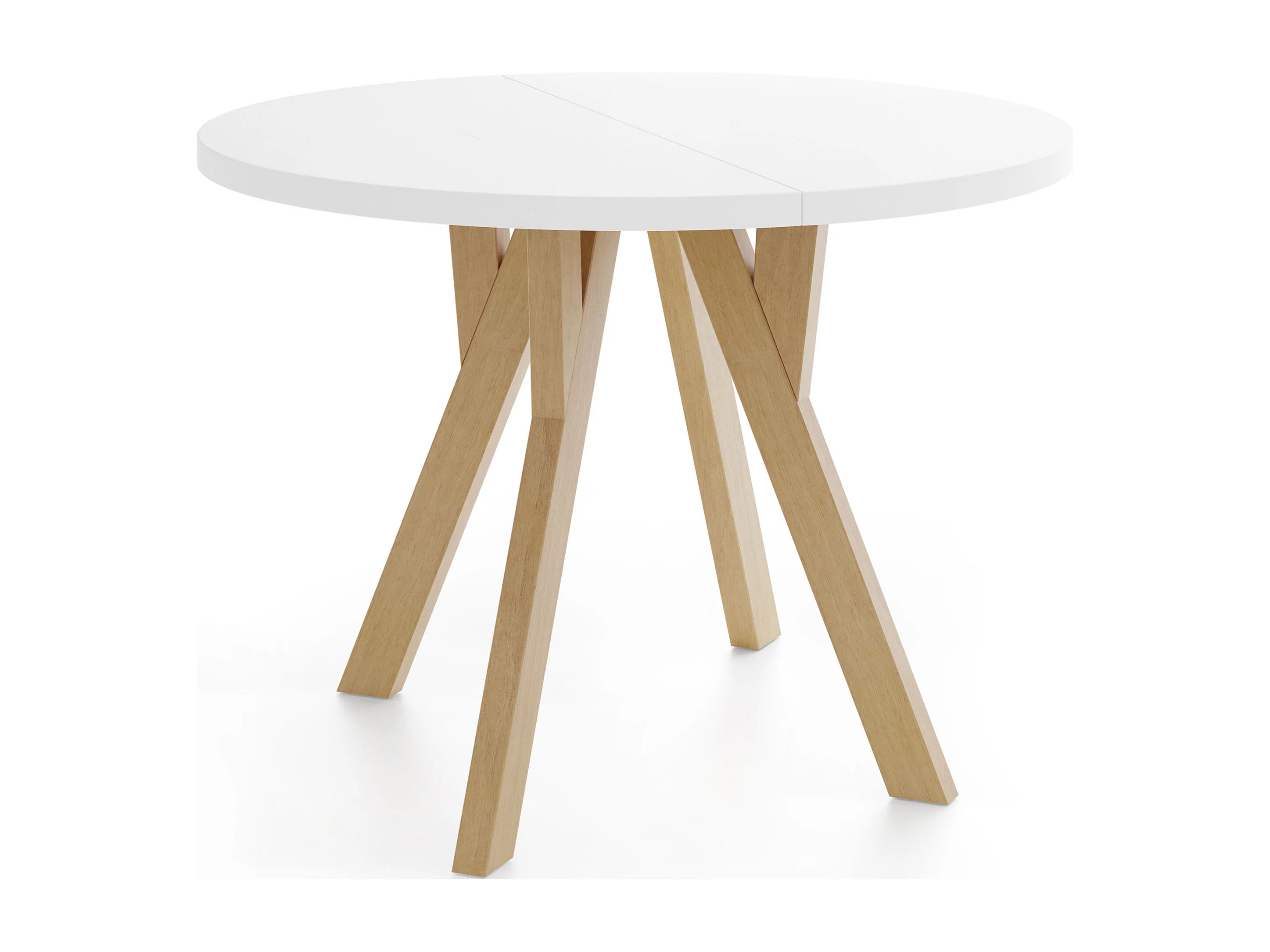 Table à Manger Extensible Ronde Designer – Style Loft, Peu Encombrant – Pieds en Bois Massif – Table Gain de Place 100 à 200 cm – Blanc