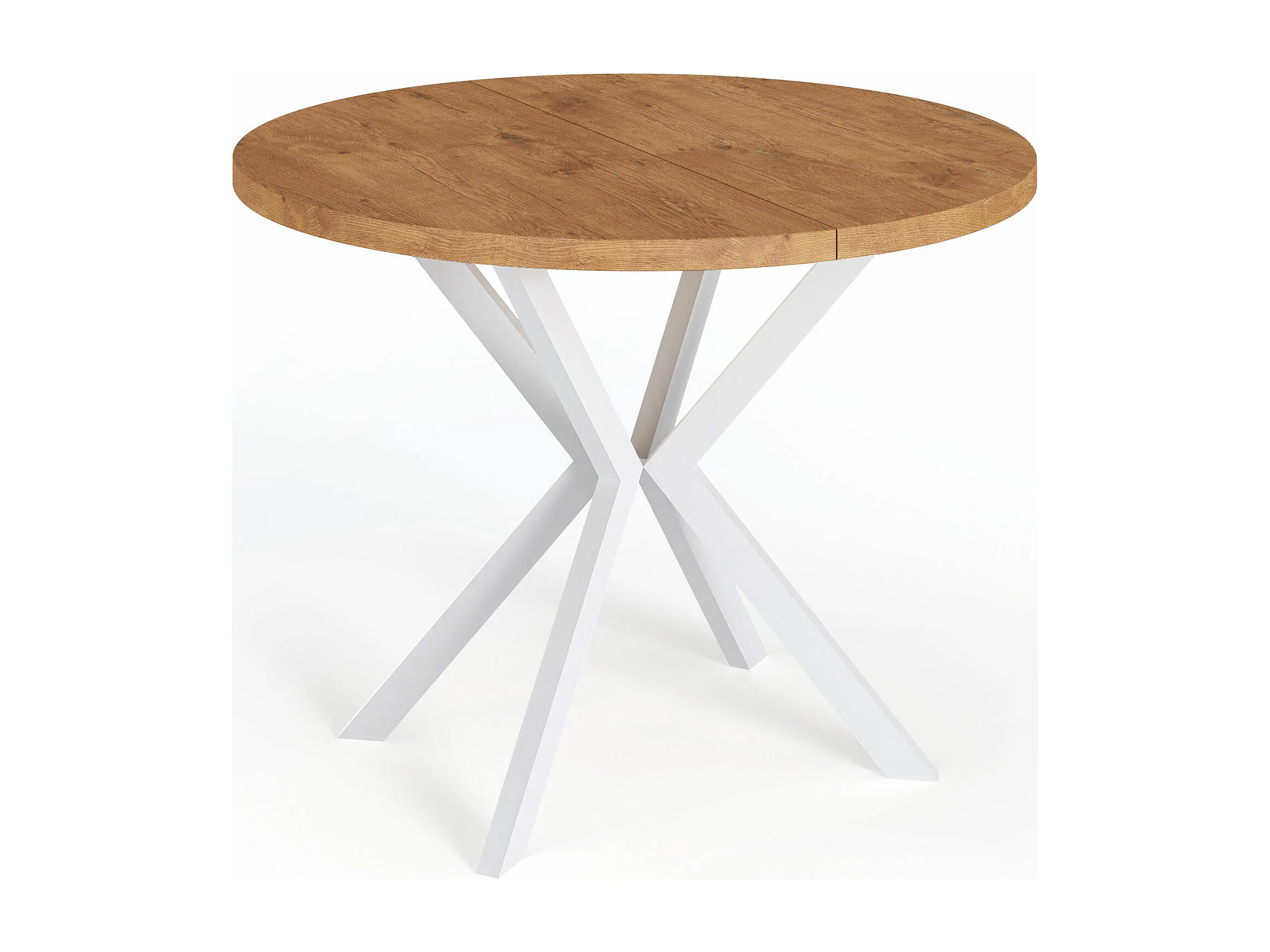 Table à Manger Extensible Ronde - Table Style Loft Avec Blanc Pieds en Métal - 100 à 180 cm - Table Ronde Style Industriel Pour le Salon - Chêne Lancelot - 100 cm