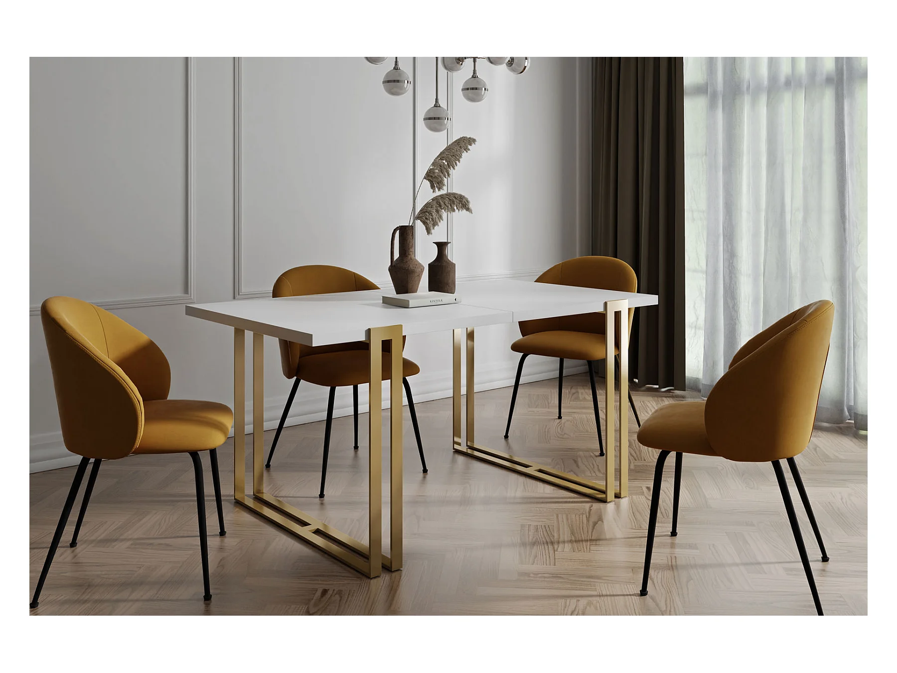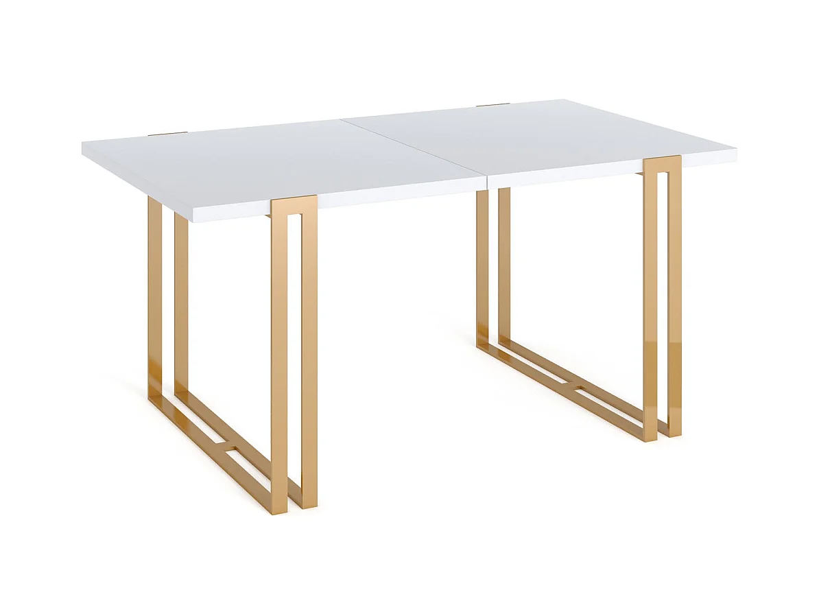 Table à Manger Extensible Rectangulaire Style Loft - Grande Table Industrielle Avec Pieds Métalliques Dorés, 140 à 240 cm - Table de Conférence - Blanc