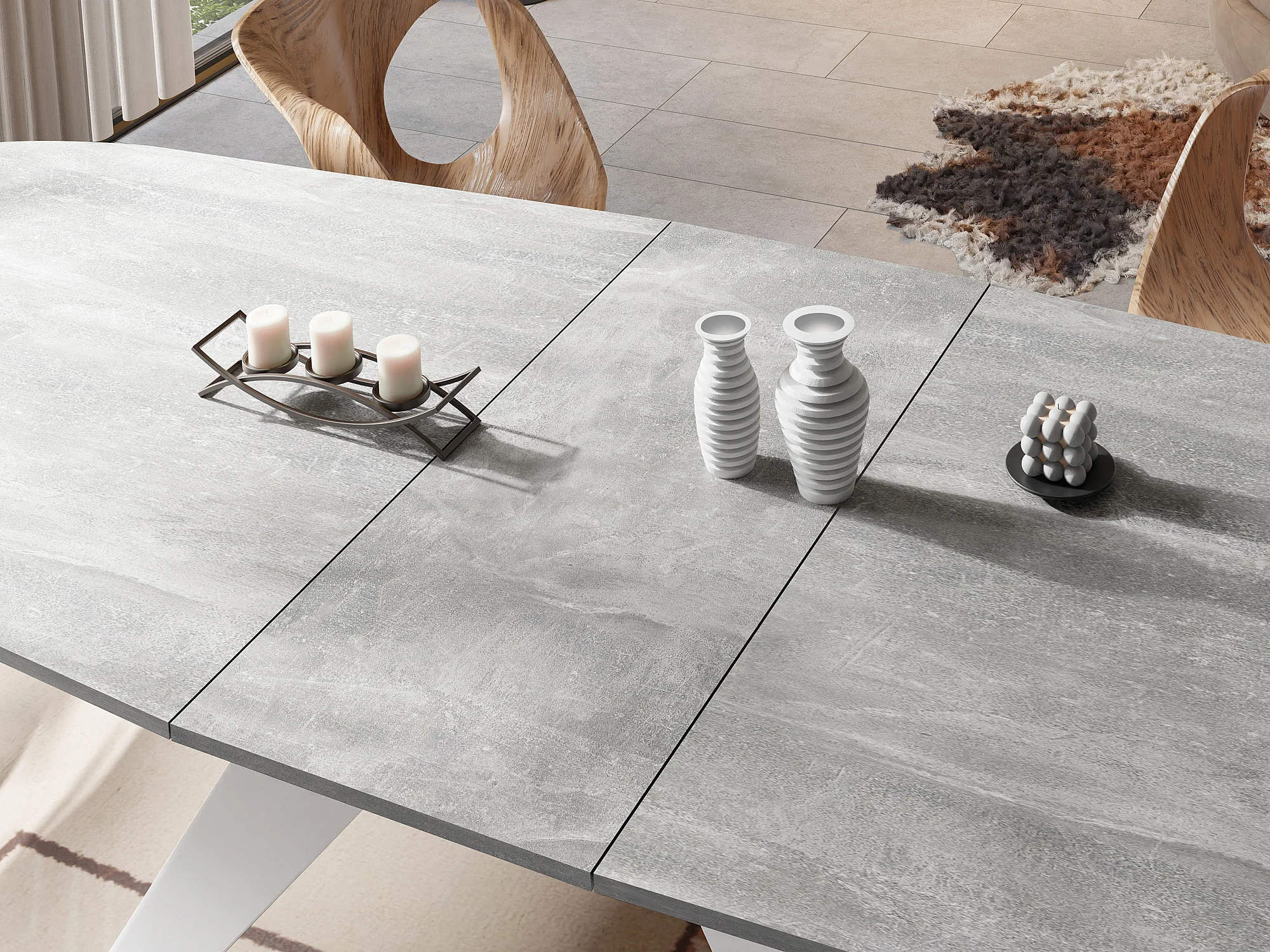 Table à Manger Extensible Style Loft - Table Industrielle avec Pieds Métalliques Blancs - Design Moderne pour Salon - 160 cm extensible à 200 cm - Béton Gris
