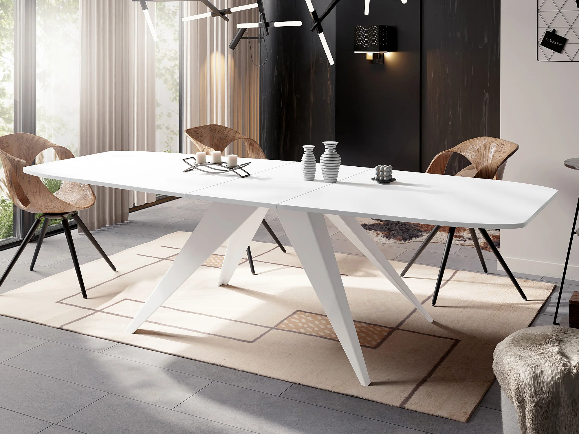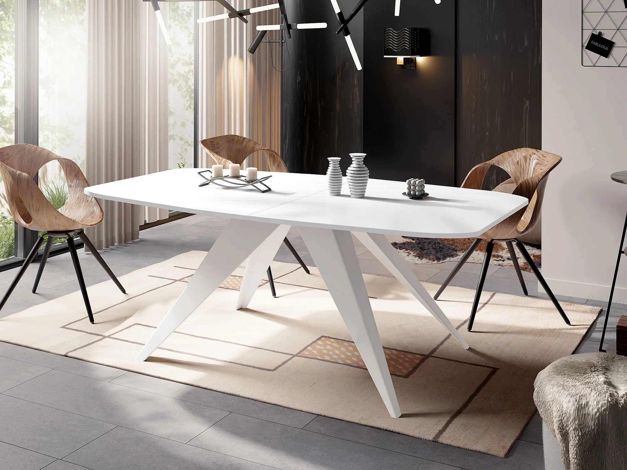 Table à Manger Extensible Style Loft - Table Industrielle avec Pieds Métalliques Blancs - Design Moderne pour Salon - 160 cm extensible à 200 cm - Blanc
