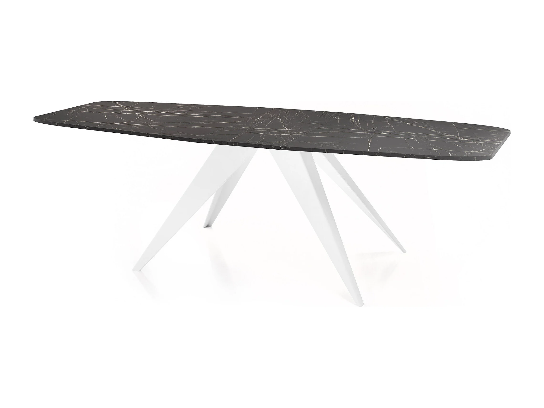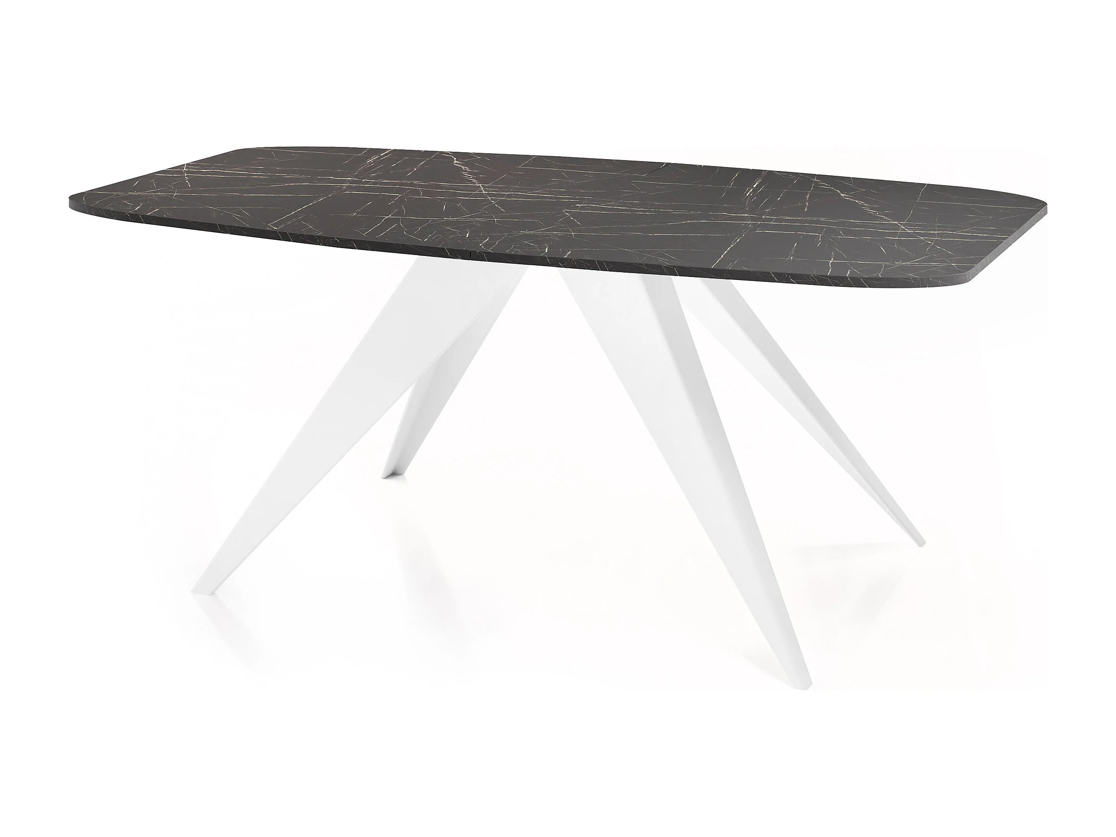 Table à Manger Extensible Style Loft - Table Industrielle avec Pieds Métalliques Blancs - Design Moderne pour Salon - 160 cm extensible à 200 cm - Marbre Noir