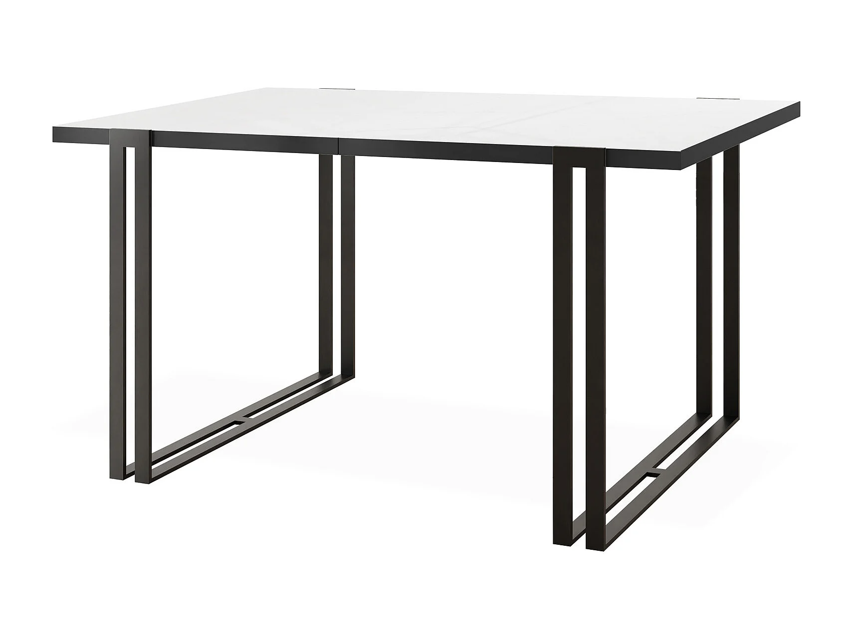 Table à Manger Extensible - Table Style Loft en Métal - Table Style Industriel Pour le Salon - Gain de Place - 120 / 220 cm - Blanc/Noir - 120 x 80 cm