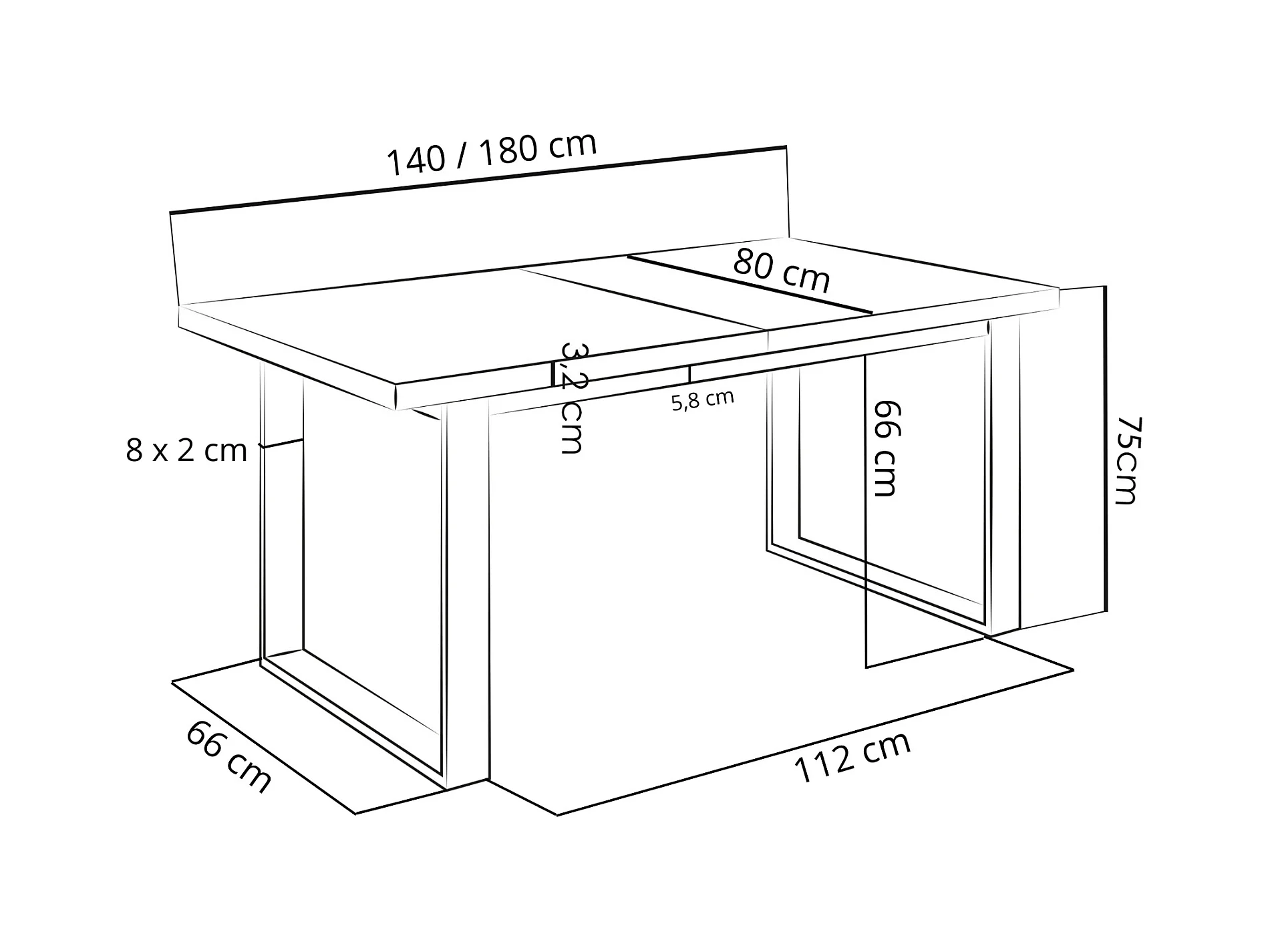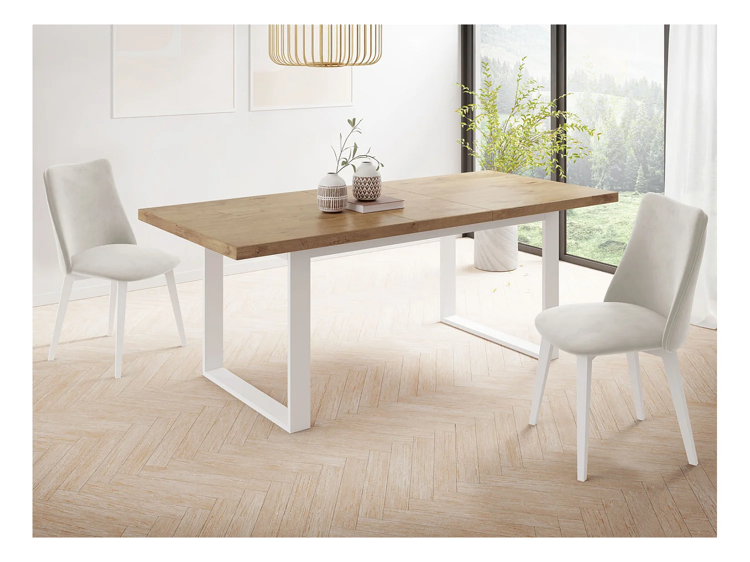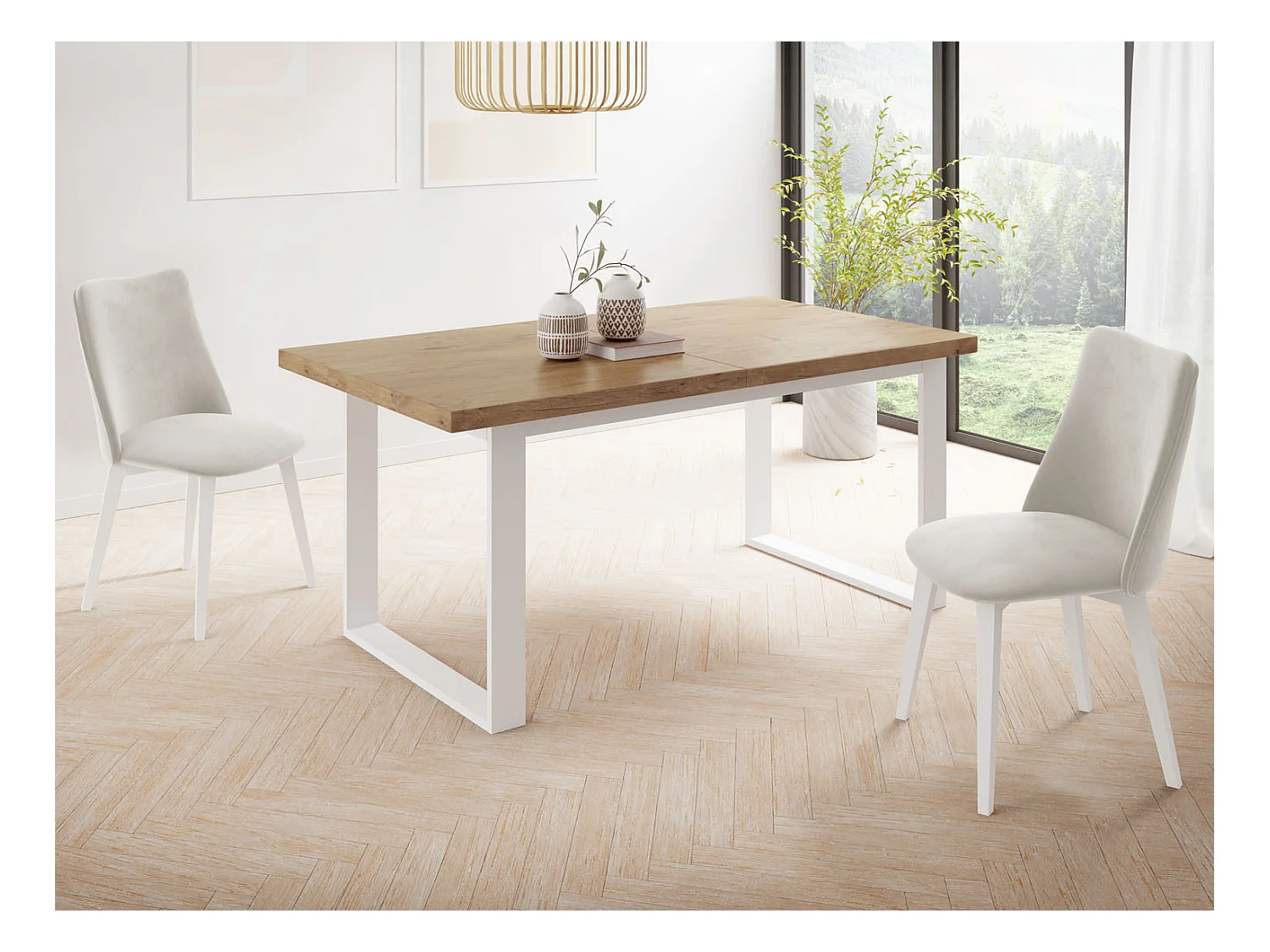 Table à Manger Rectangulaire Pour Salon - Table à Manger Style Loft Industriel Avec Pieds En Métal Blanc - Fabriqué en UE - 140 x 80 cm - Chêne Lancelot