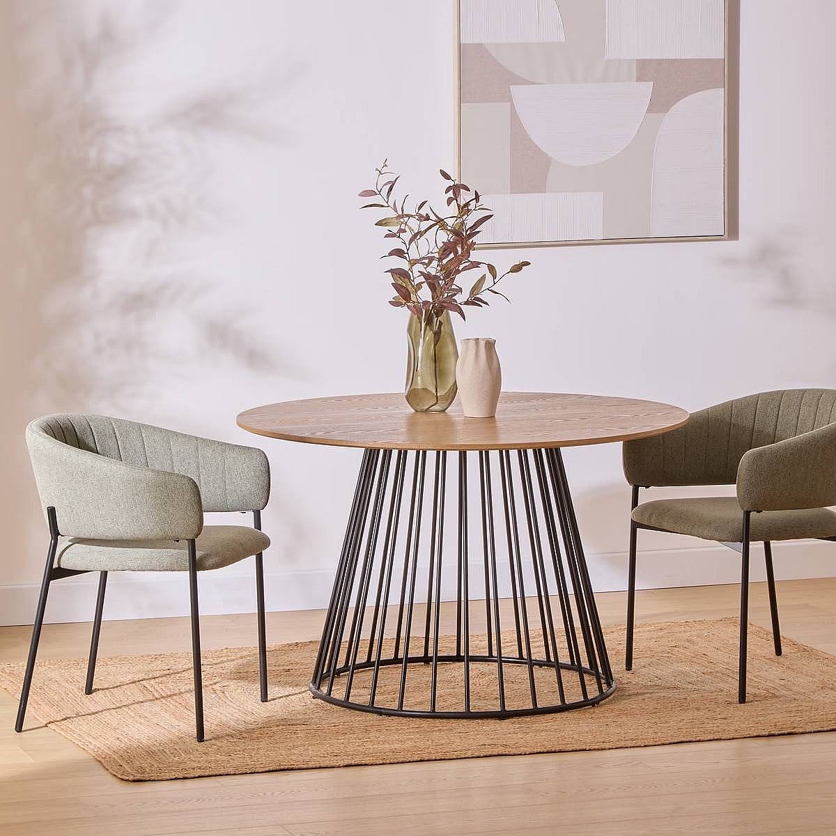Table à manger ronde avec pieds en métal noir - Diamètre 120 x Hauteur 75 cm