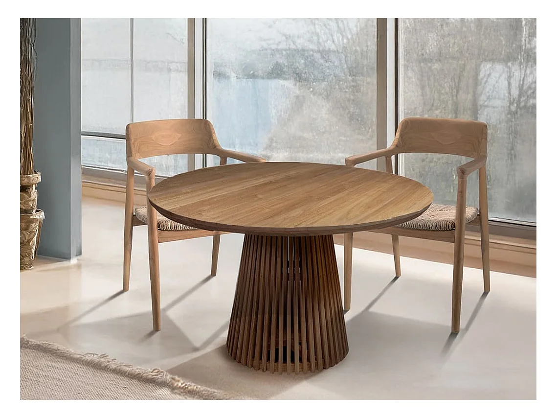 Table à manger ronde en bois massif KURIAL Ø130cm – 6 places