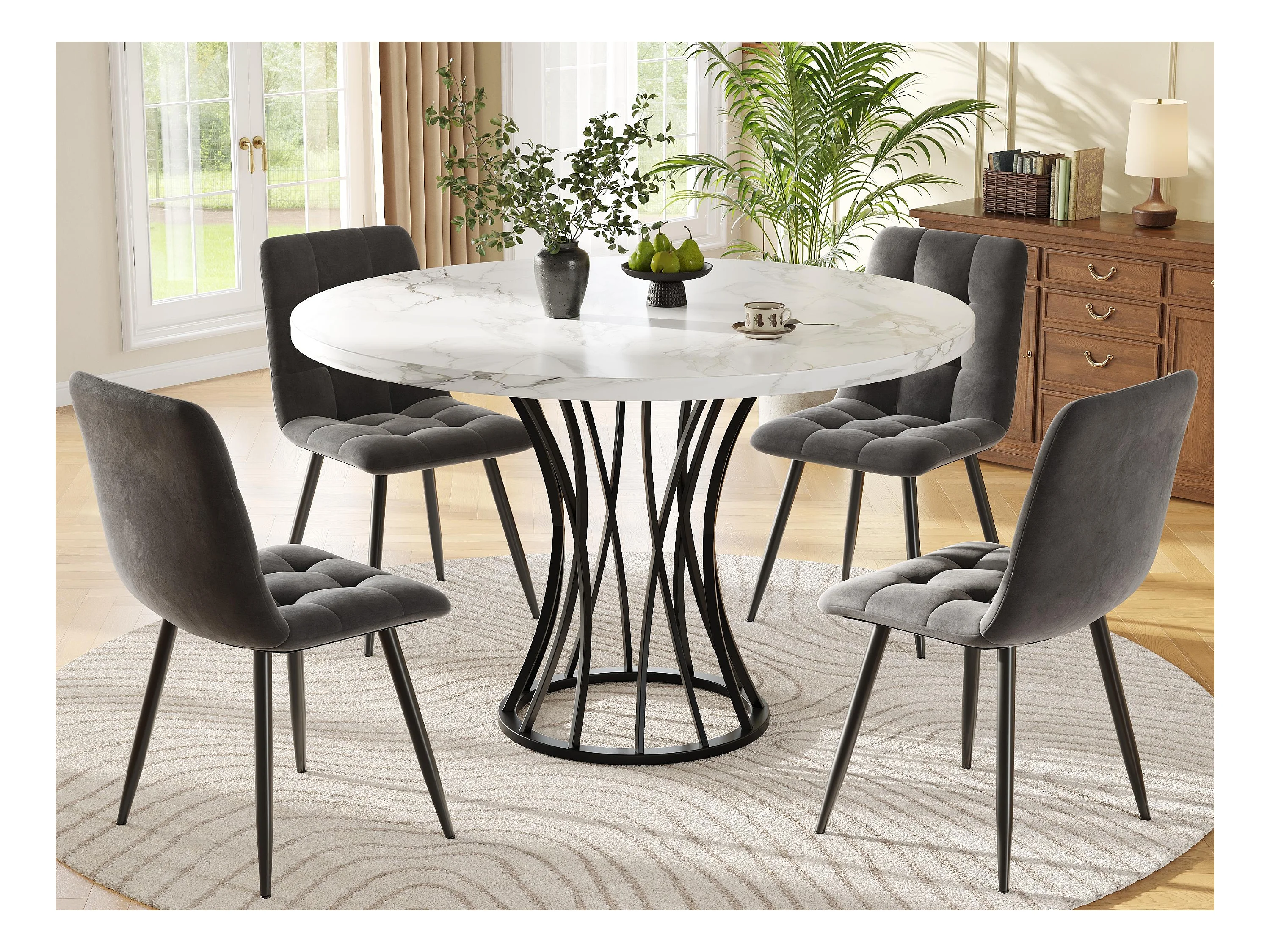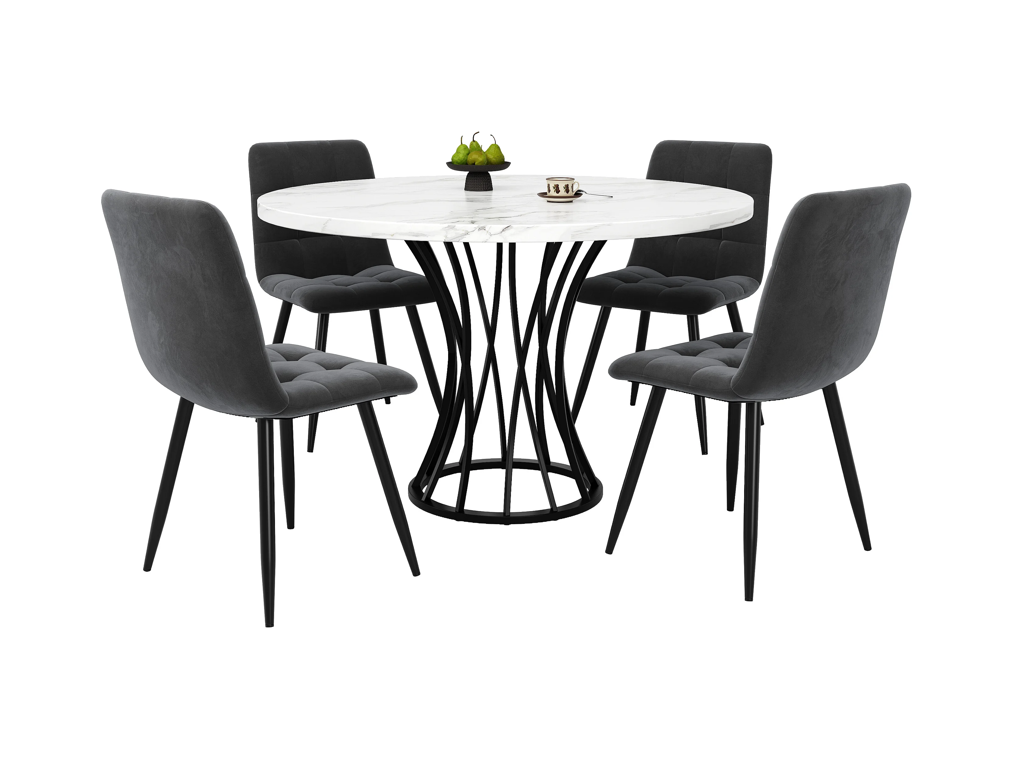 Table à manger ronde et 4 chaises - plateau en MDF、Structure en métal et coussins en velours - Blanc&Noir