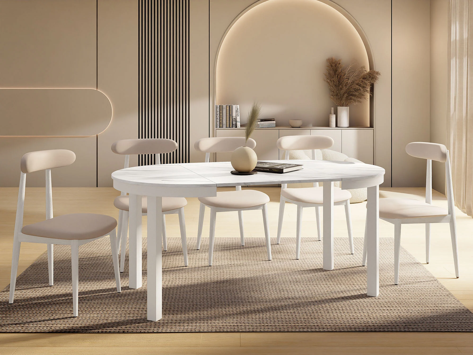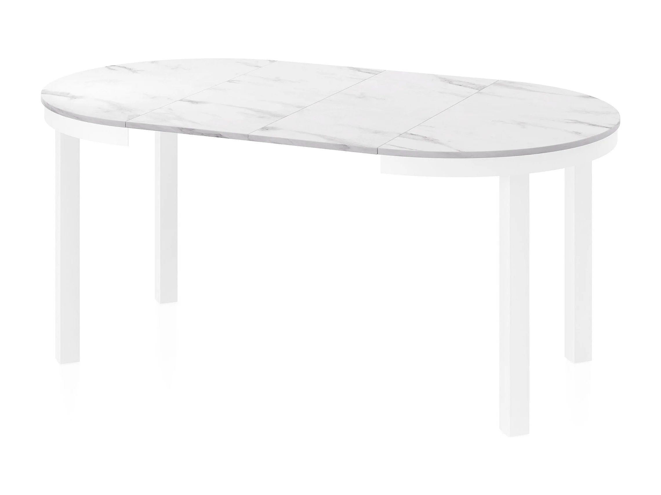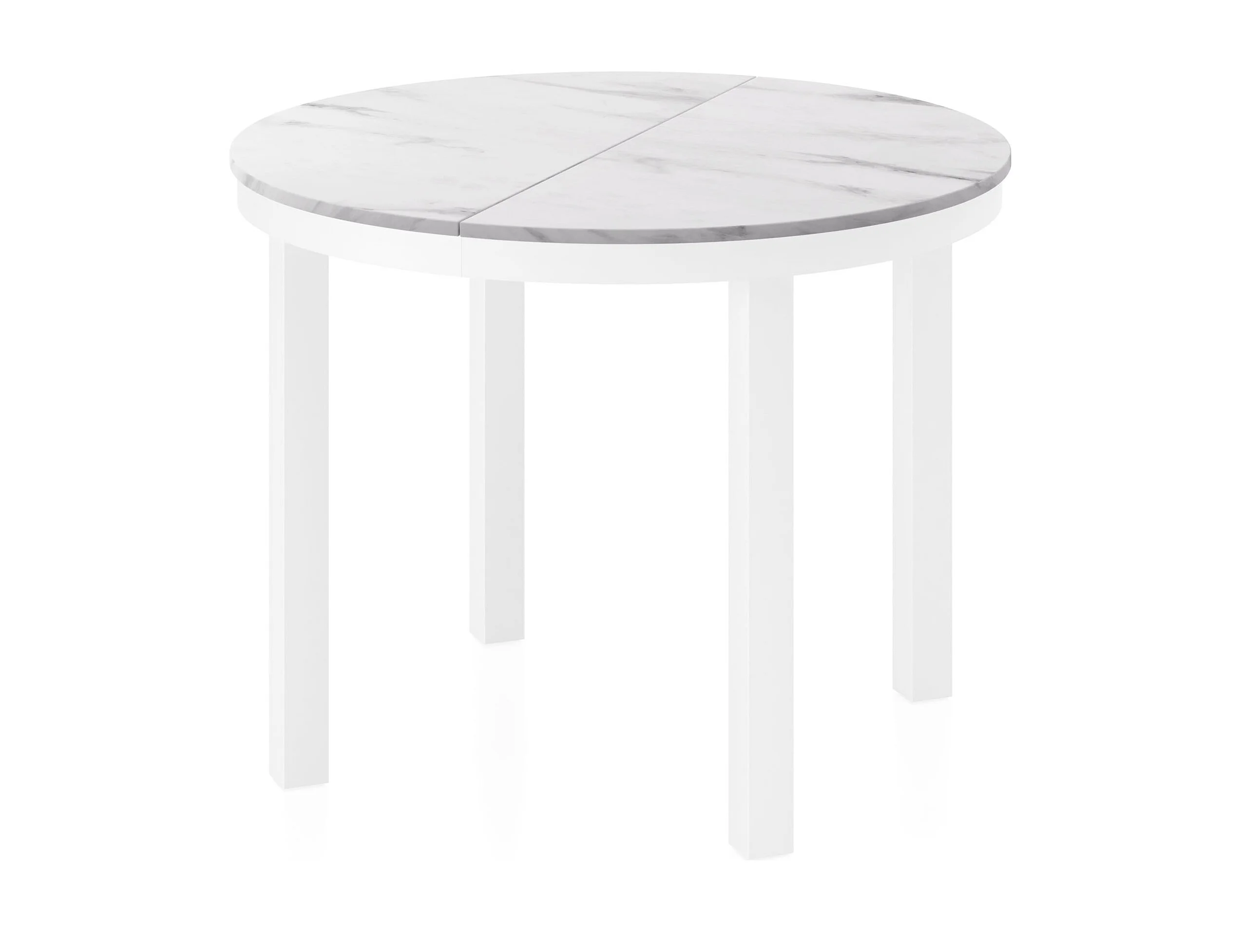 Table à Manger Ronde Extensible avec Pieds Métalliques Blancs – Table Industrielle – Table Gain de Place pour Salon ou Cuisine – 100 cm à 180 cm – Marbre Blanc