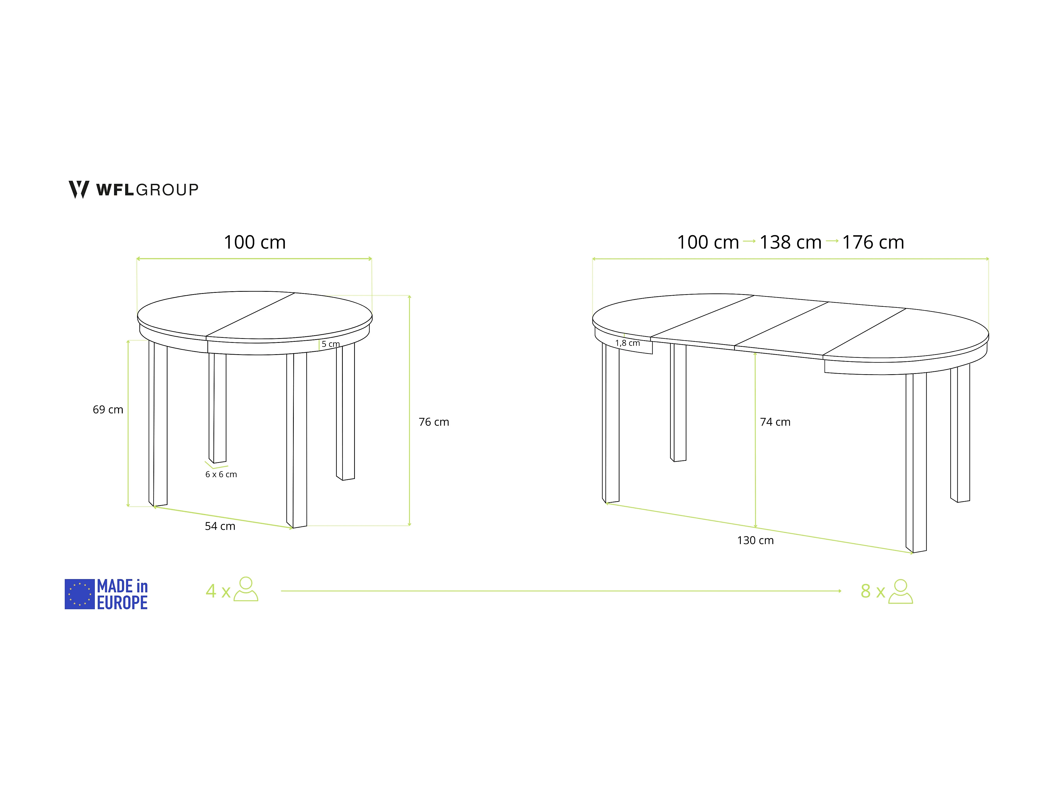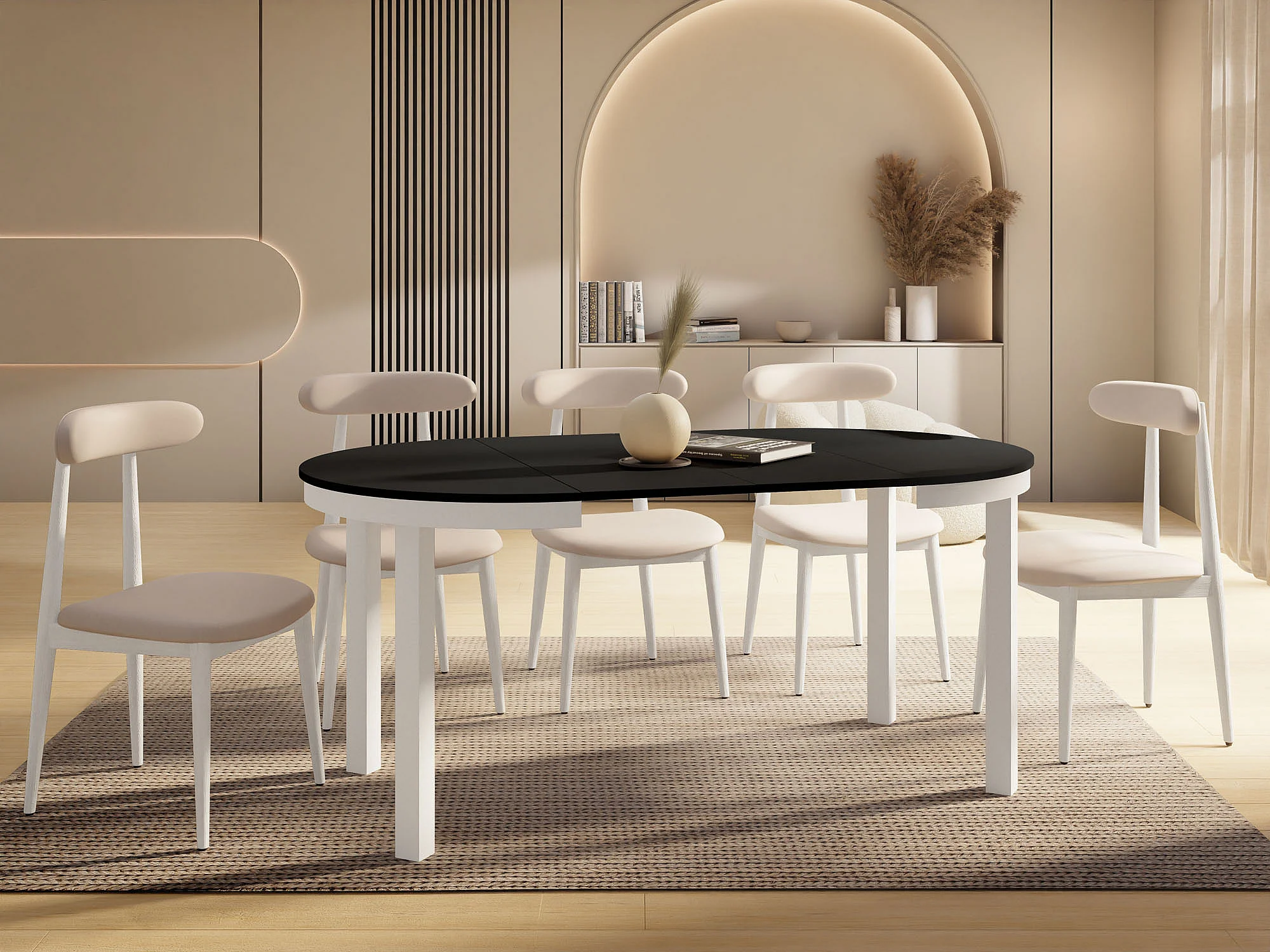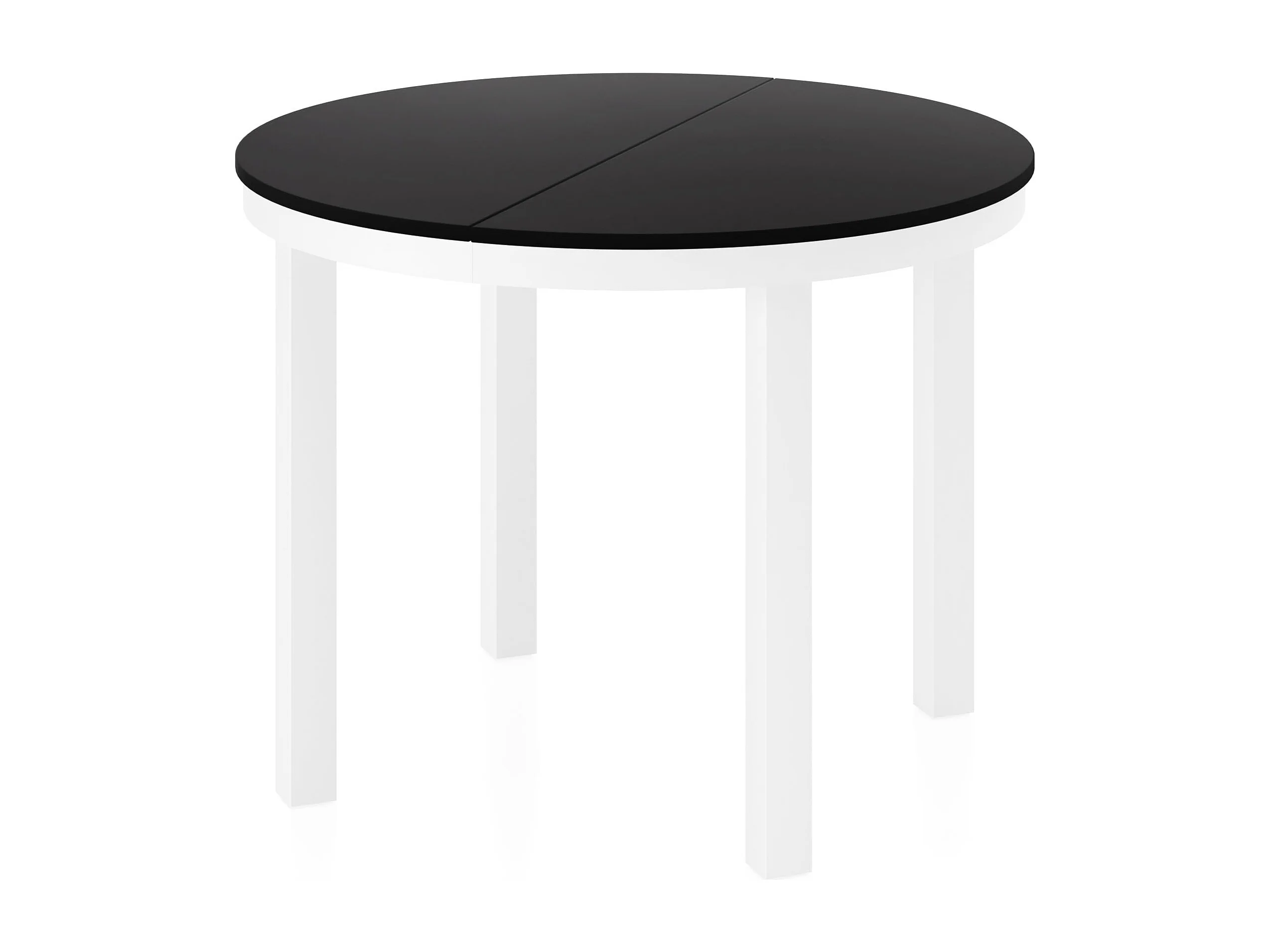 Table à Manger Ronde Extensible avec Pieds Métalliques Blancs – Table Industrielle – Table Gain de Place pour Salon ou Cuisine – 100 cm à 180 cm – Noir