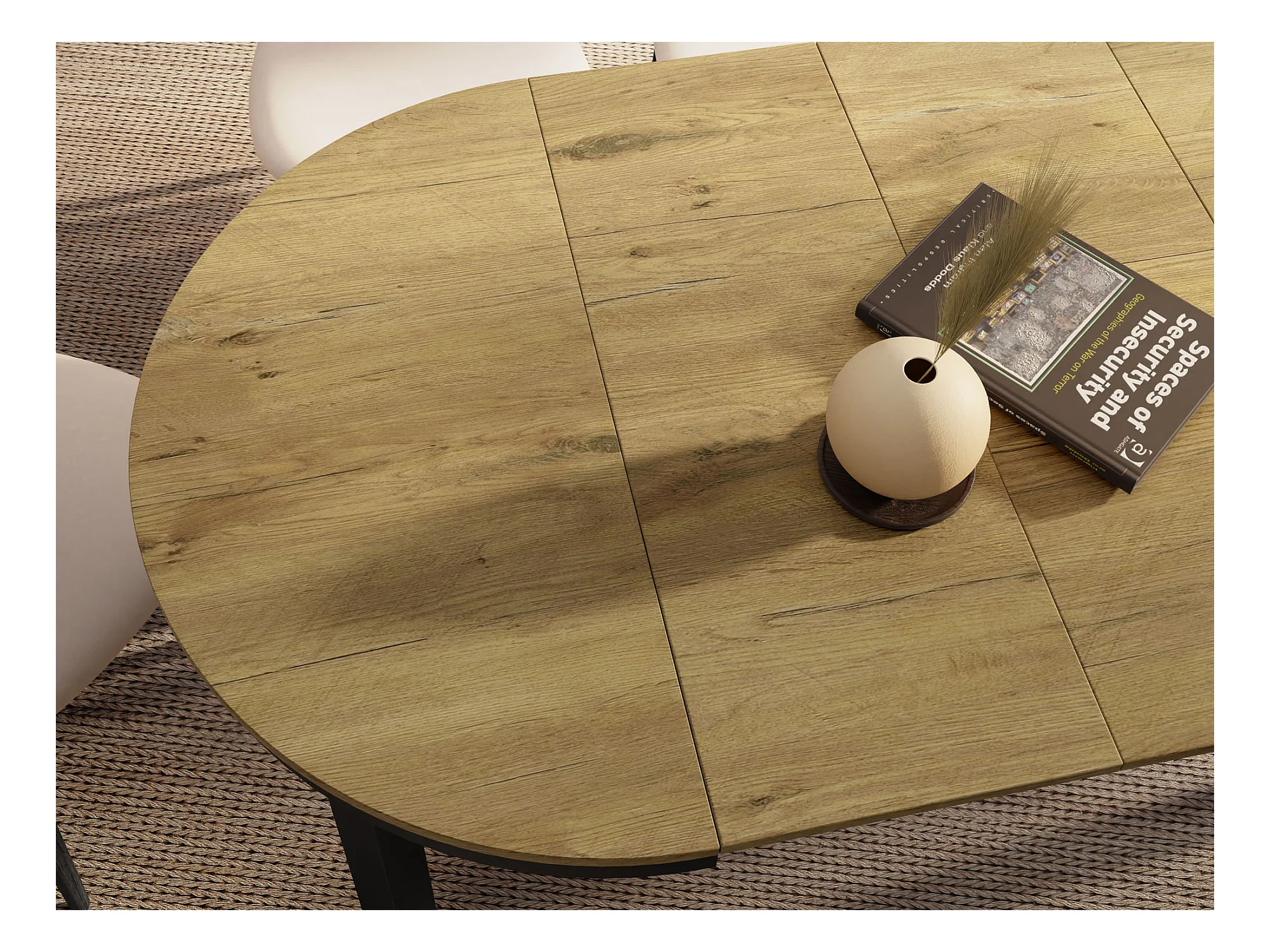 Table à Manger Ronde Extensible avec Pieds Métalliques Noirs – Table Industrielle – Table Gain de Place pour Salon ou Cuisine – 100 cm à 180 cm – Chêne Lancelot