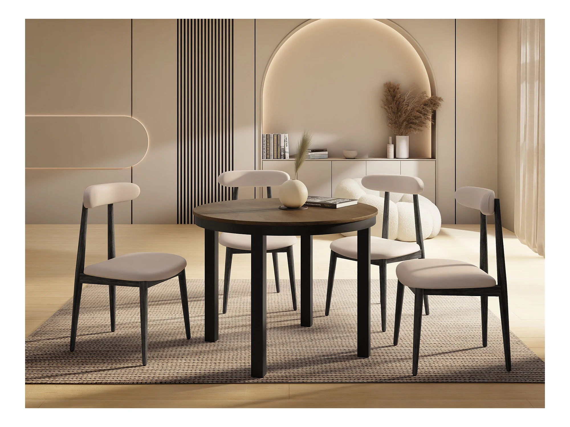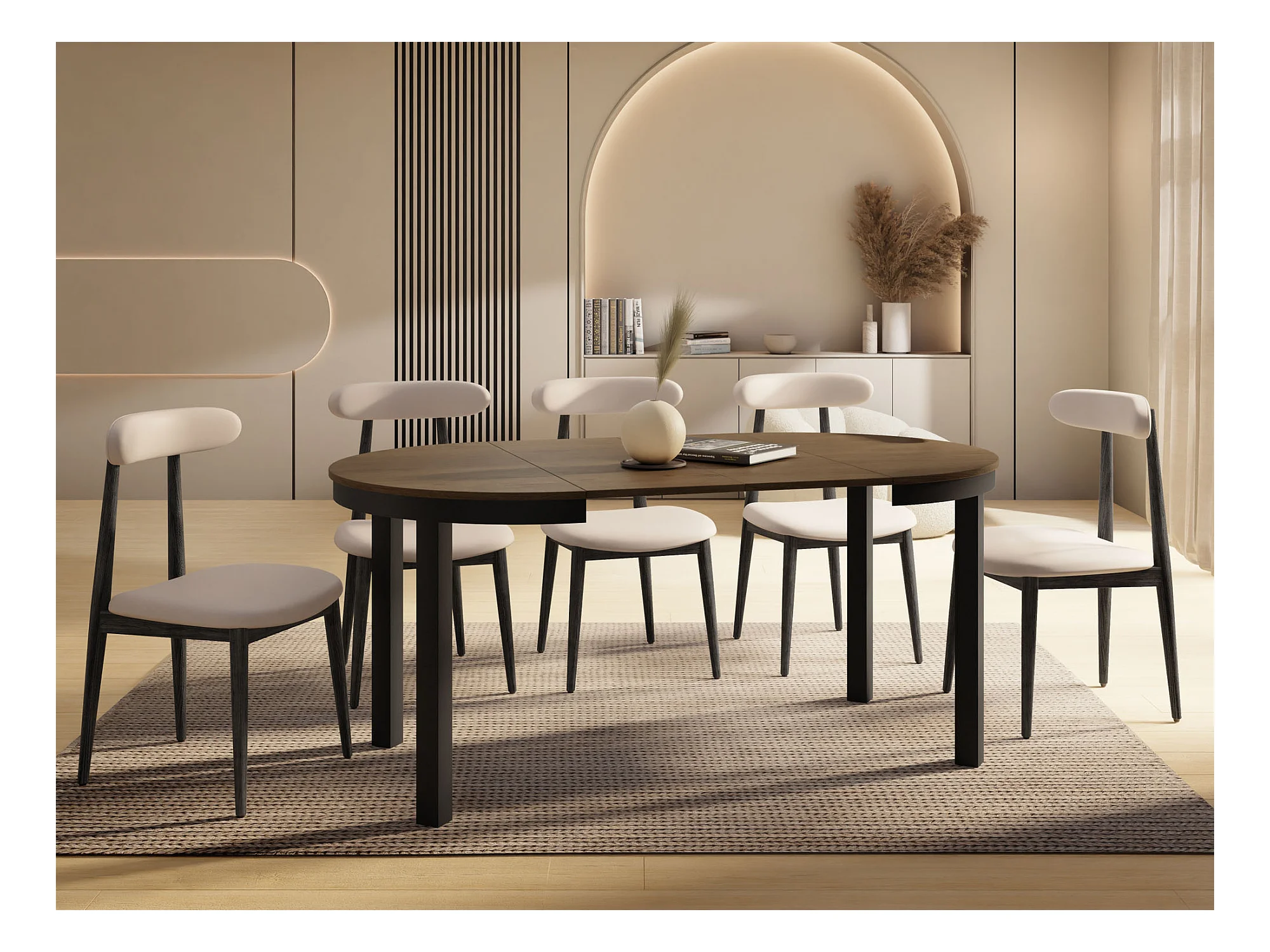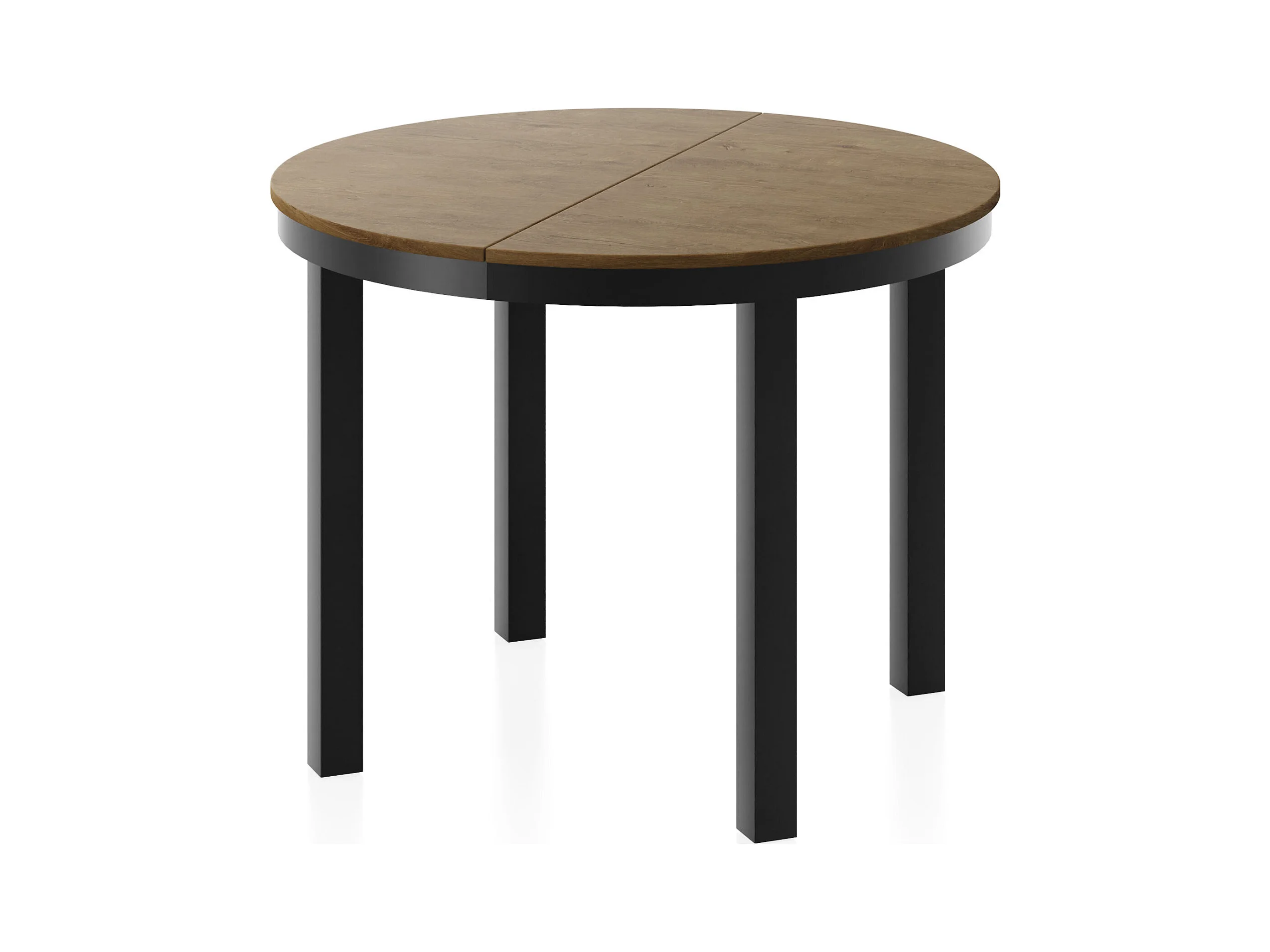 Table à Manger Ronde Extensible avec Pieds Métalliques Noirs – Table Industrielle – Table Gain de Place pour Salon ou Cuisine – 100 cm à 180 cm – Chêne Lefkas