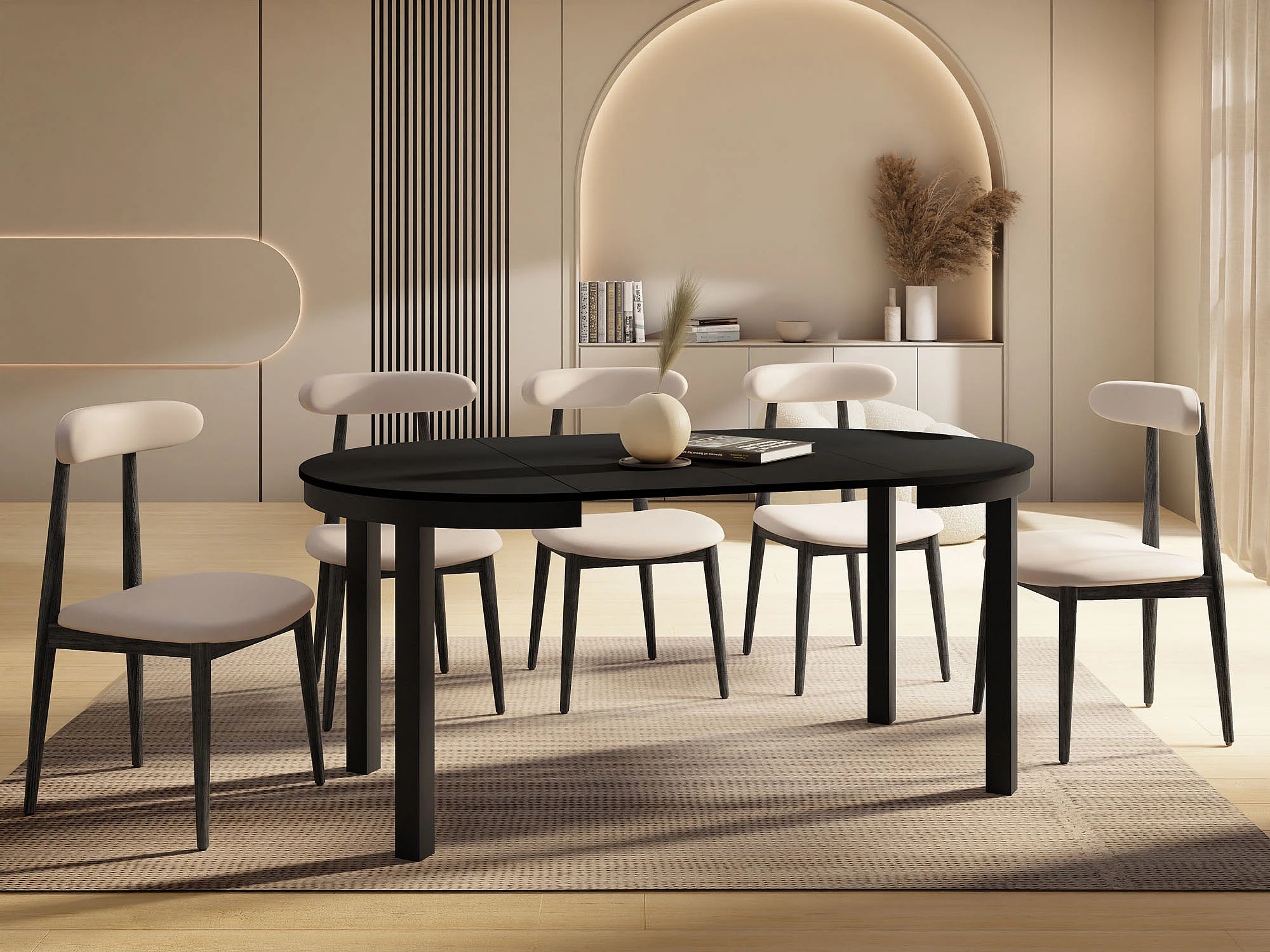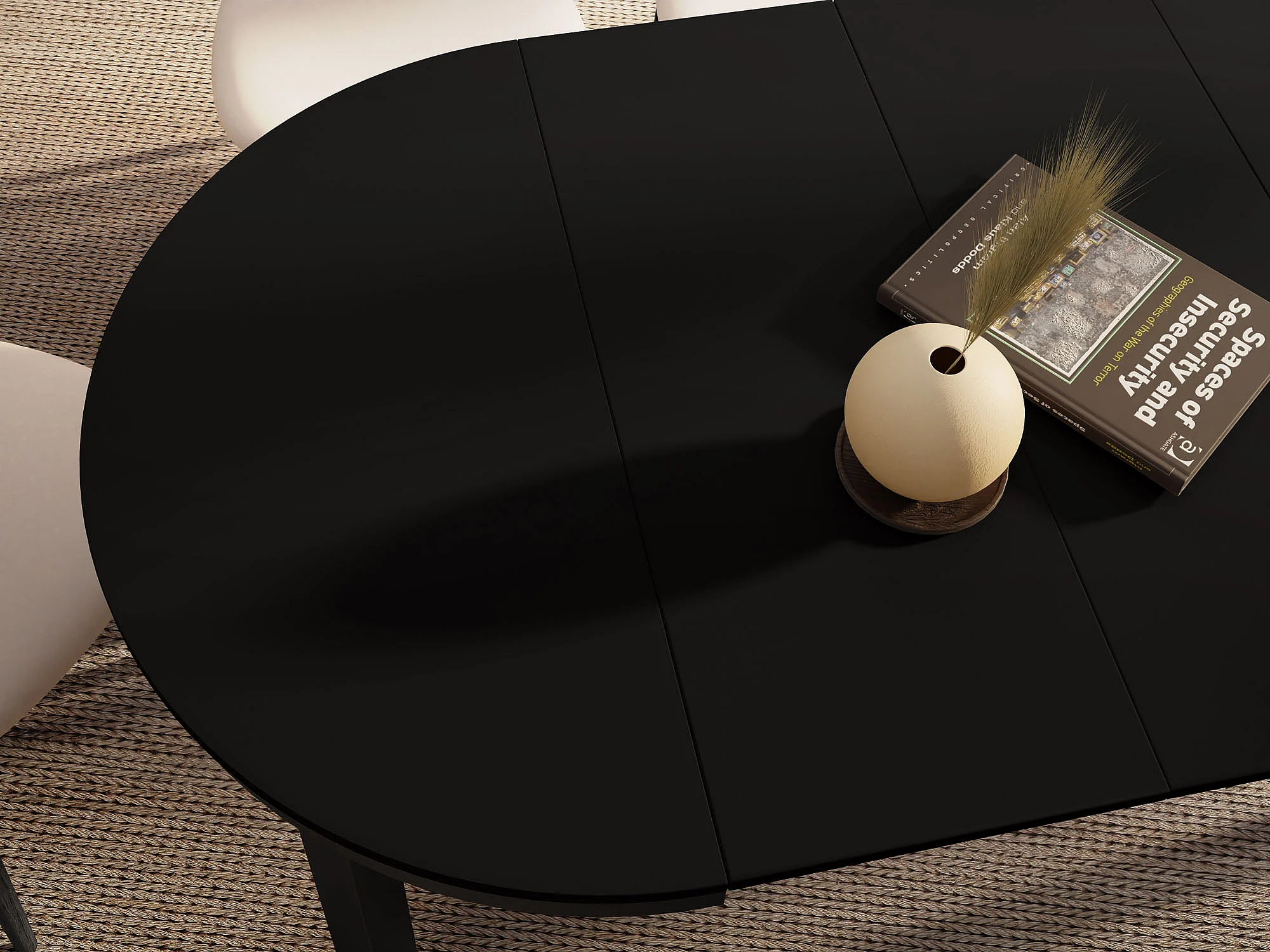 Table à Manger Ronde Extensible avec Pieds Métalliques Noirs – Table Industrielle – Table Gain de Place pour Salon ou Cuisine – 100 cm à 180 cm – Noir