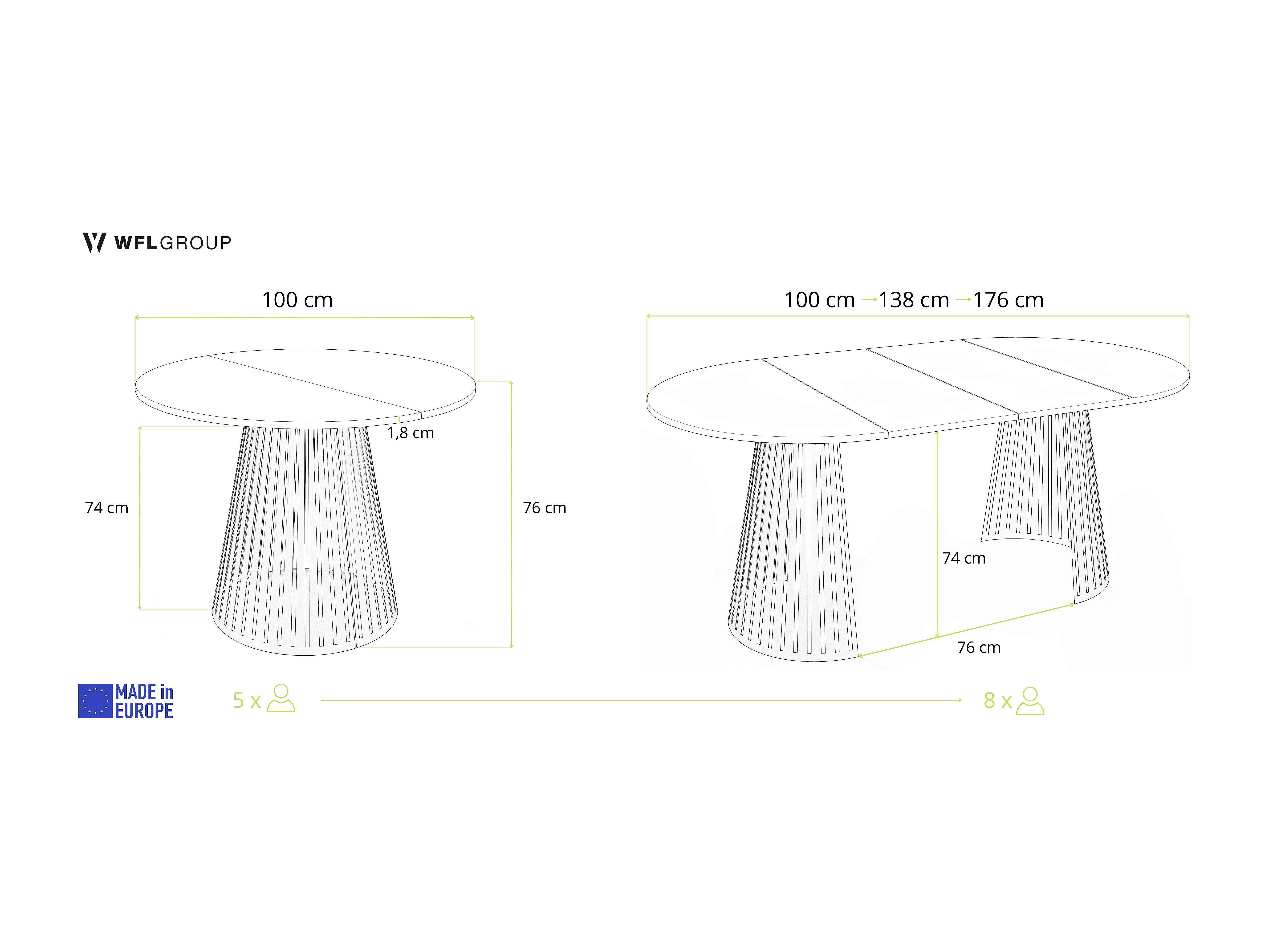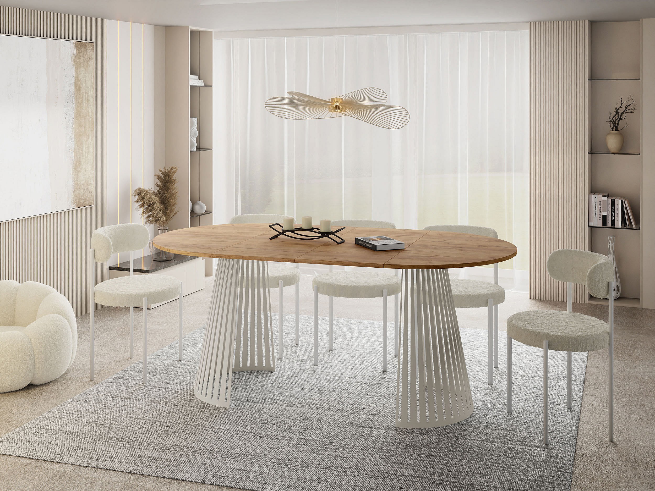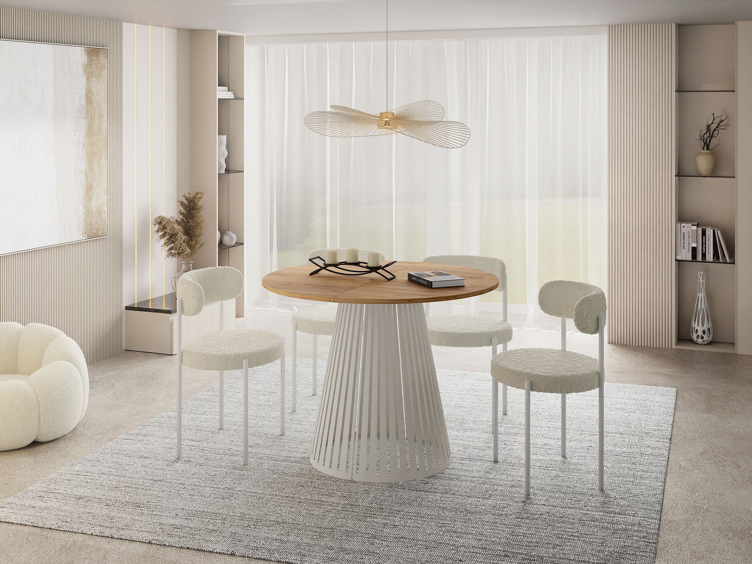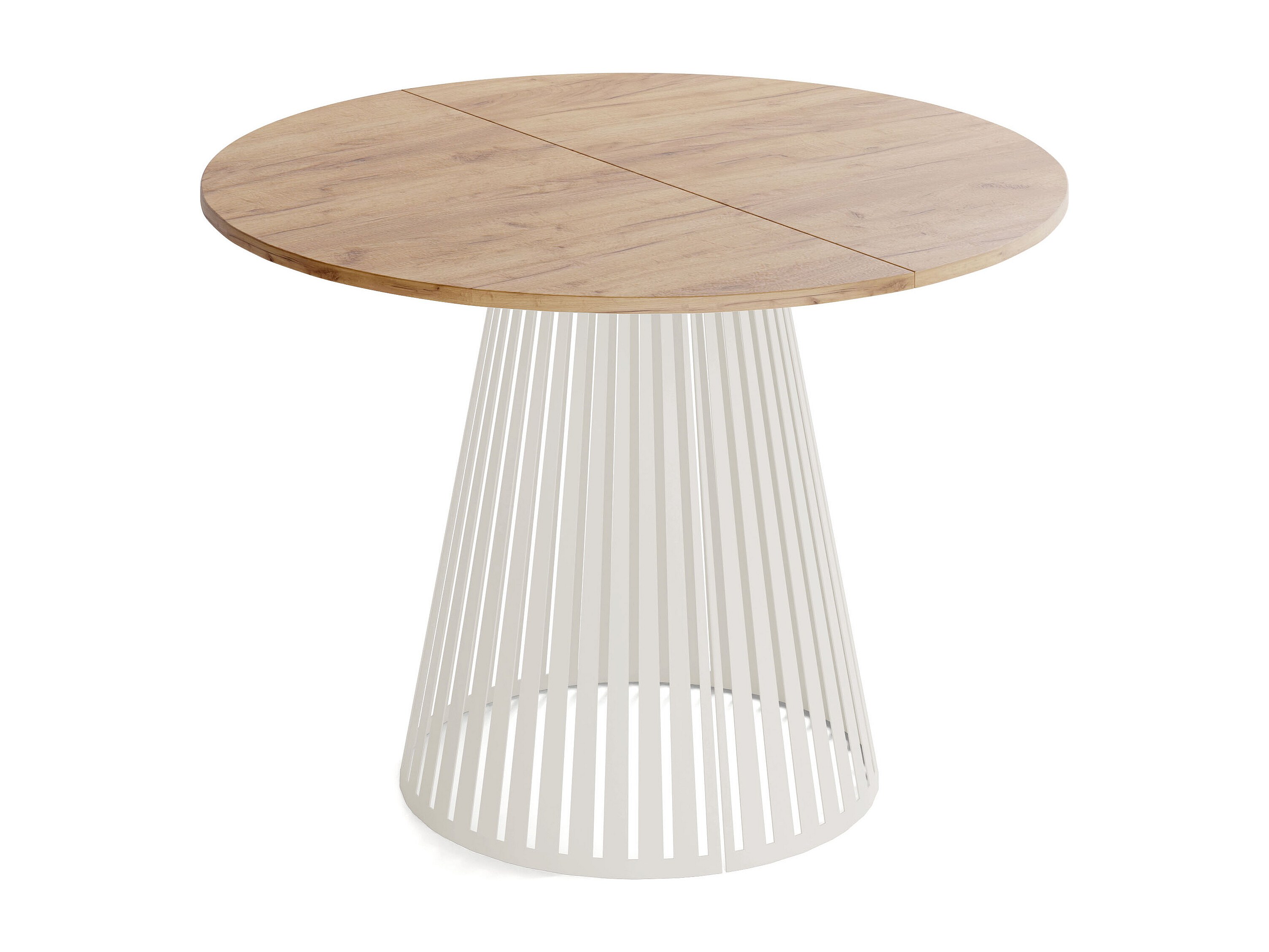 Table à Manger Ronde Extensible Style Loft – 100 cm – Design Industriel avec Pieds en Métal Beige Cashmere, Gain de Place pour Salon ou Salle à Manger – Marron