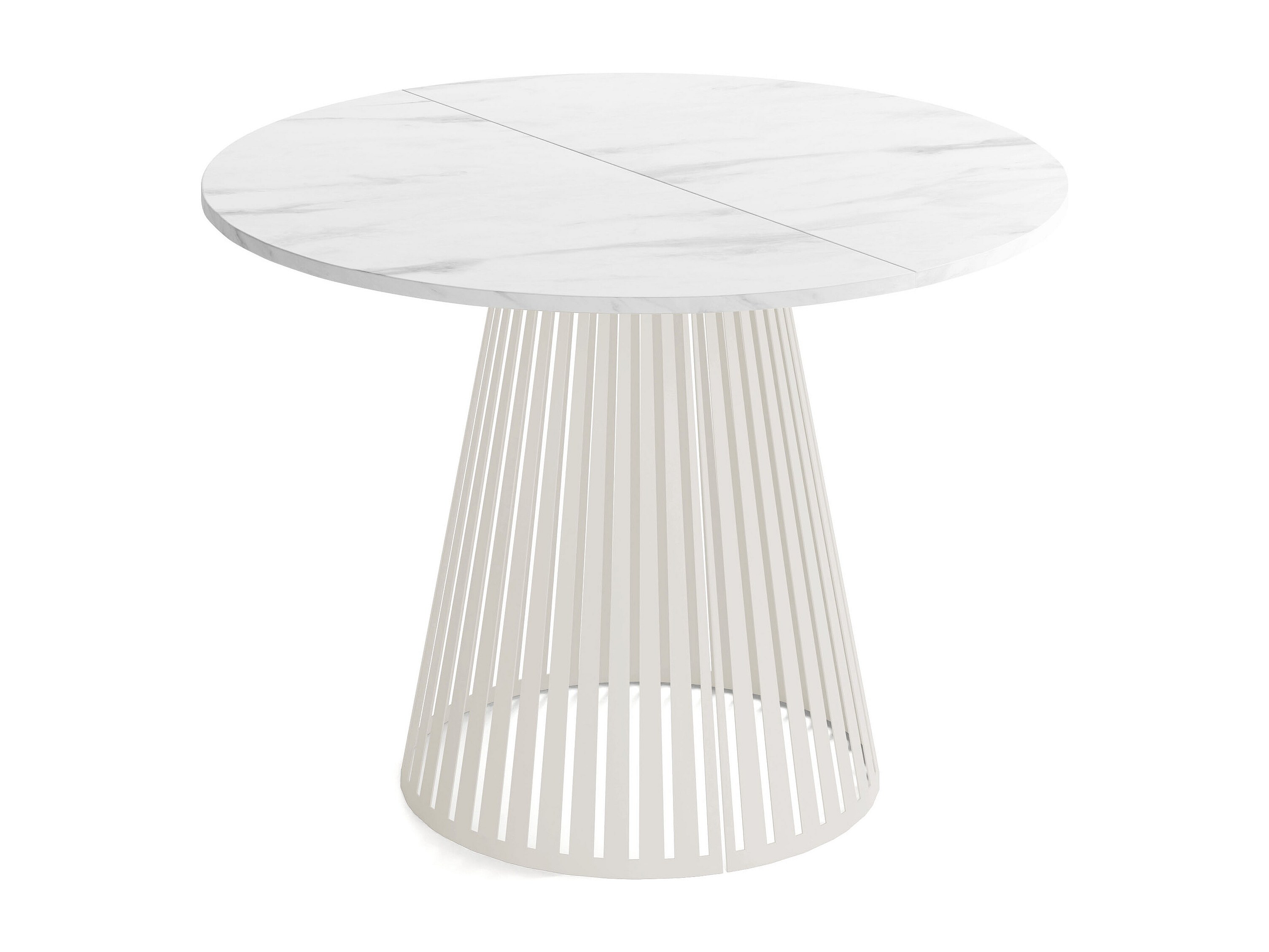 Table à Manger Ronde Extensible Style Loft – 100 cm – Design Industriel avec Pieds en Métal Beige Cashmere, Gain de Place pour Salon Salle à Manger – Marbre Blanc