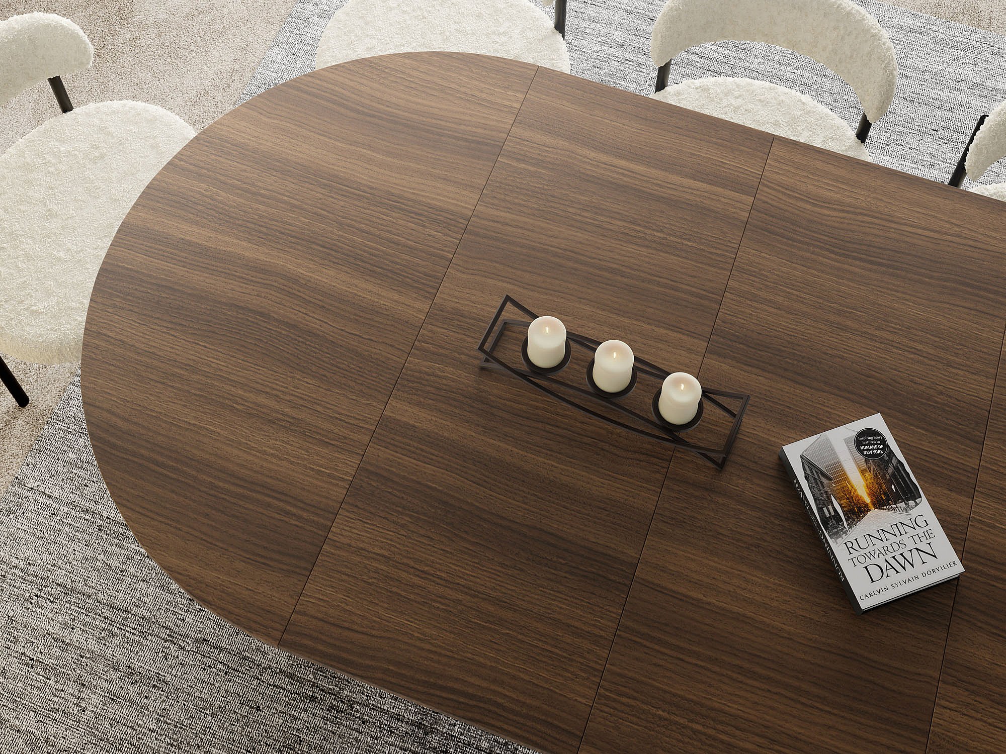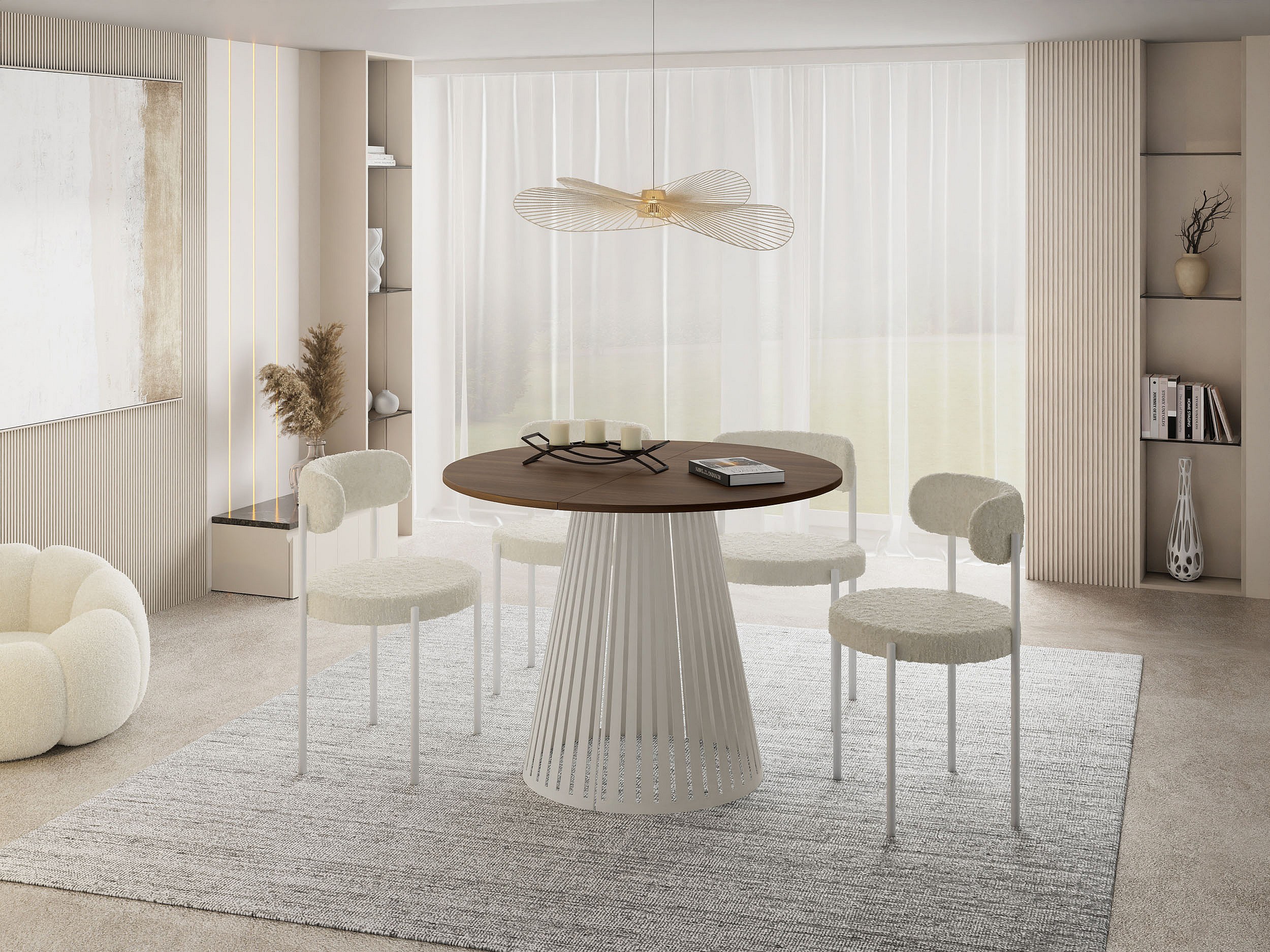 Table à Manger Ronde Extensible Style Loft – 100 cm – Design Industriel avec Pieds en Métal Beige Cashmere, Gain de Place pour Salon Salle à Manger – Marron Noyer