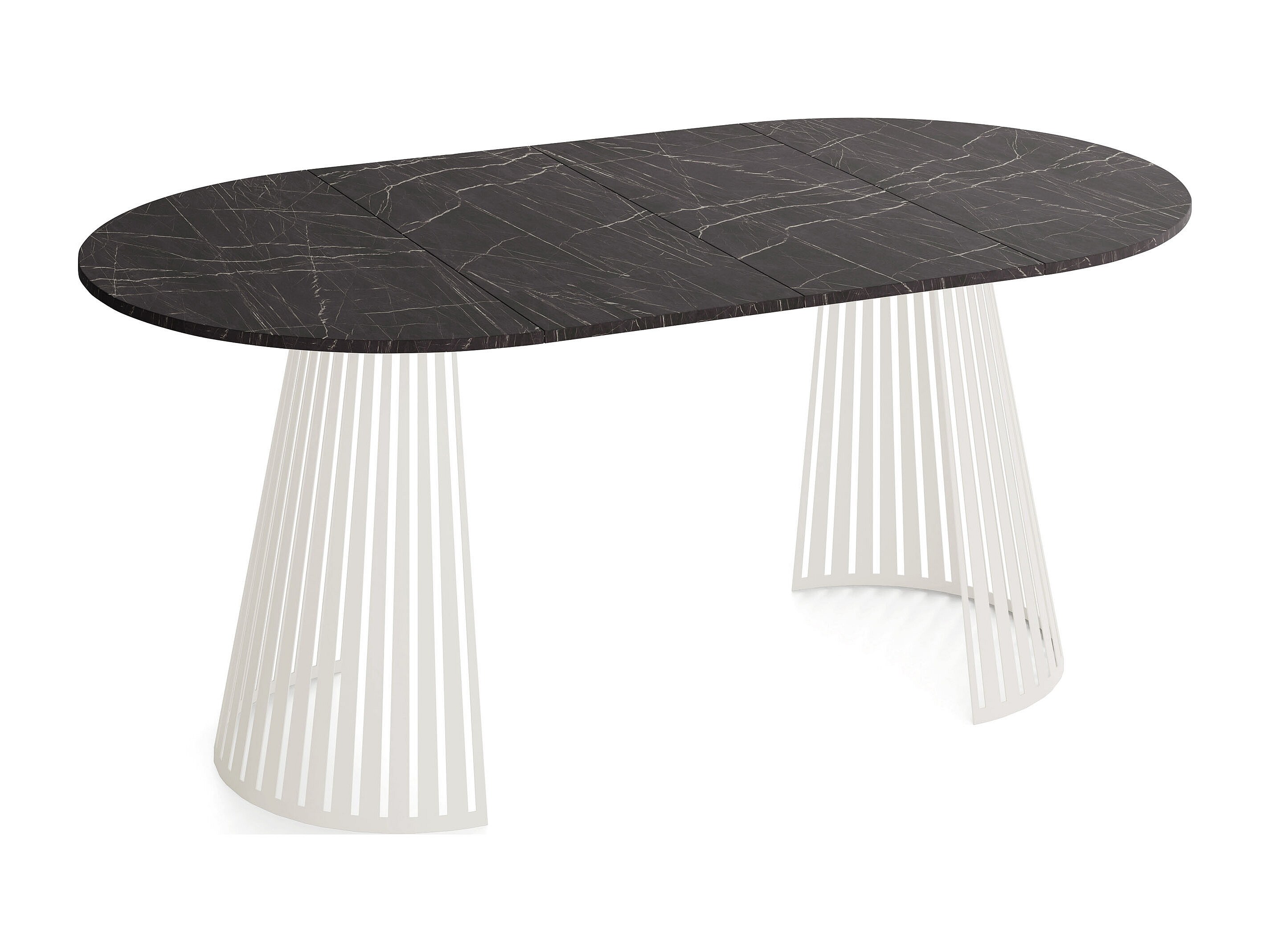 Table à Manger Ronde Extensible Style Loft – 120 cm – Design Industriel avec Pieds en Métal Beige Cashmere, Gain de Place pour Salon ou Salle à Manger – Marbre Noir