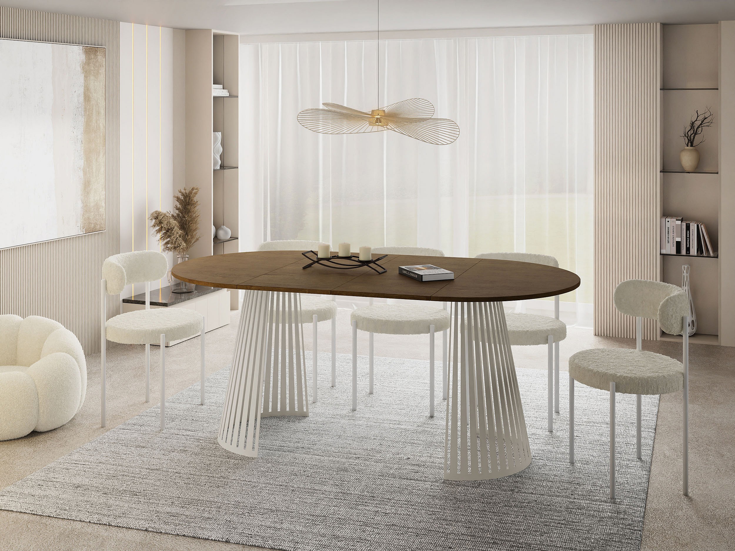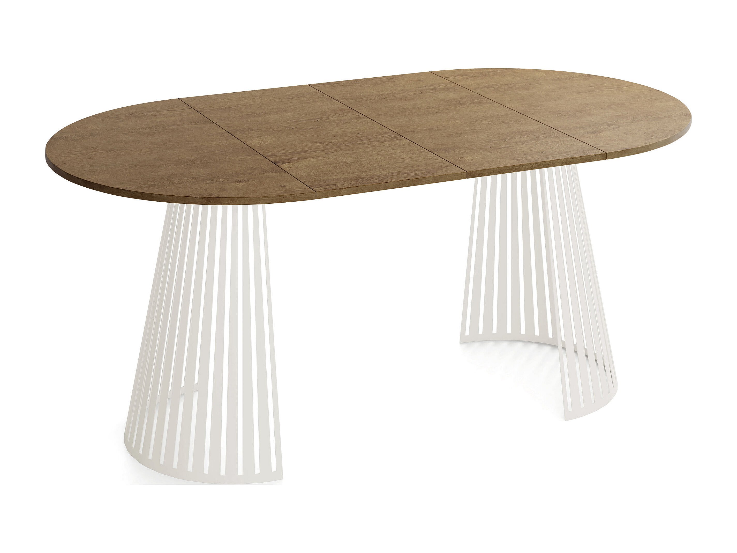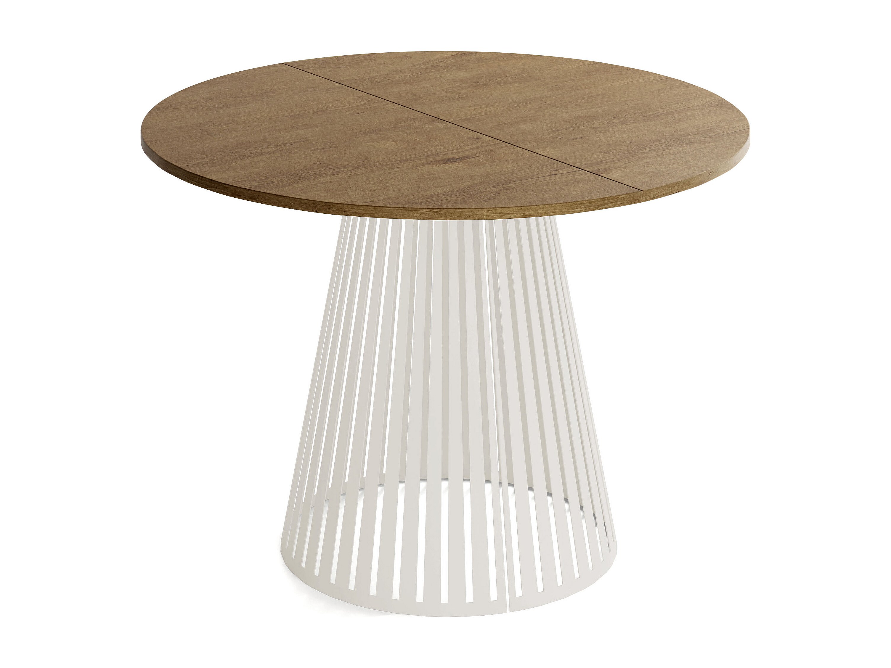 Table à Manger Ronde Extensible Style Loft – 120 cm – Design Industriel avec Pieds en Métal Beige Cashmere, Gain de Place pour Salon ou Salle à Manger – Marron