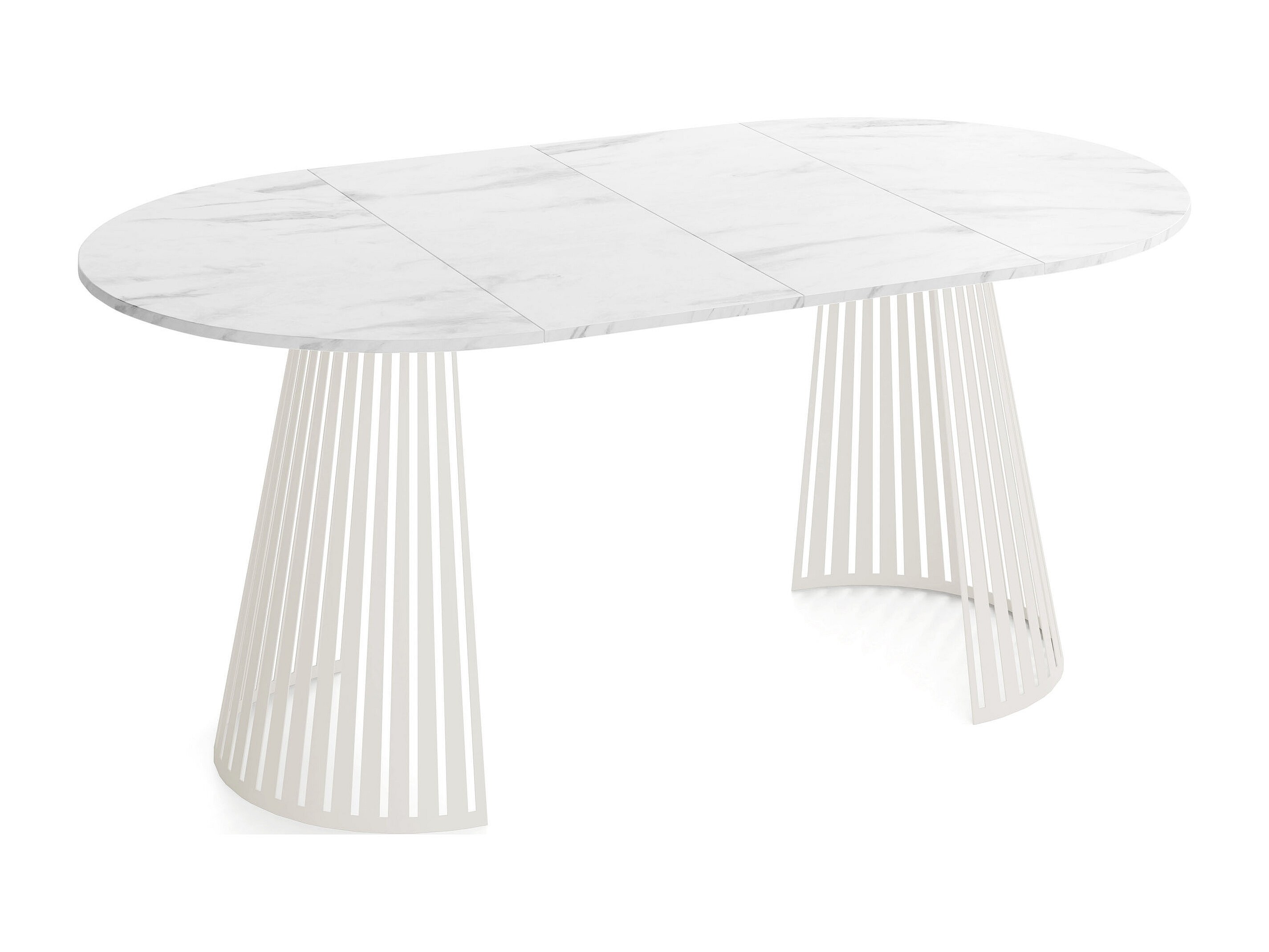Table à Manger Ronde Extensible Style Loft – 120 cm – Design Industriel avec Pieds en Métal Beige Cashmere, Gain de Place pour Salon Salle à Manger – Marbre Blanc