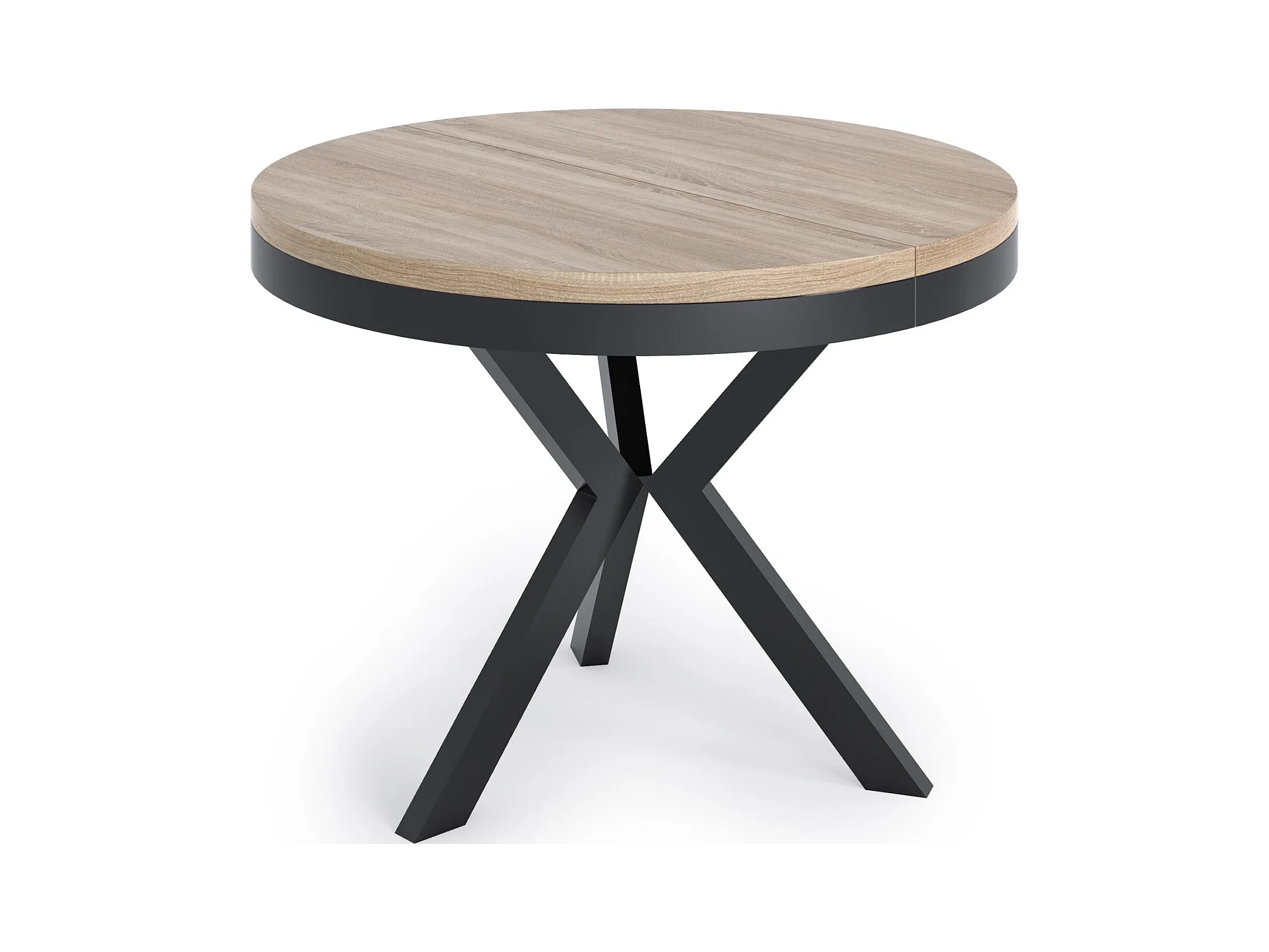 Table à manger ronde extensible style Loft - Grande table industrielle avec pieds en métal - Gain de place pour salon et séjour - Chêne Sonoma - 100 à 140 cm