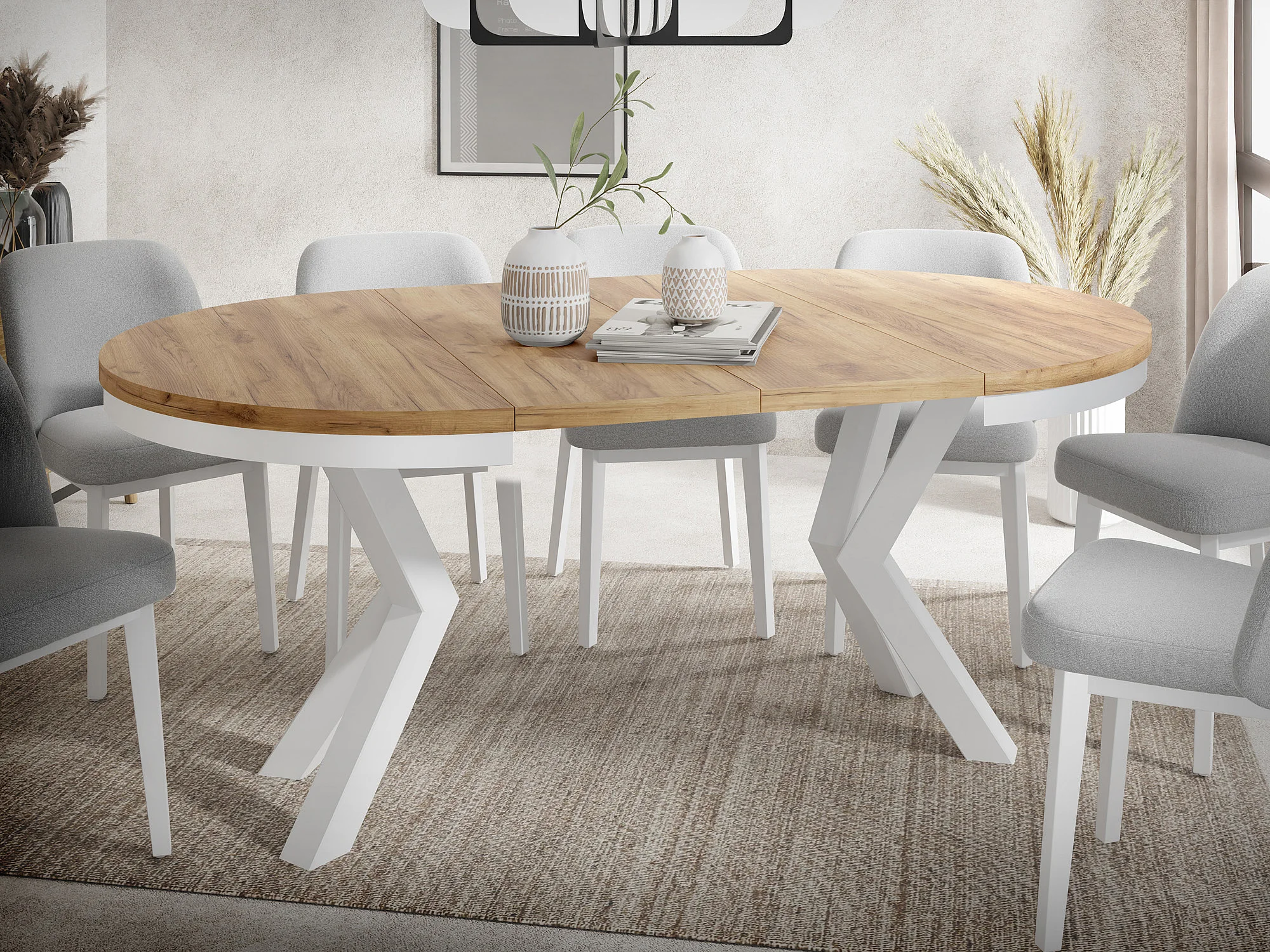 Table à Manger Ronde Extensible Style Loft - Table avec Pieds Métalliques Blancs - Table Gain de Place pour Salon - Chêne Craft Or - 120 à 200 cm