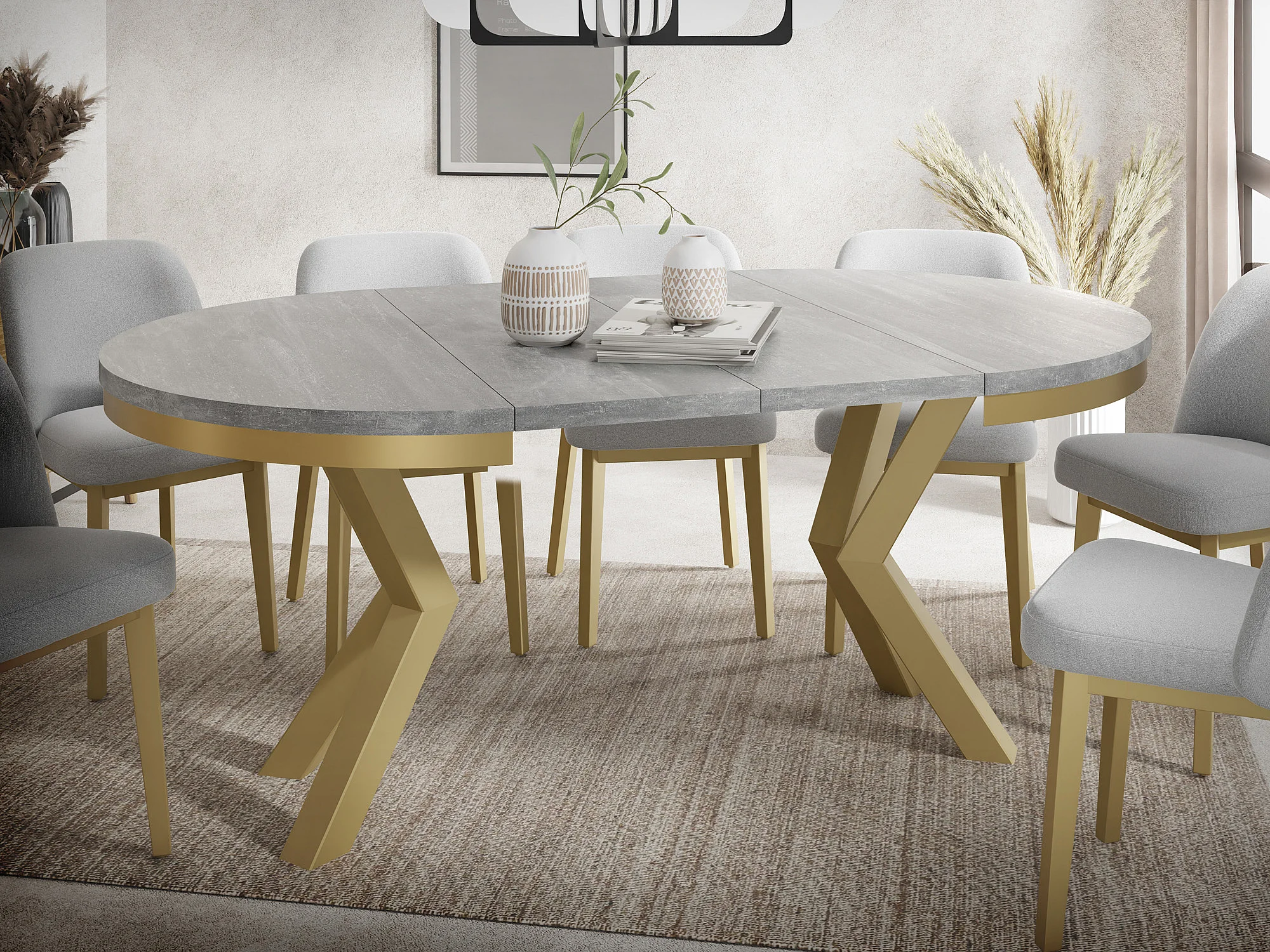 Table à Manger Ronde Extensible Style Loft - Table avec Pieds Métalliques Dorés - Table Gain de Place pour Salon - Béton Gris - 100 à 180 cm