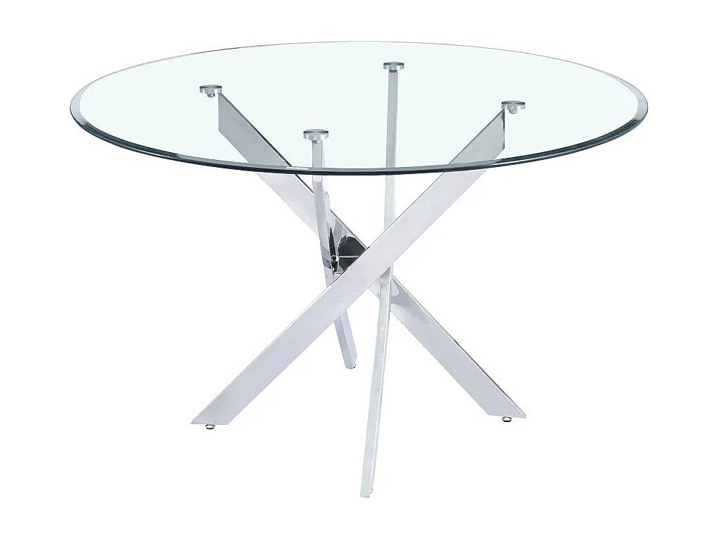 Table à manger ronde JESSICA TRANSPARENT chrome 100 cm 4 couverts