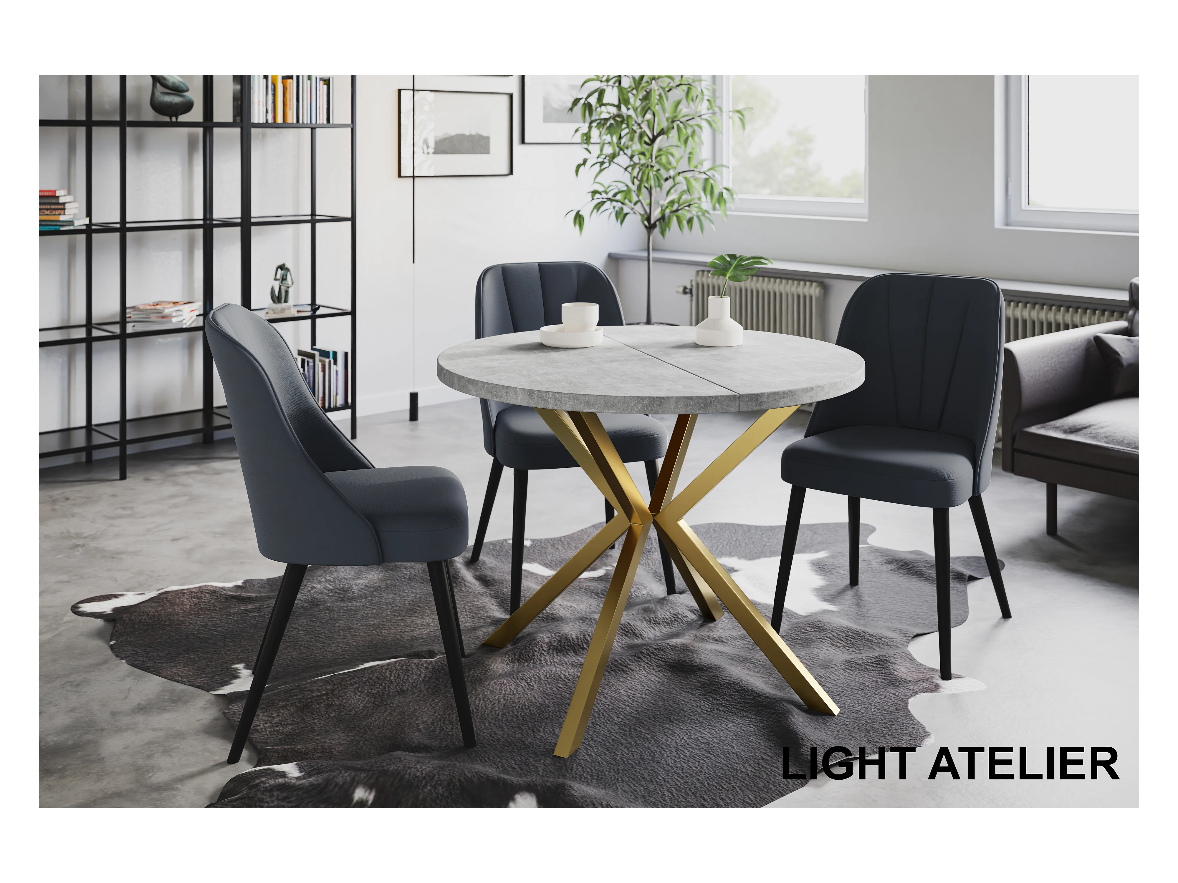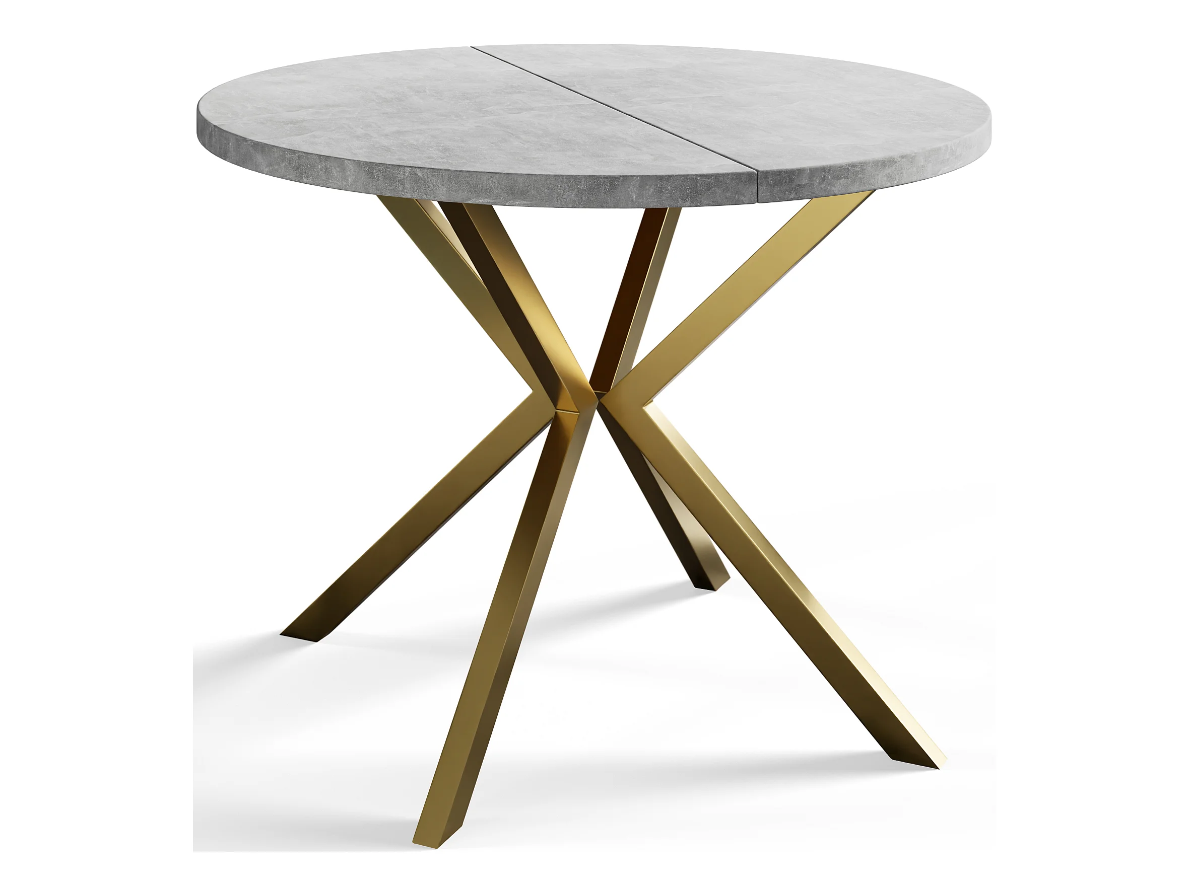 Table à manger ronde LITEN, table à rallonges Diamètre : 120 cm/200 cm, table de salon Couleur : gris clair, avec pieds métalliques couleur or