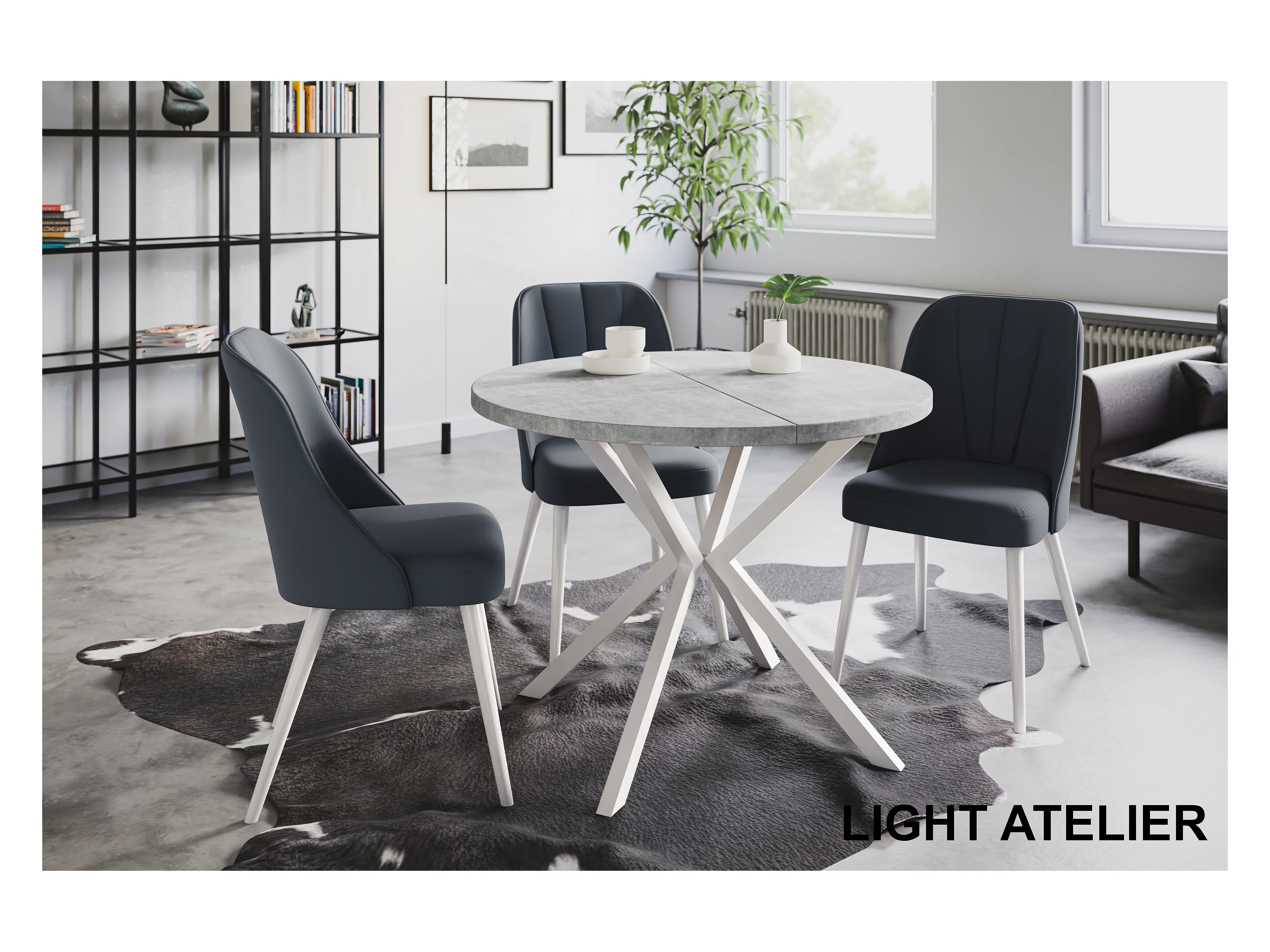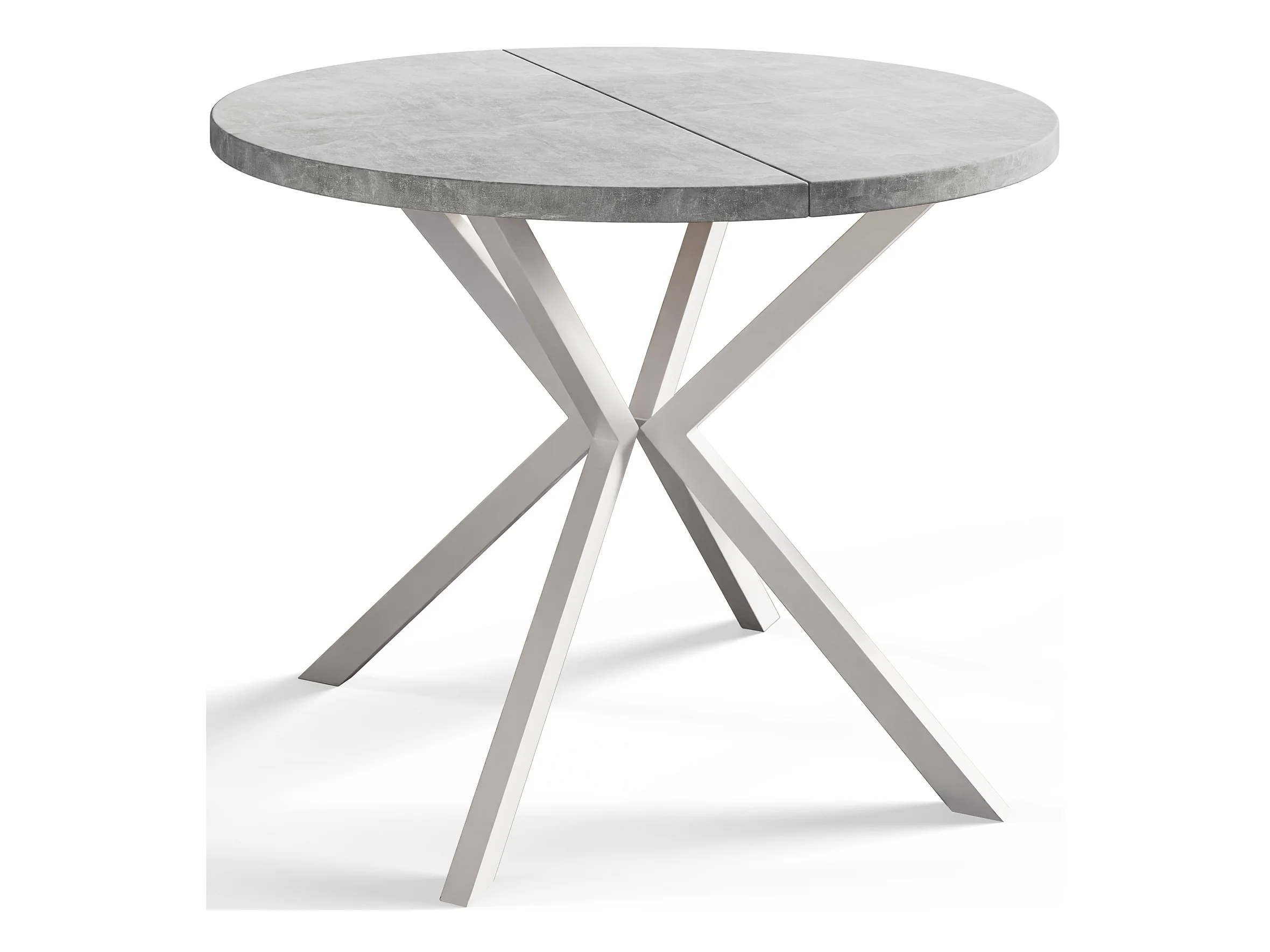 Table à manger ronde LITEN, table à rallonges Diamètre : 90 cm/170 cm, couleur de la table basse : gris clair, avec pieds métalliques de couleur blanche