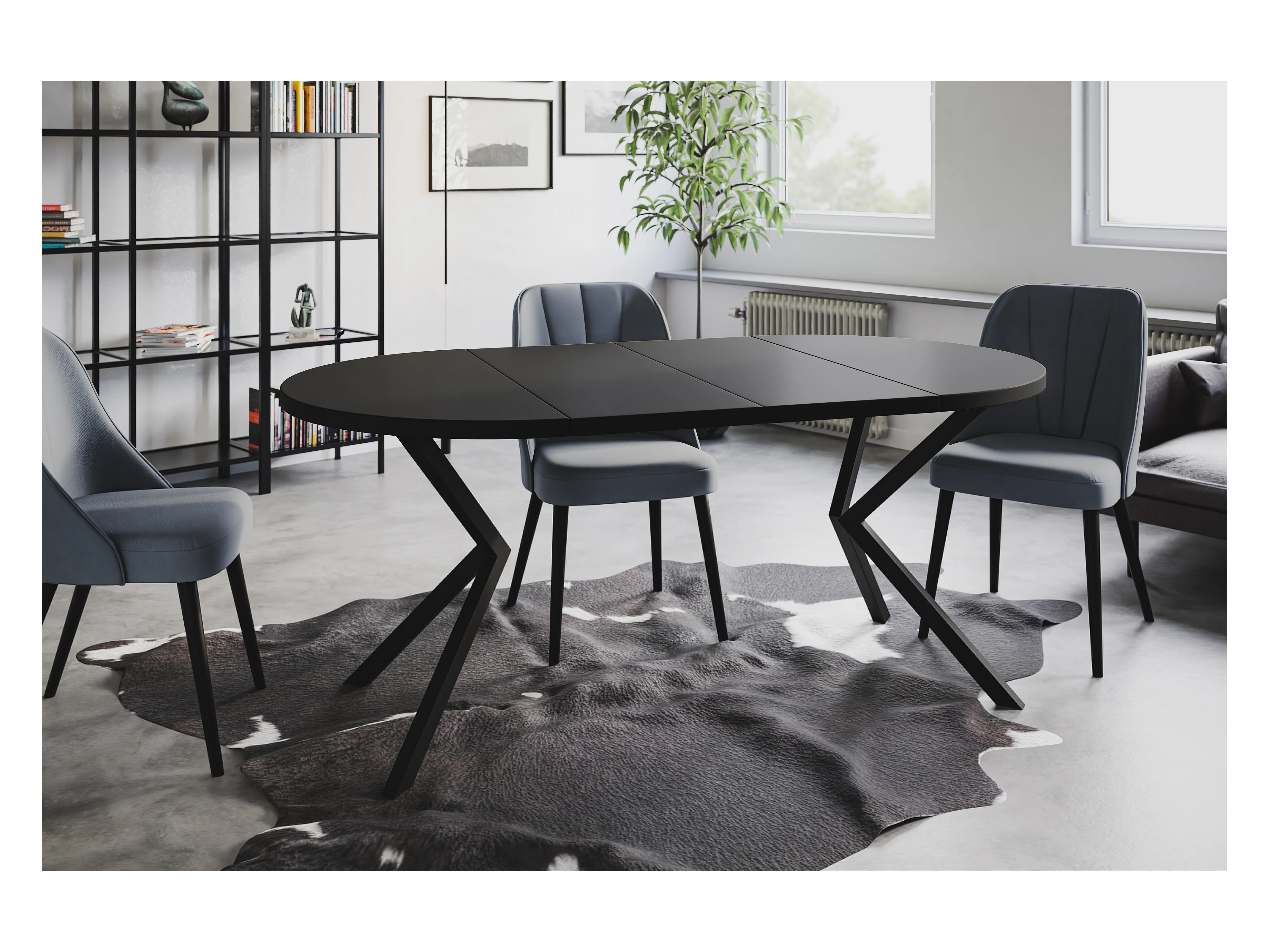 Table à manger ronde LITEN, table à rallonges Diamètre : 90 cm/170 cm, couleur de la table basse : noir, avec pieds métalliques de couleur noire