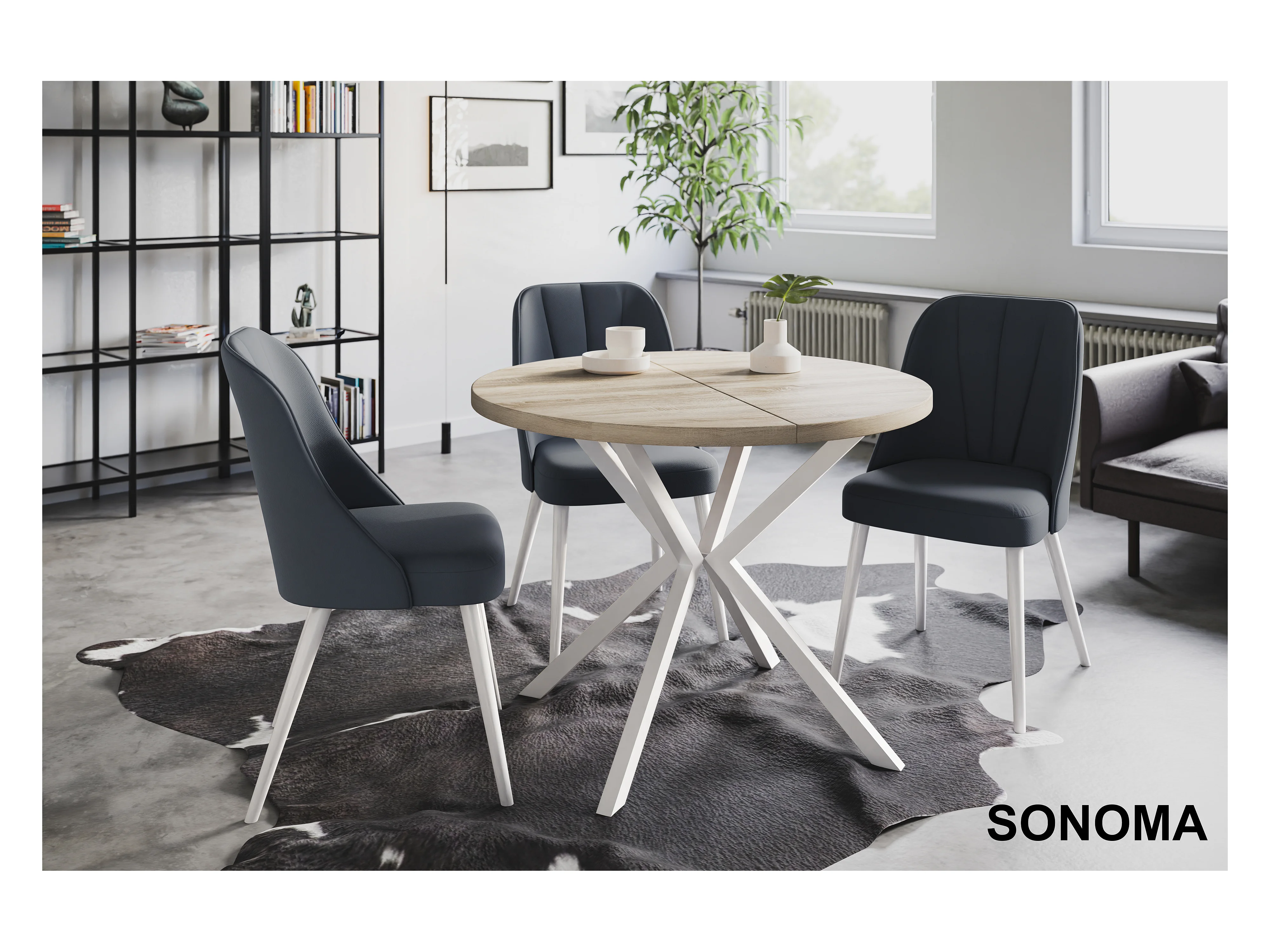 Table à manger ronde LITEN, table à rallonges Diamètre : 90 cm/170 cm, table de salon Couleur : beige, avec pieds métalliques de couleur blanche
