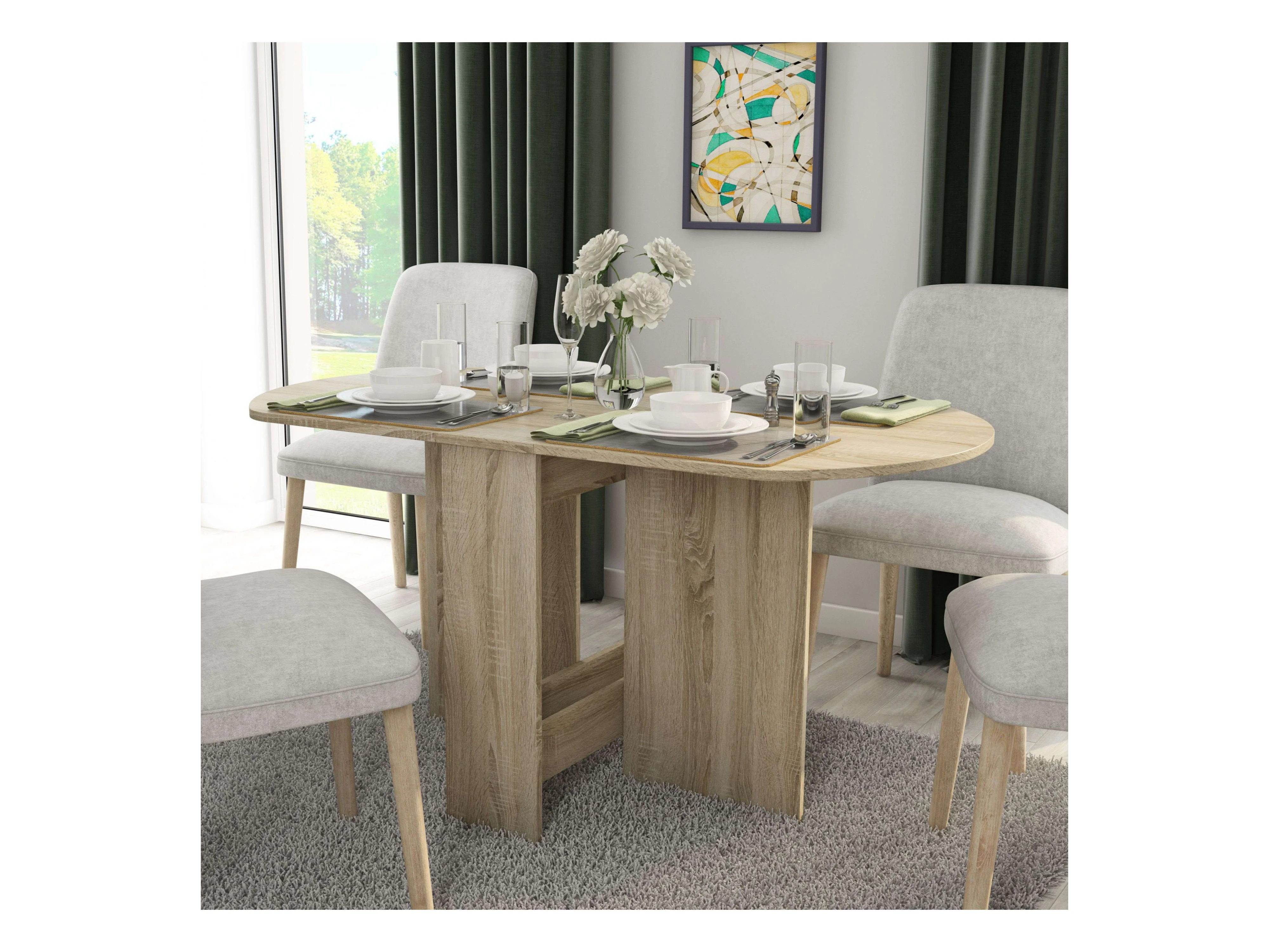 Table à manger ronde pliante en mélaminé chêne Sonoma Sand 150x75x80 cm
