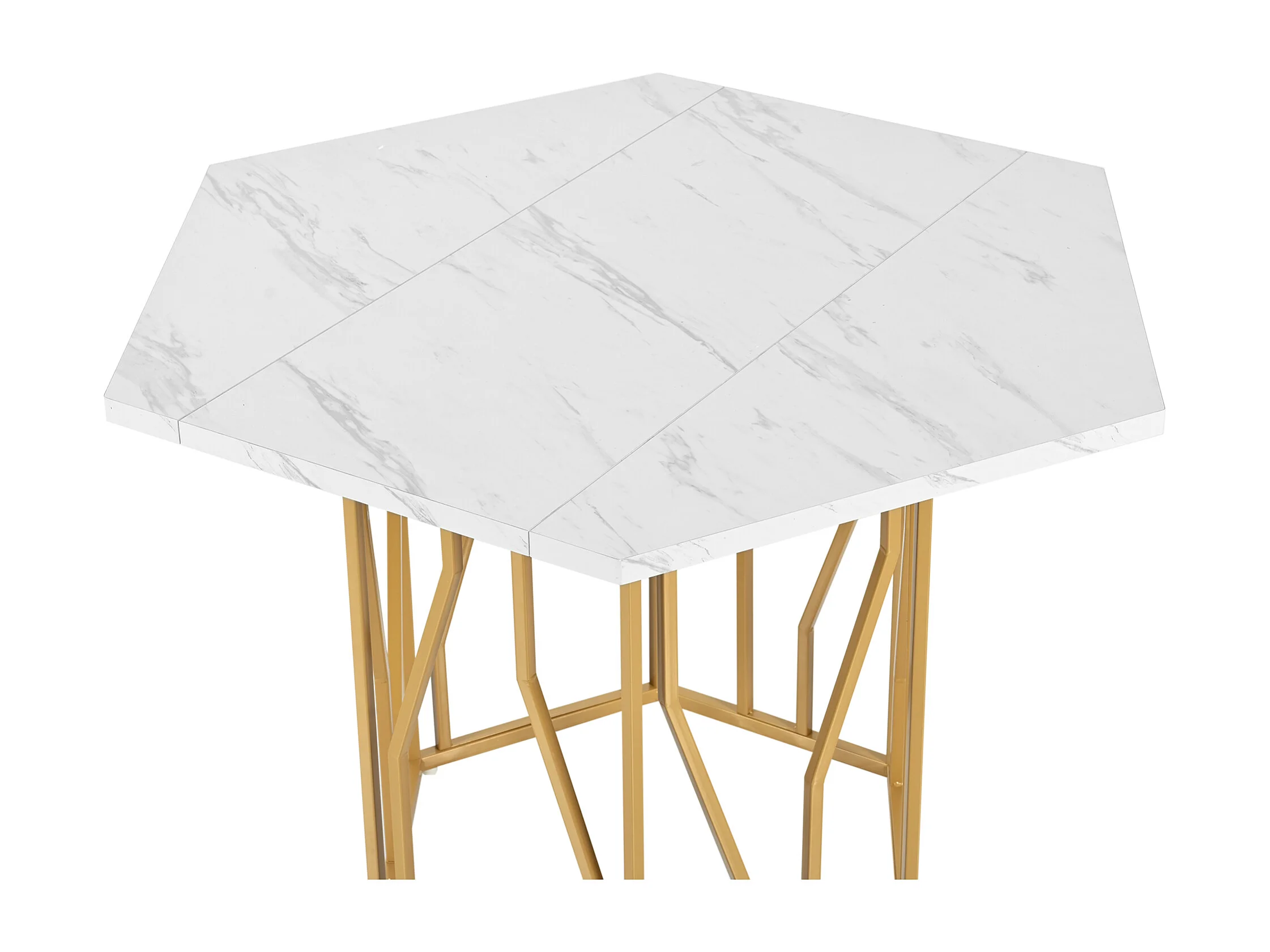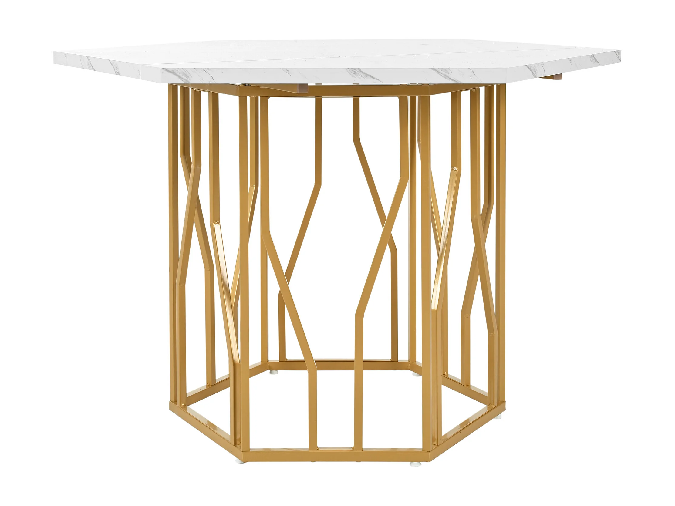 Table à manger hexagonale 115.5x115.5x75 cm pour 4-6 personnes - pied en métal doré - blanc