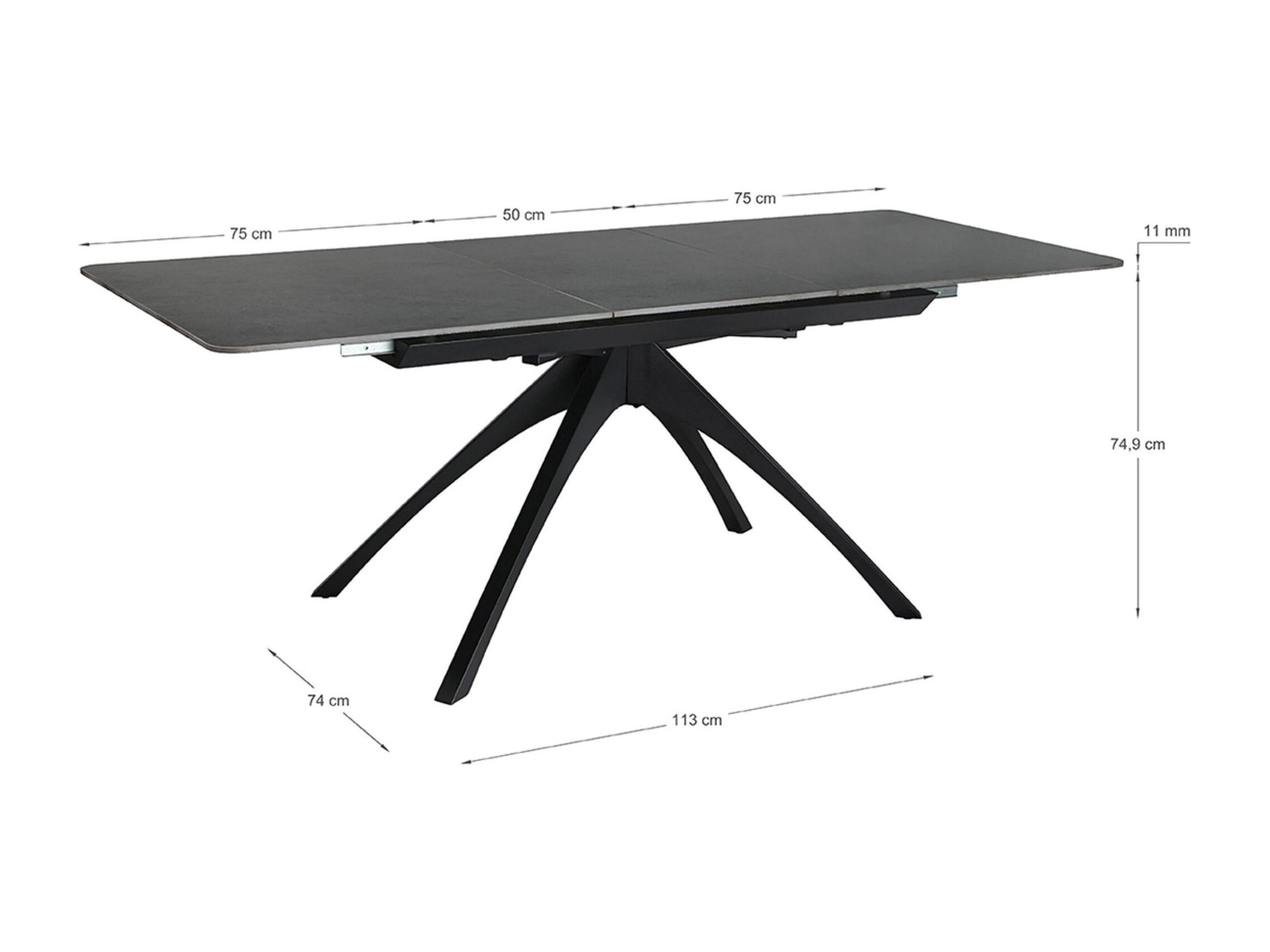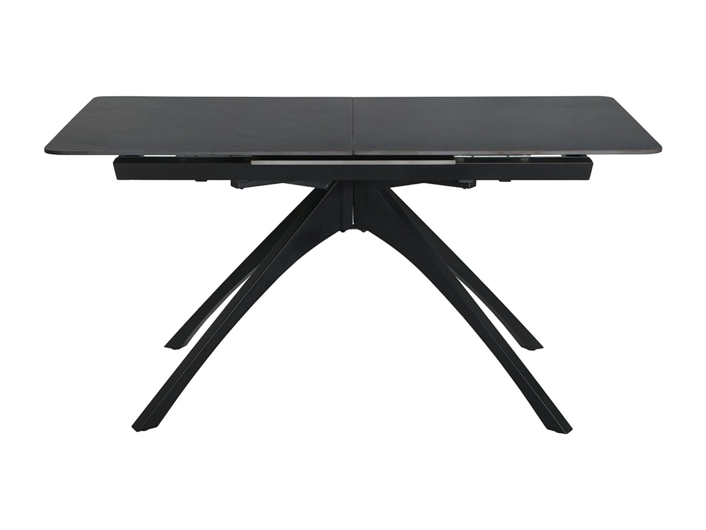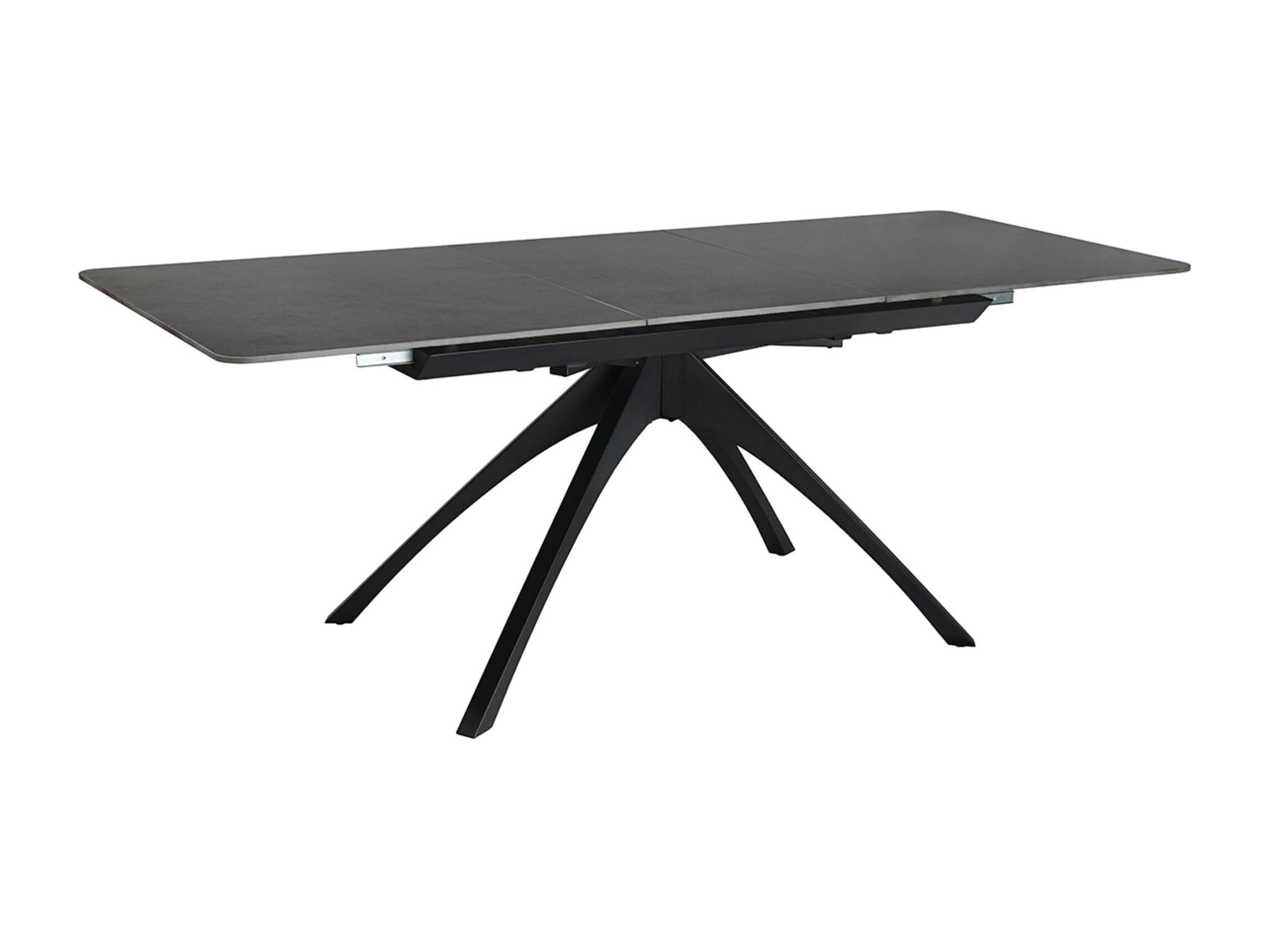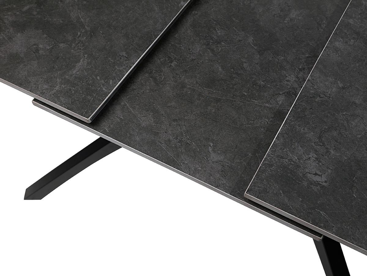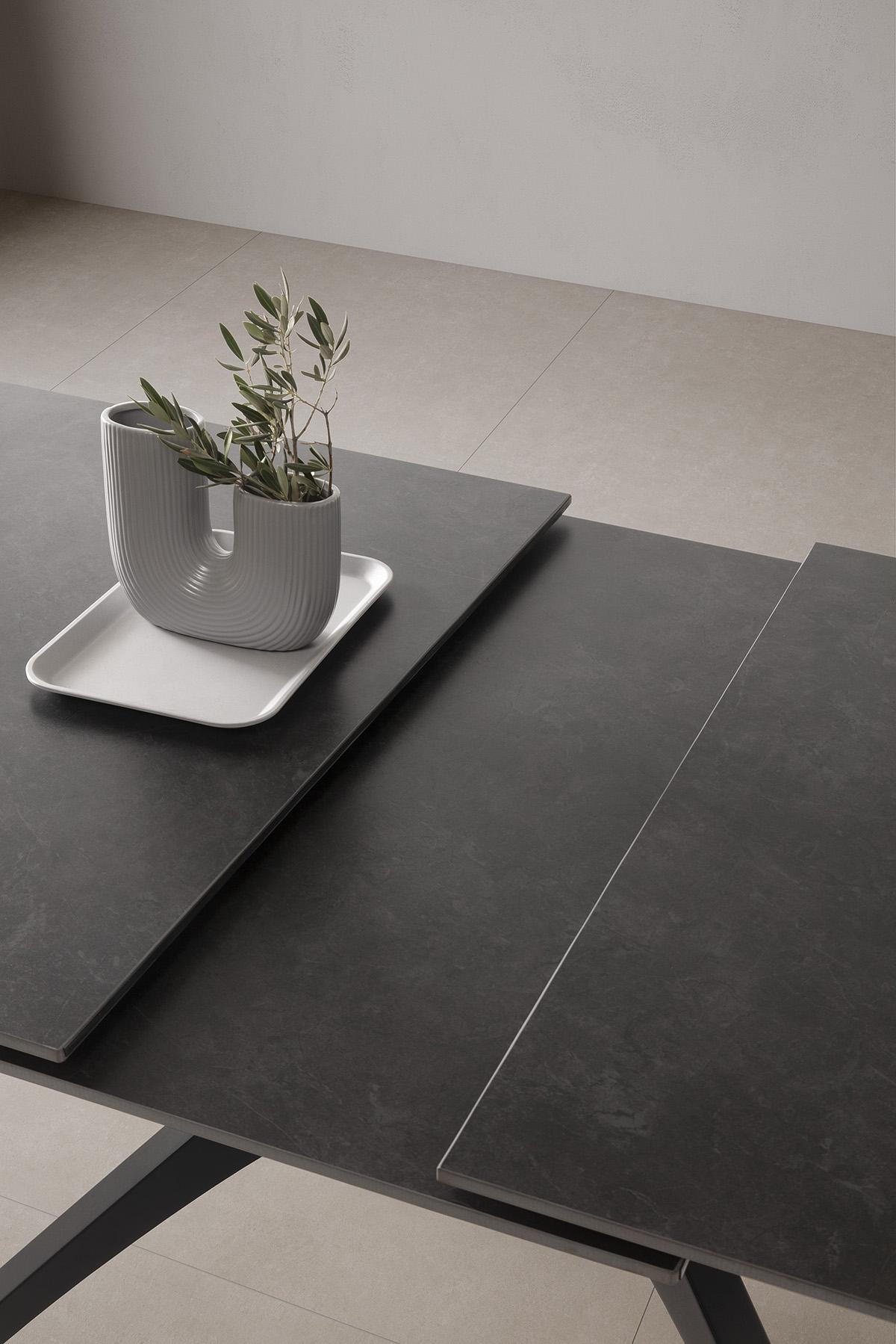 Table à manger, table de repas extensible rectangulaire en Pierre frittée coloris gris foncé, pieds en métal noir - Longueur 150-200 x Profondeur 85 x Hauteur 76 cm