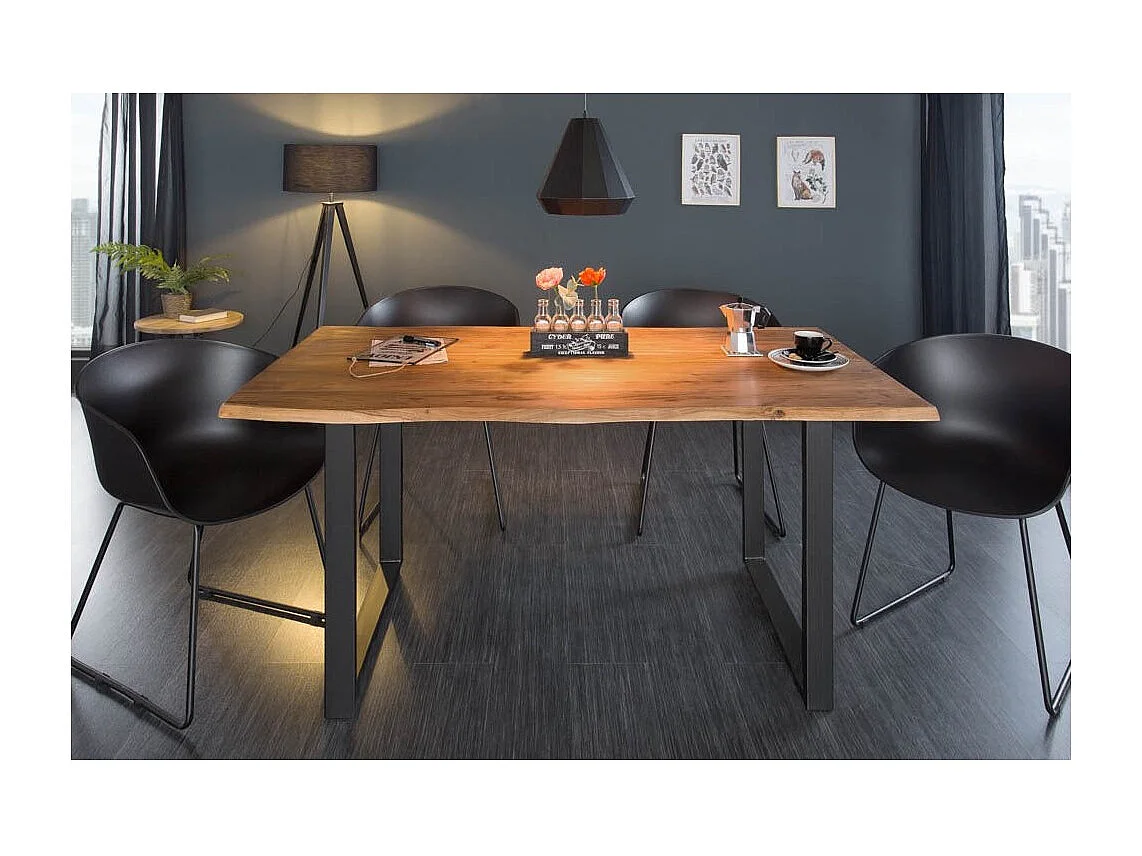 Table ARKAYA 160 cm – Plateau en bois d'acacia sauvage verni et pieds en métal noir en U – Style industriel