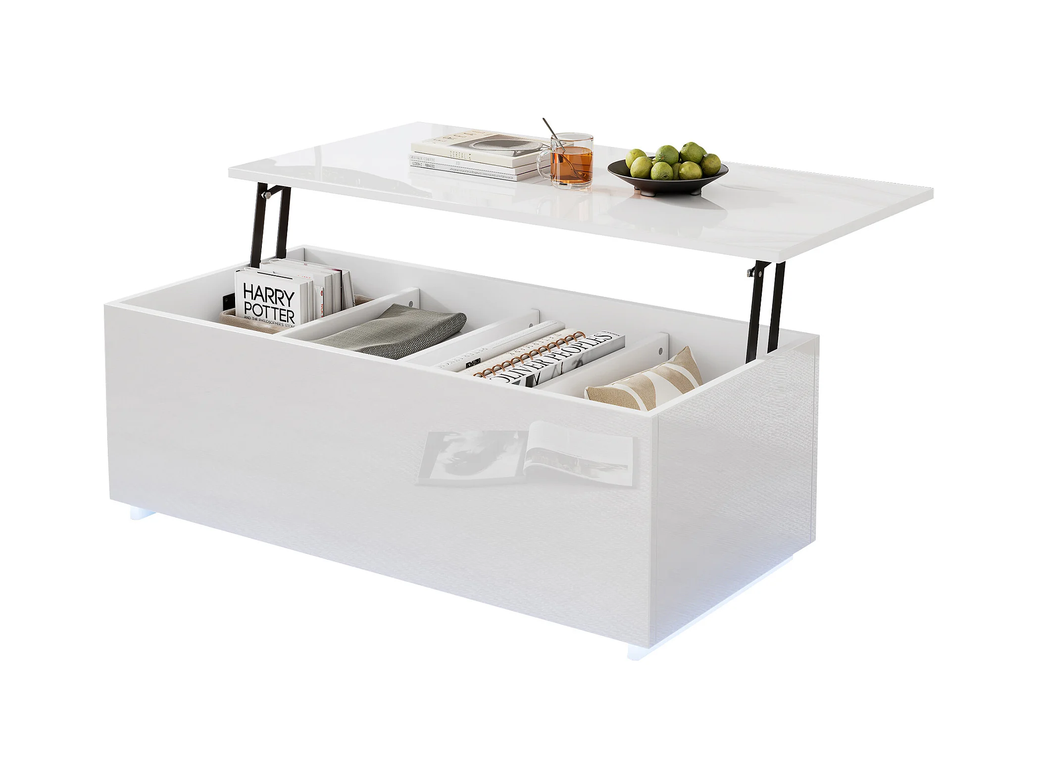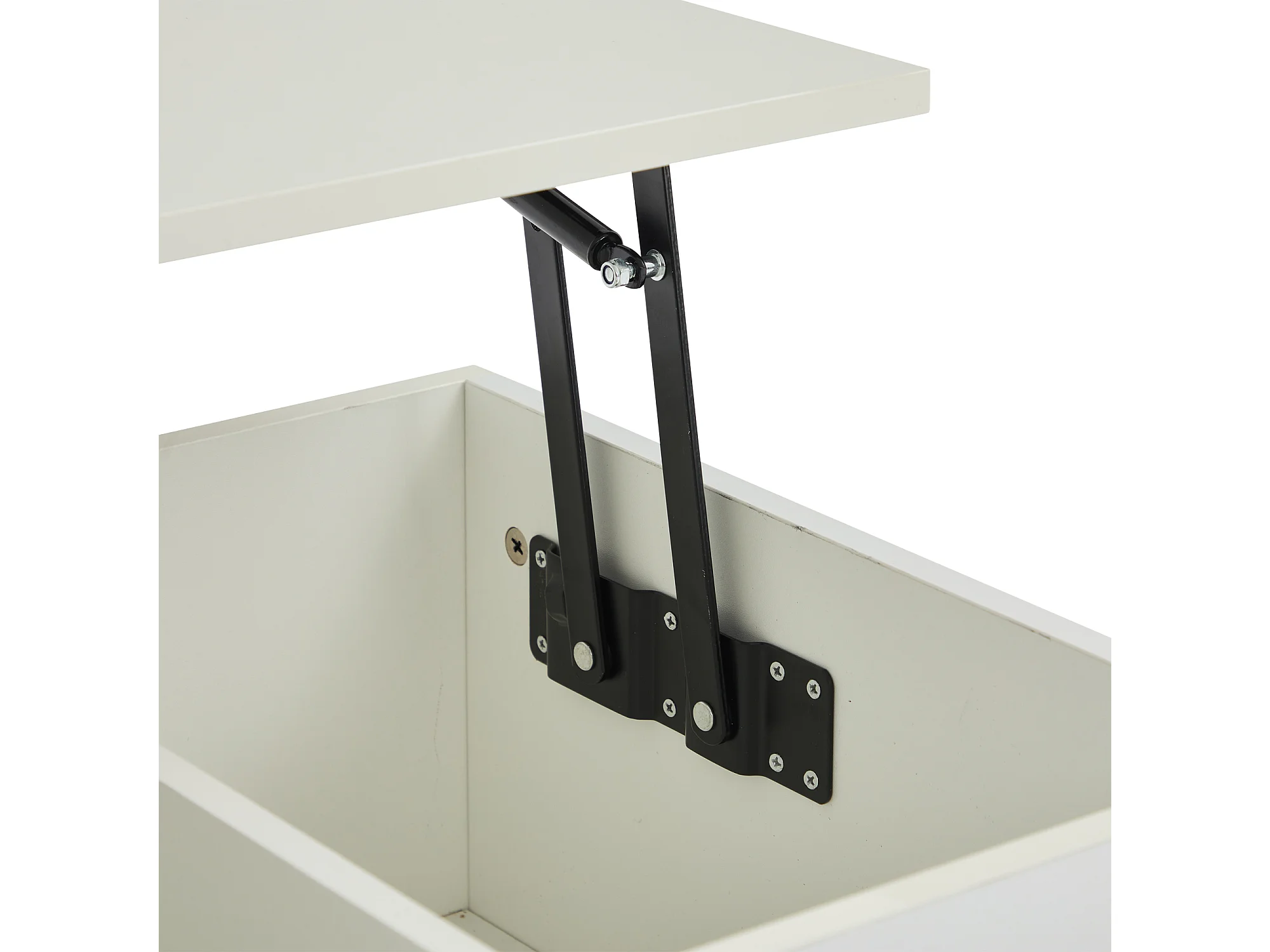 Table basse mécanisme double élévation rangement intégré effet Blanc salon moderne