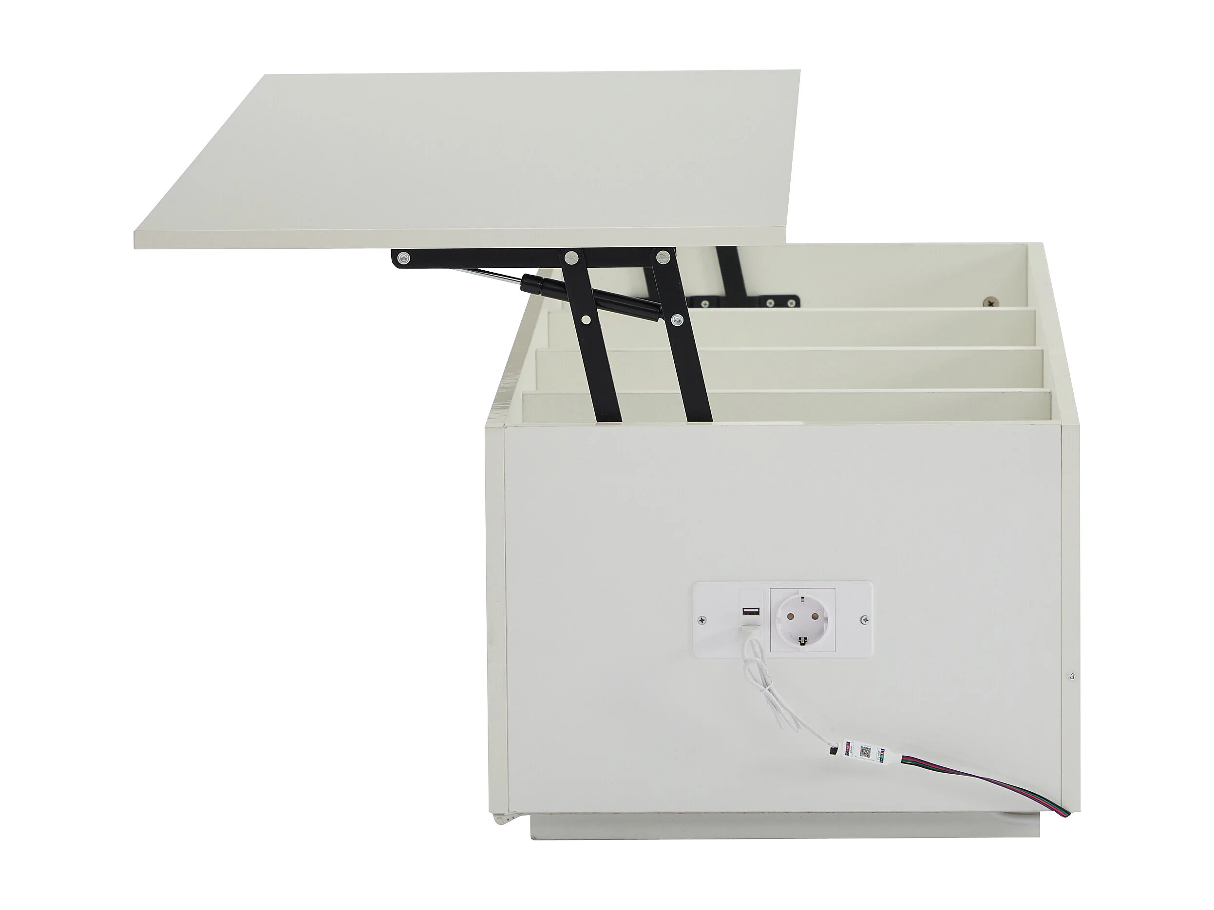 Table basse 100x50x35cm éclairage LED rangement caché hydraulique blanc salon moderne