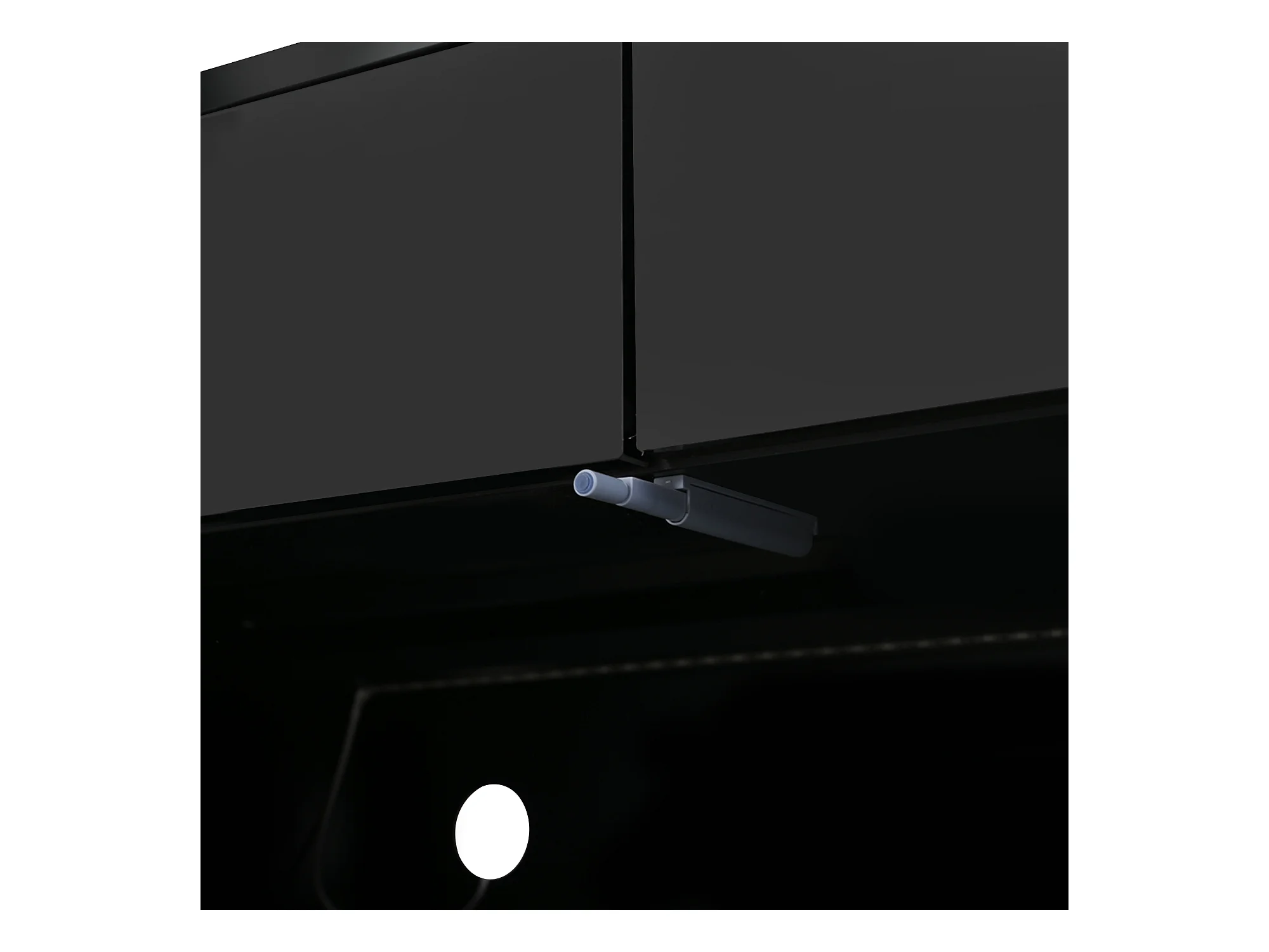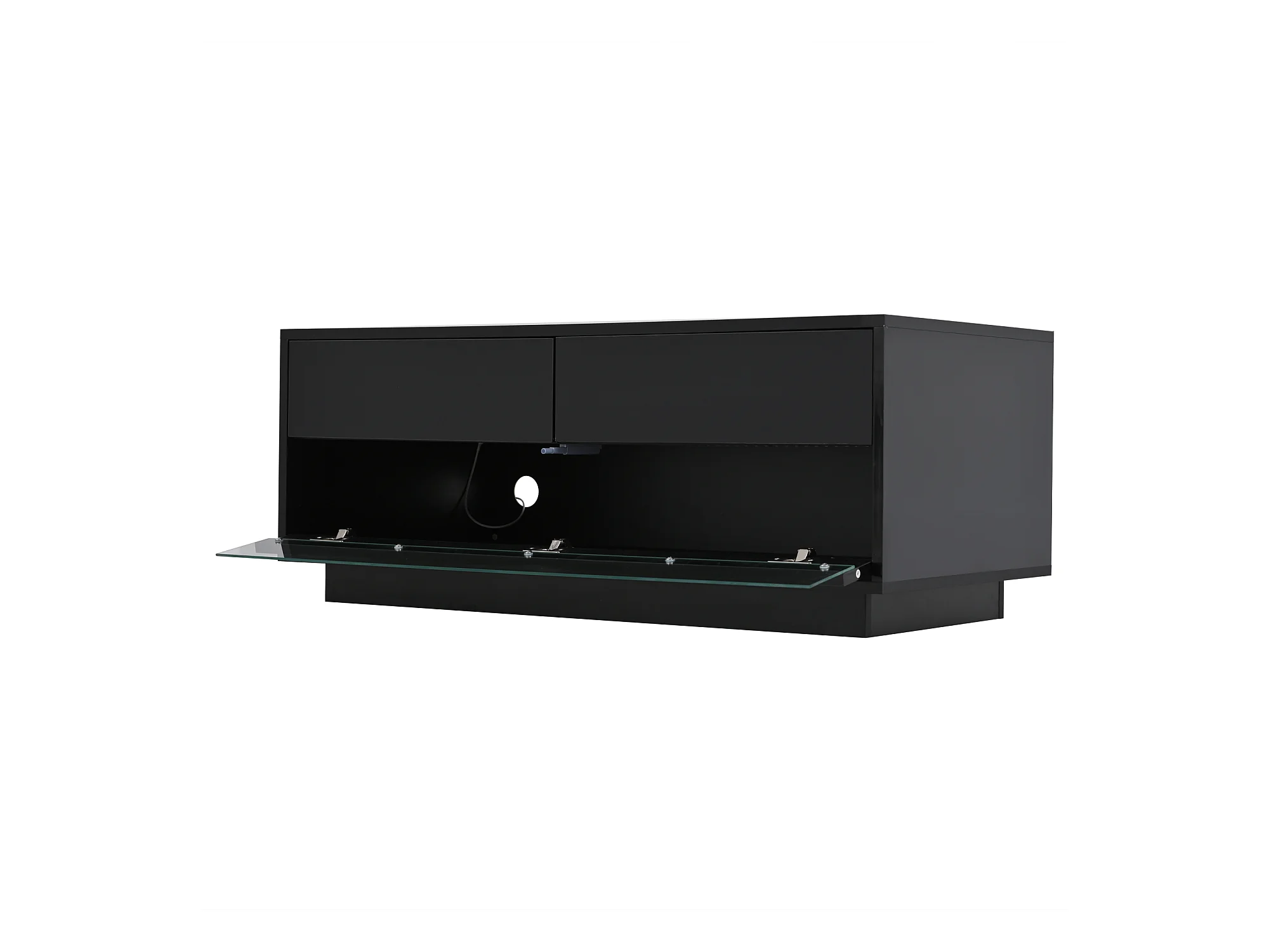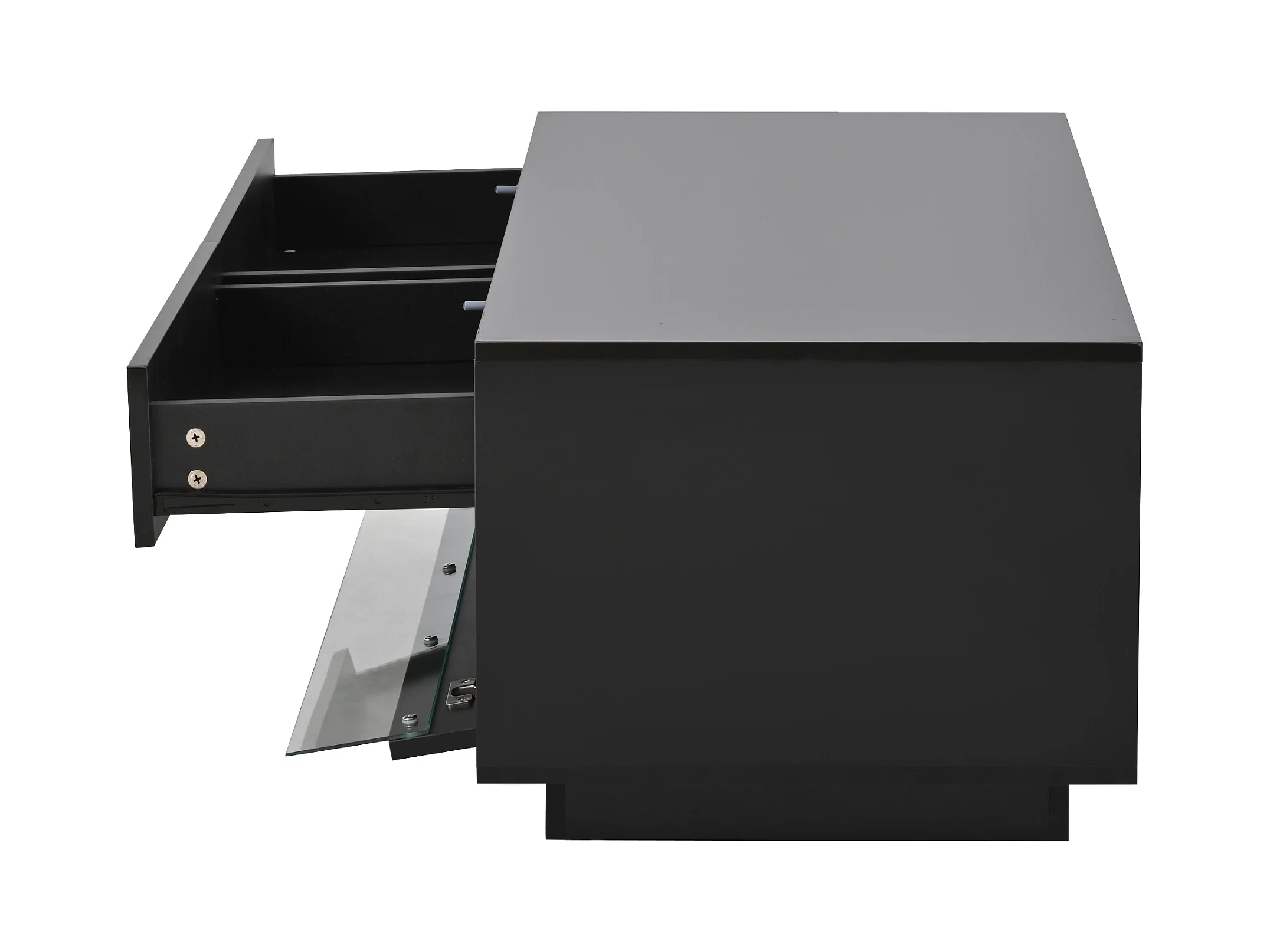 Table basse à deux niveaux LED RGB 16 couleurs surface brillant avec étagère ouverte et tiroir coulissant noir