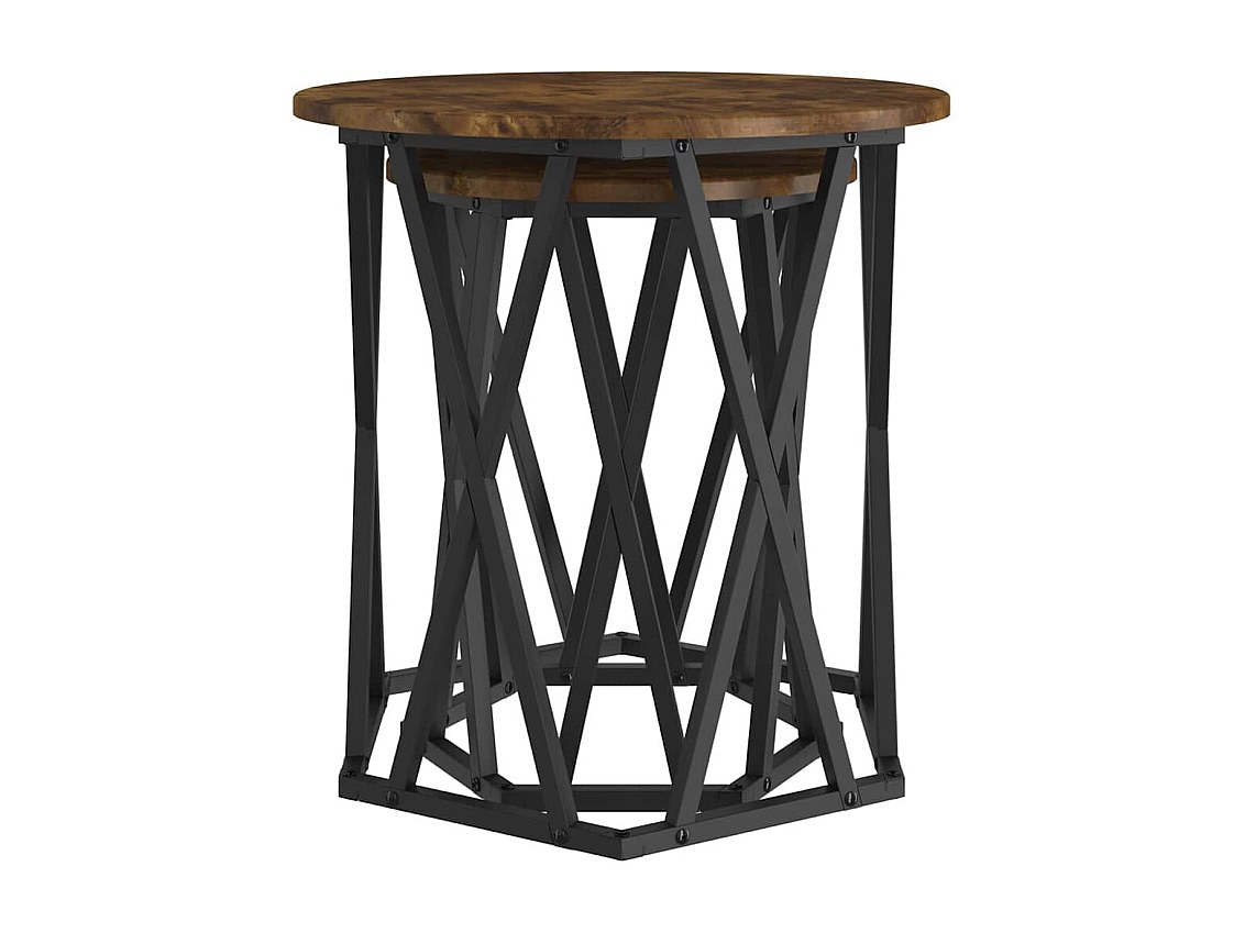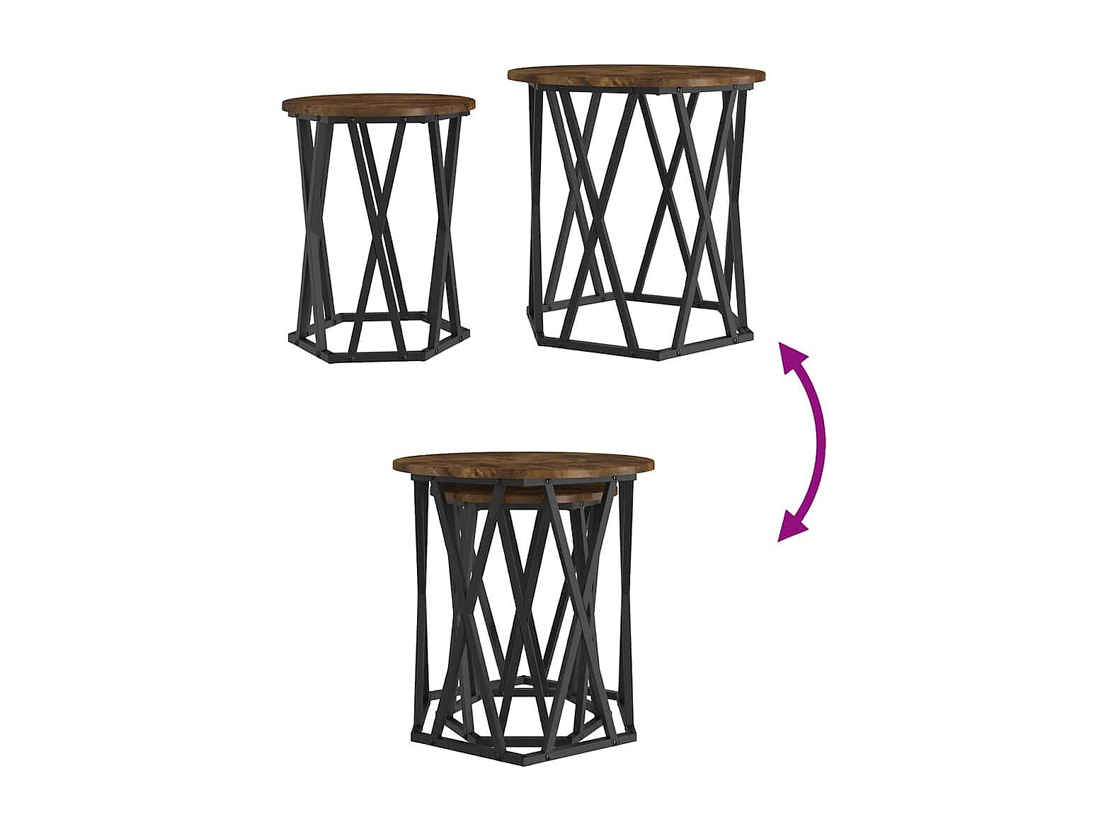 Ensemble de tables d'appoint 2 pièces Bois ancien et noir