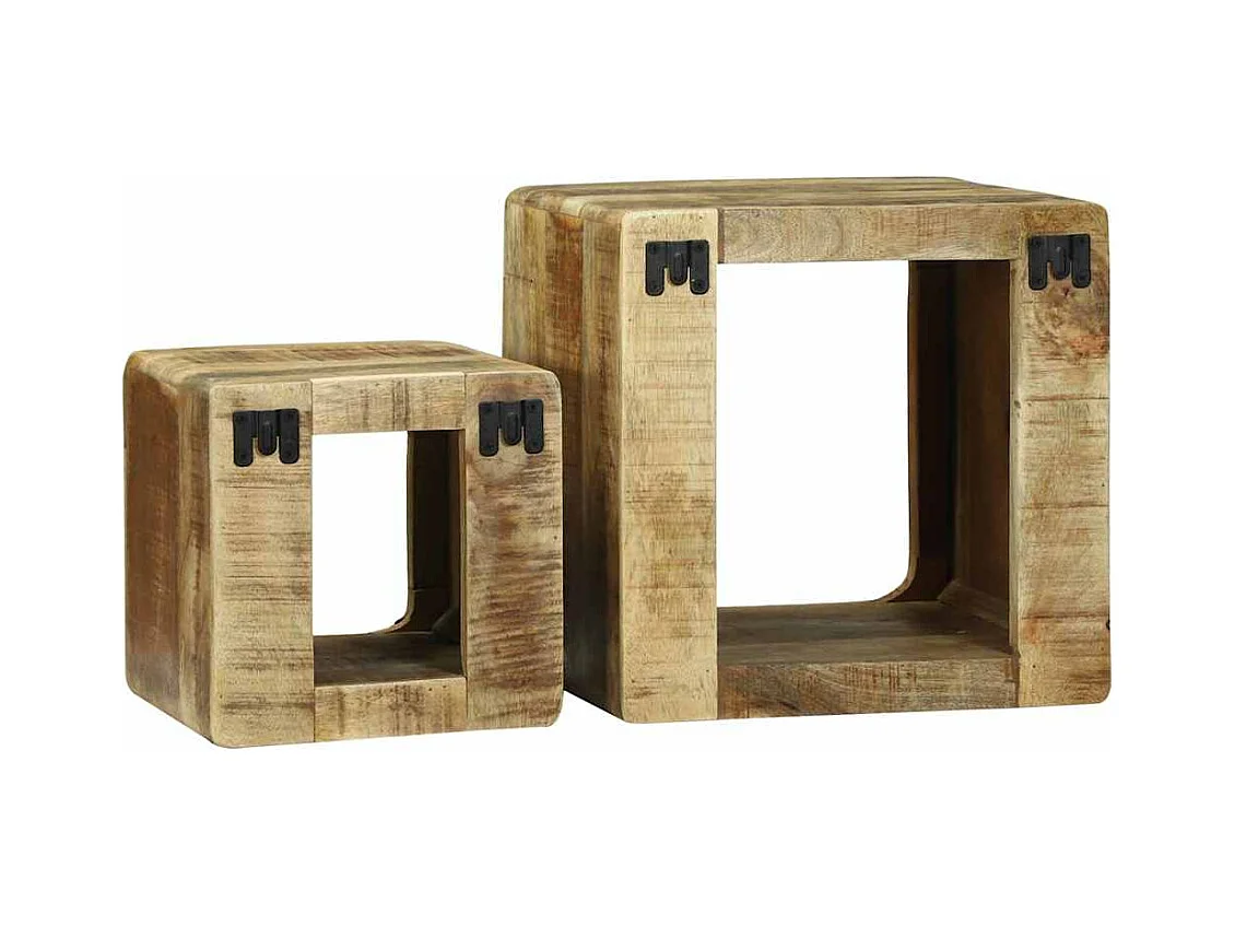 Table basse 2 pièces Marron Bois de manguier brut massif