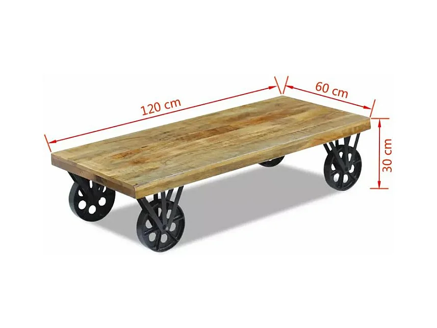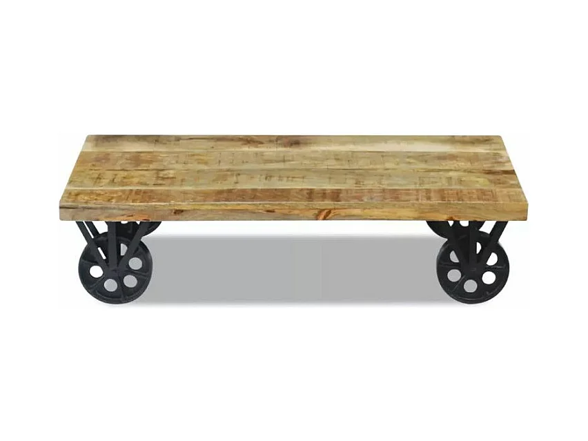 Table basse à roulettes manguier massif clair et métal noir Grey