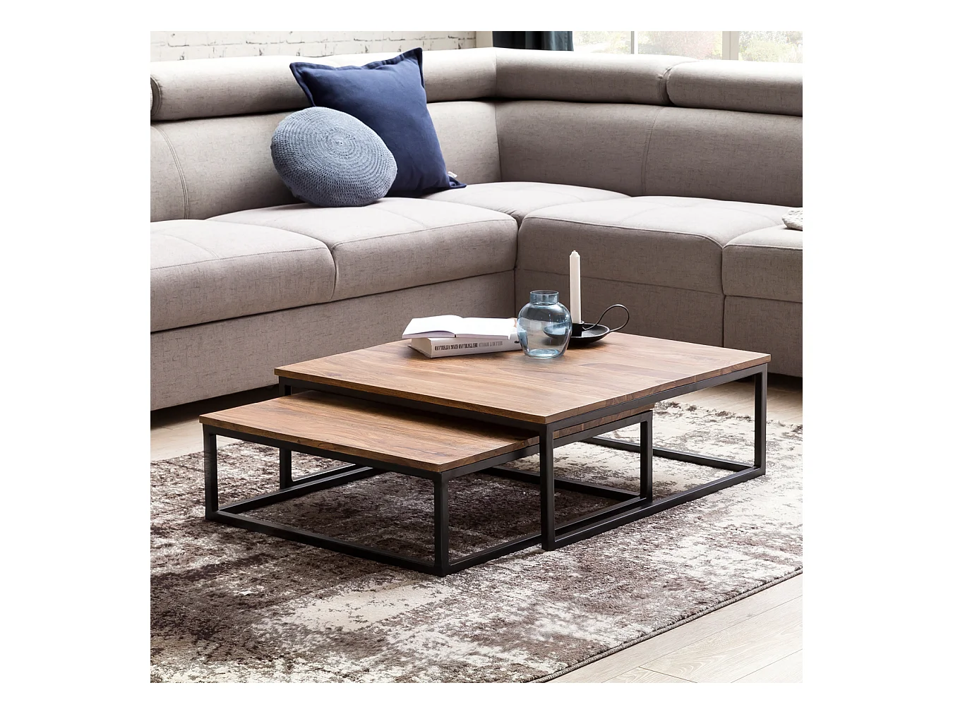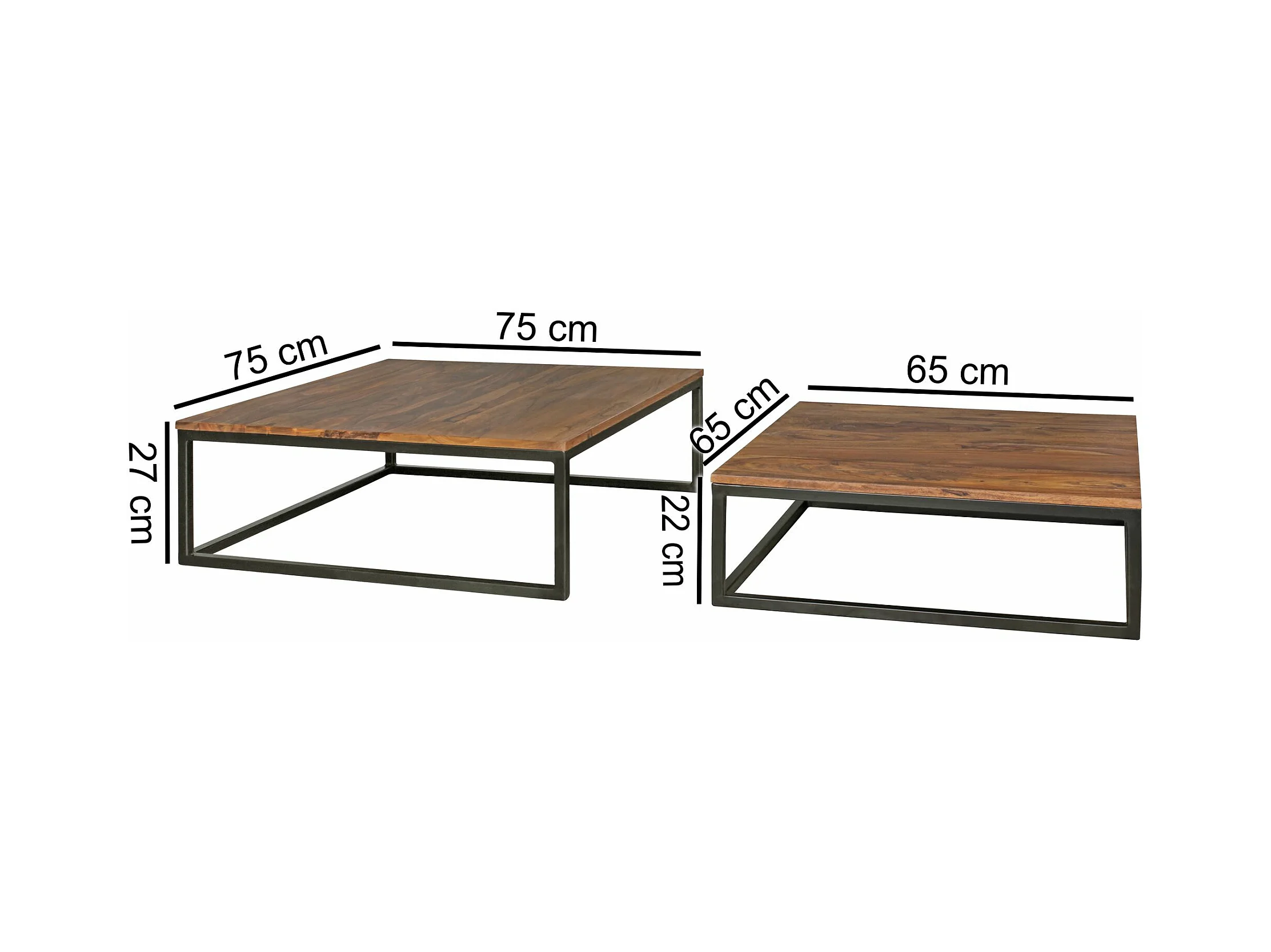 table basse Akola bois massif 2 pièces 75 x 75 x 27 cm | Table basse design en bois Sheesham | Living Table de salon en bois de rose massif avec pieds en métal