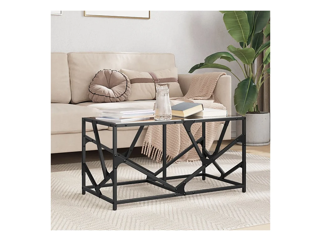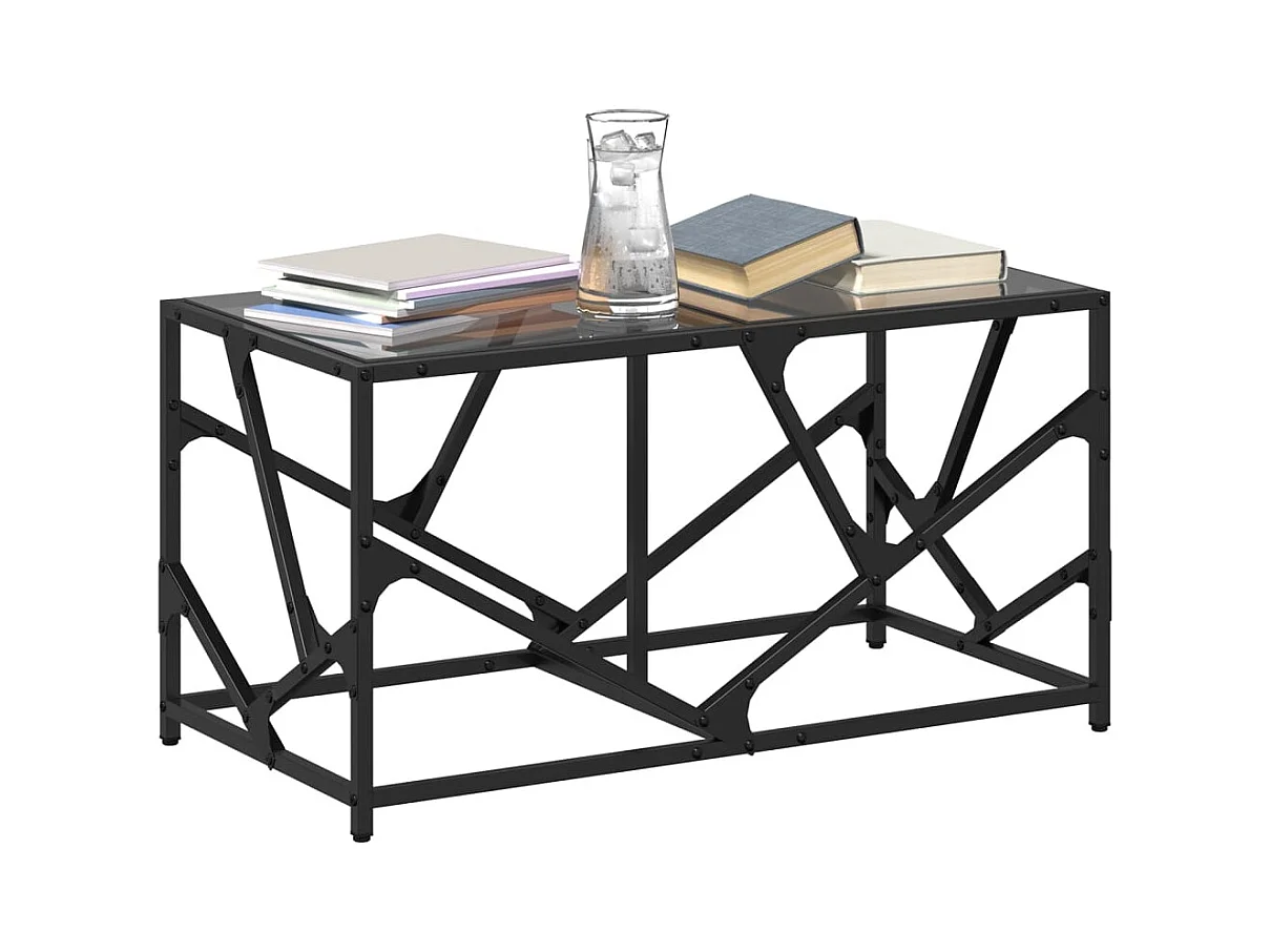 Table basse avec dessus en verre noir 78,5x40x41 cm acier