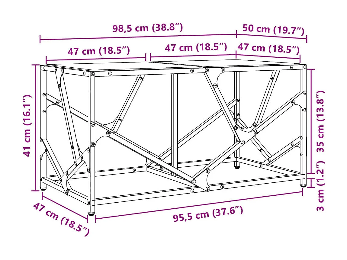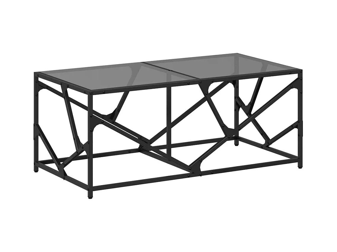 Table basse avec dessus en verre noir 98,5x50x40 cm acier